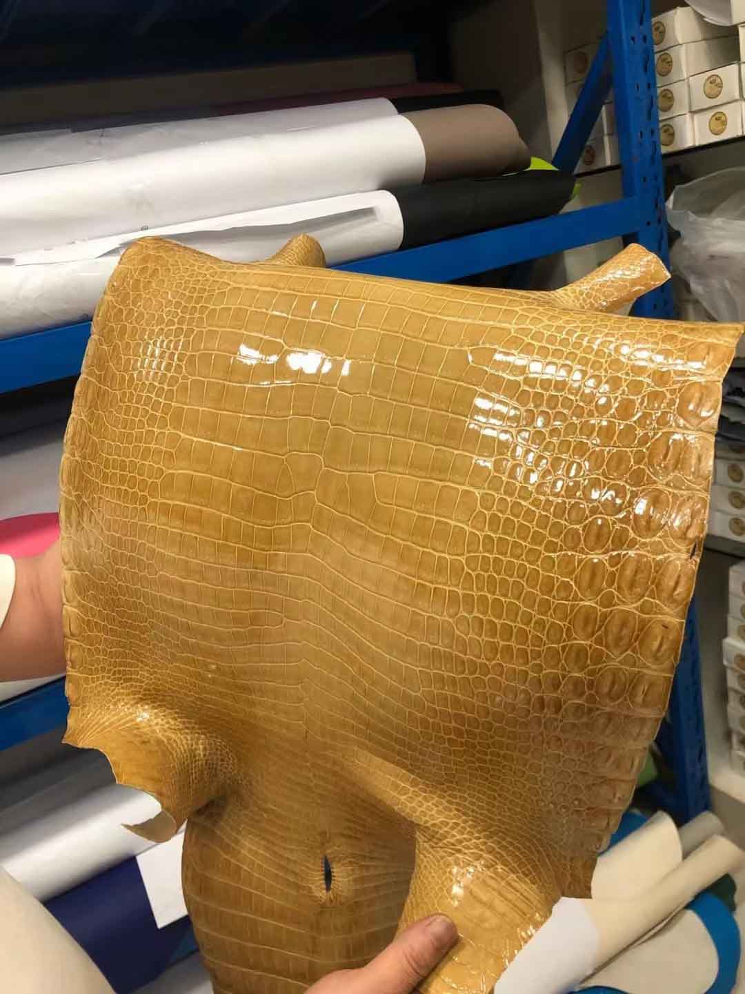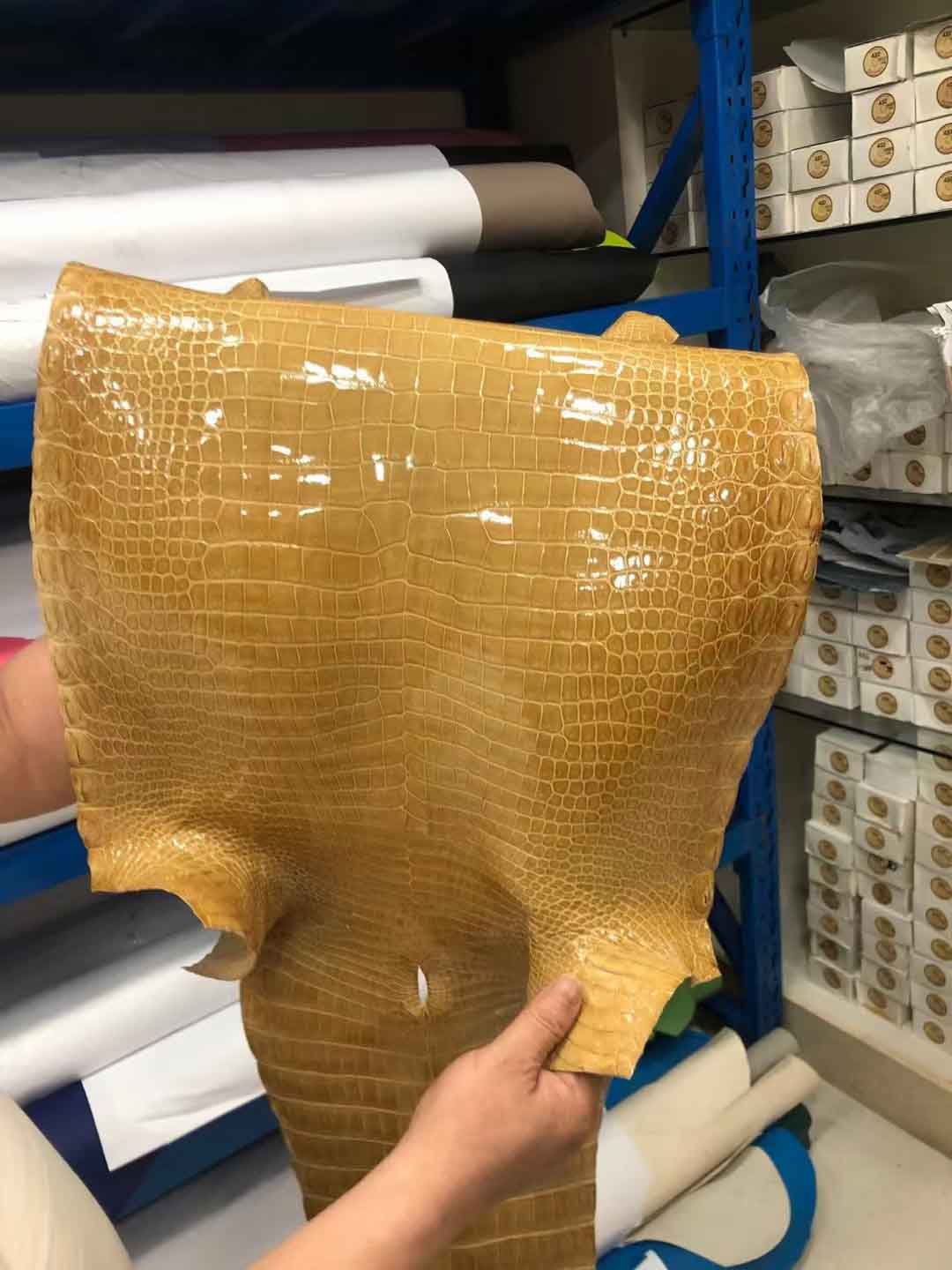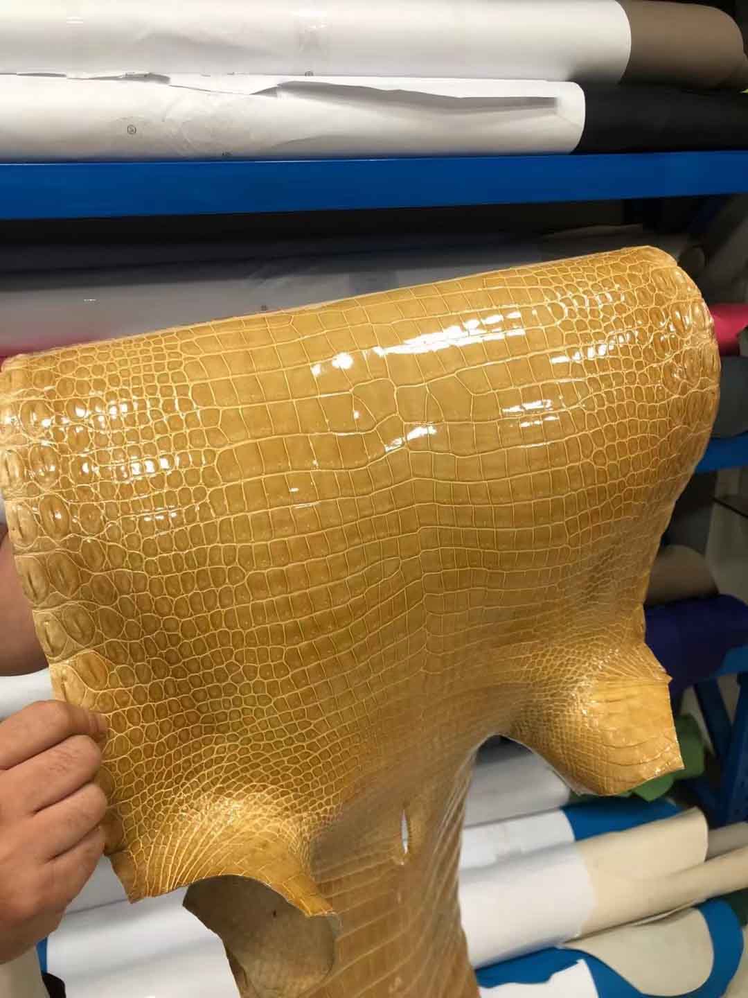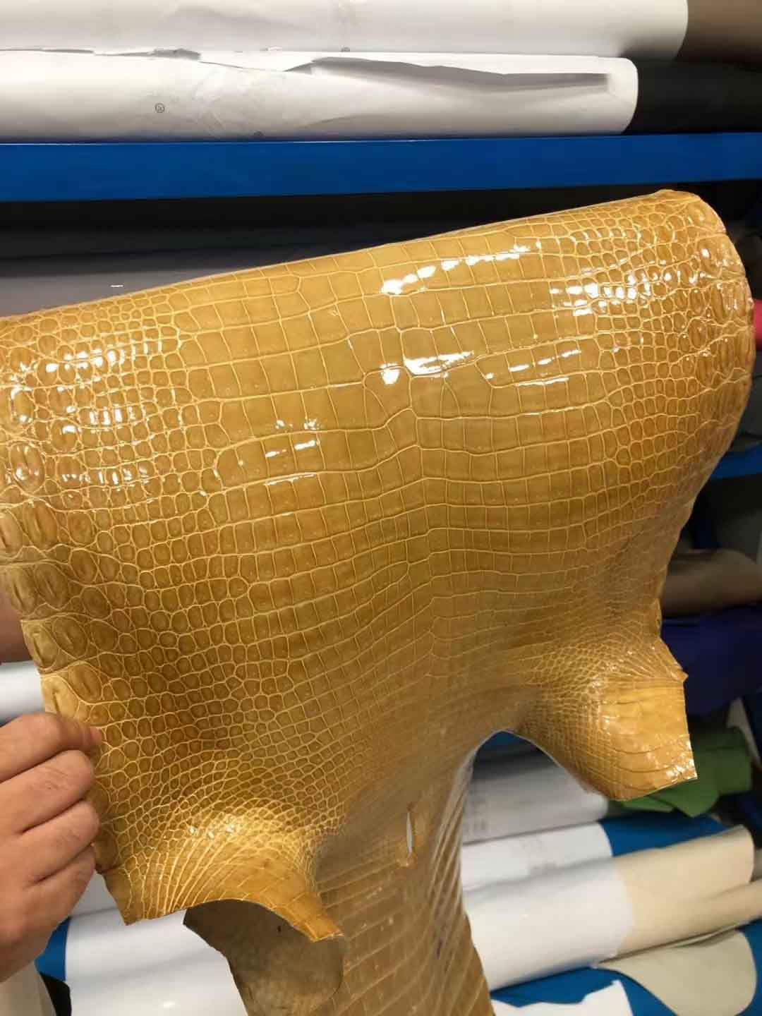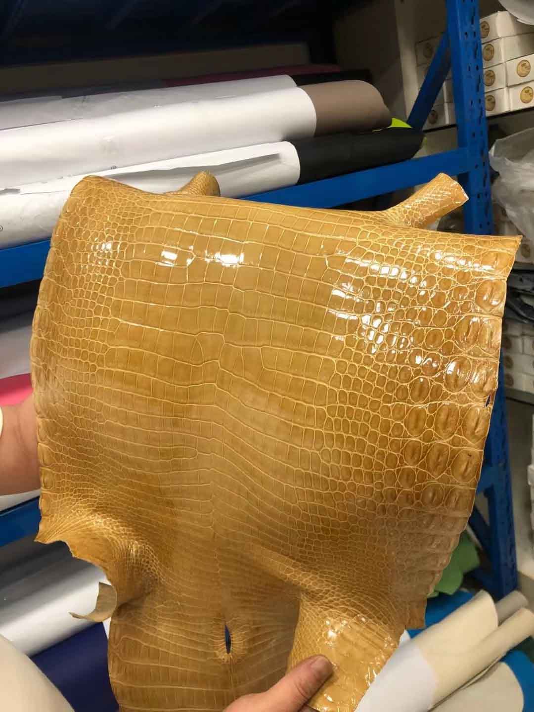 烟草色湾鳄高光皮料预定。微信:95506803