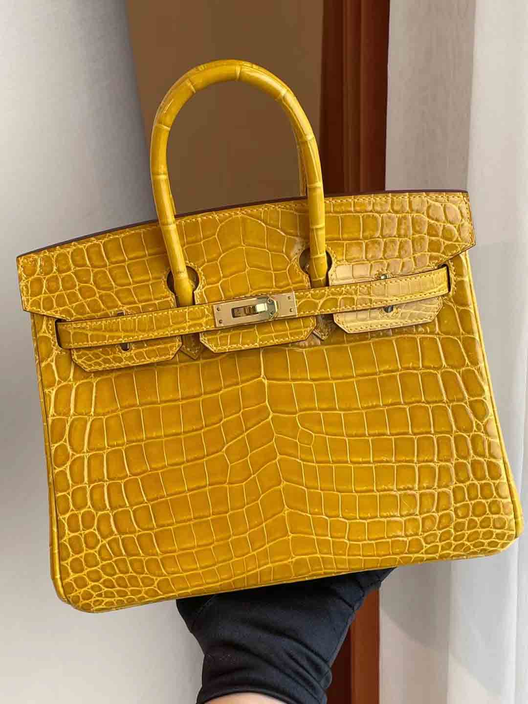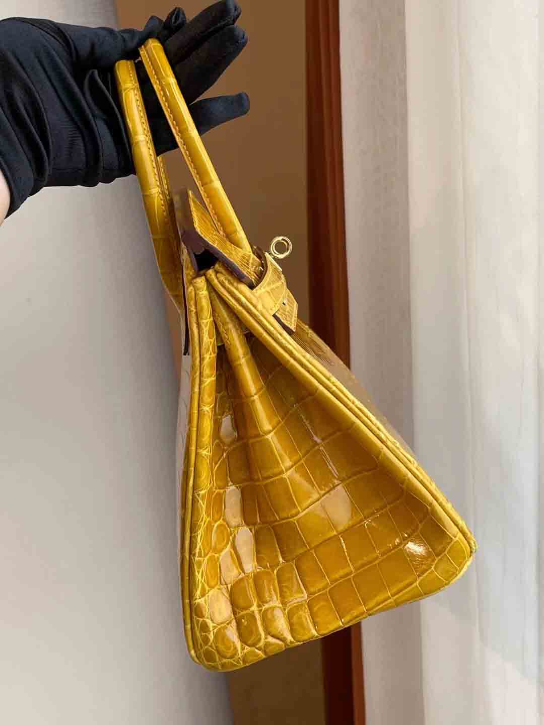 Bk 9D 琥珀黄 Amber 25cm 鳄鱼 金扣,