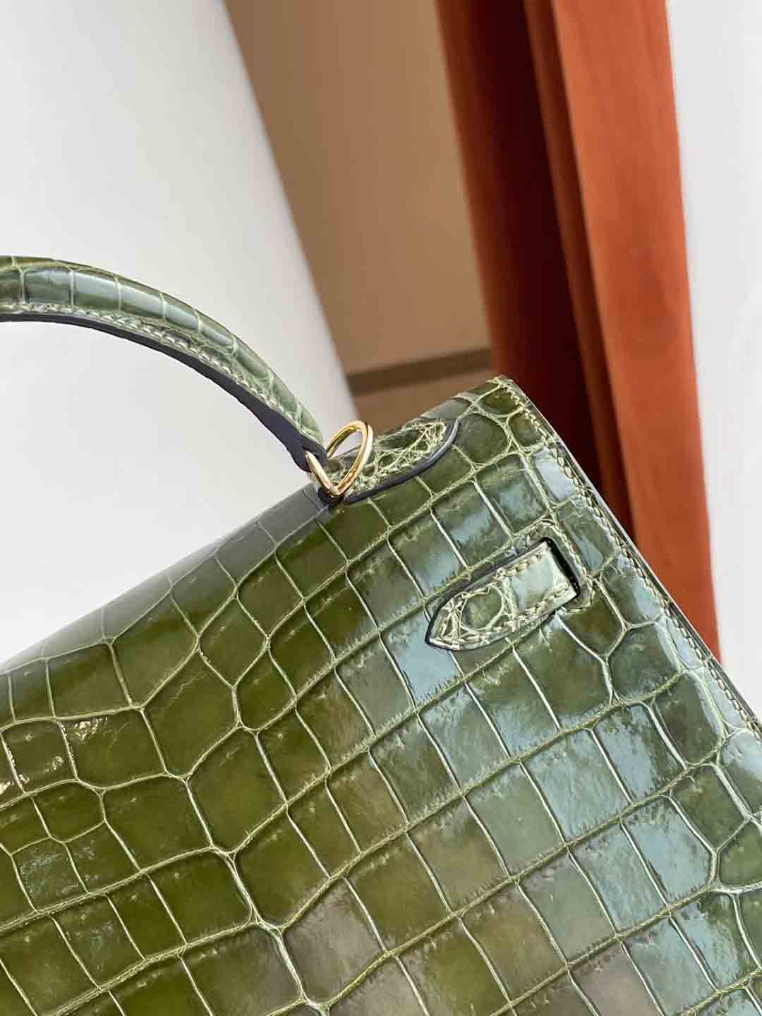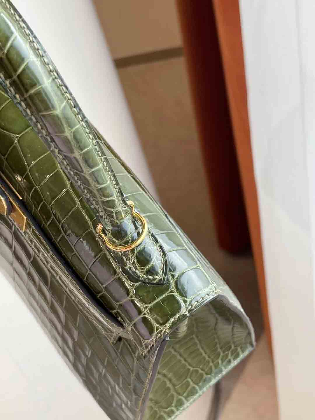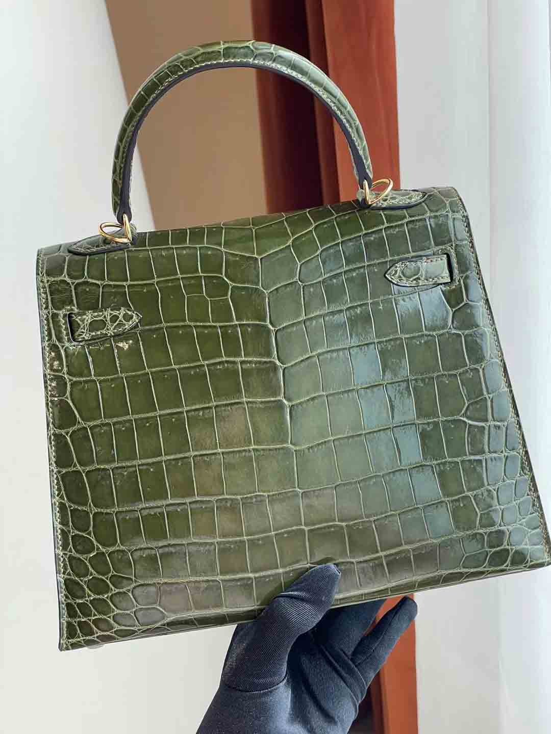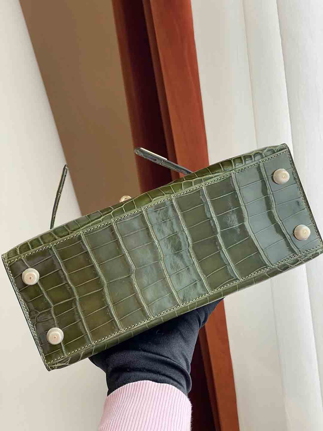 Kelly 橄榄绿 25cm 亮面尼罗鳄 金扣