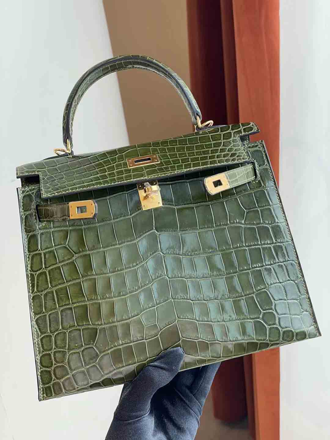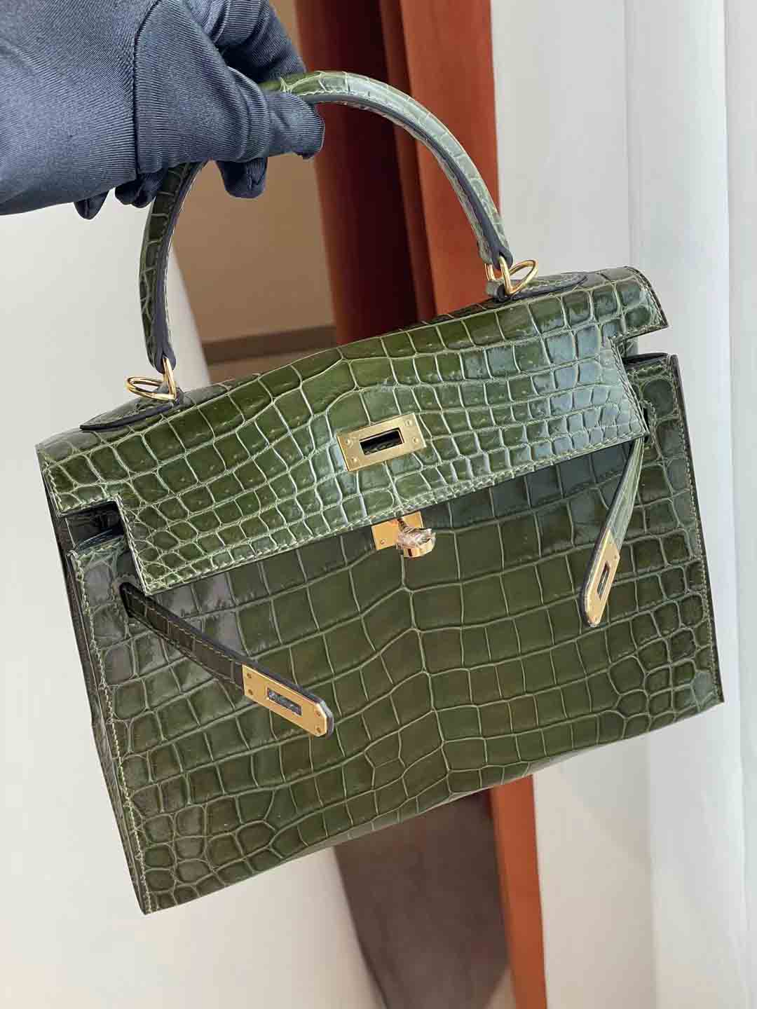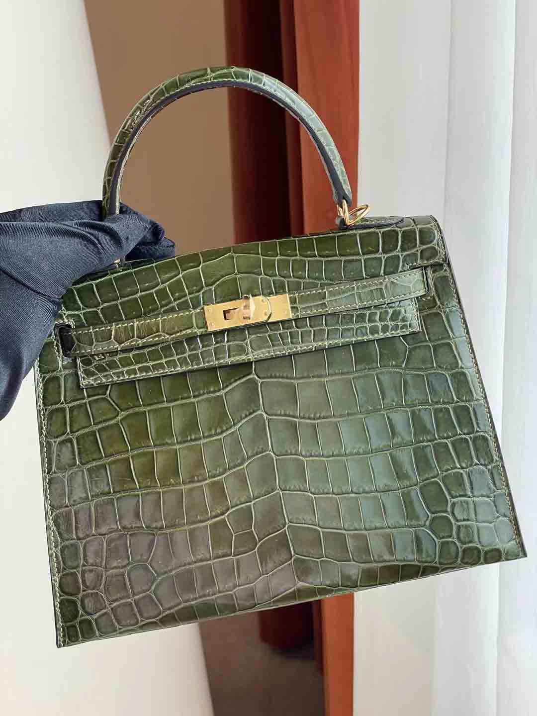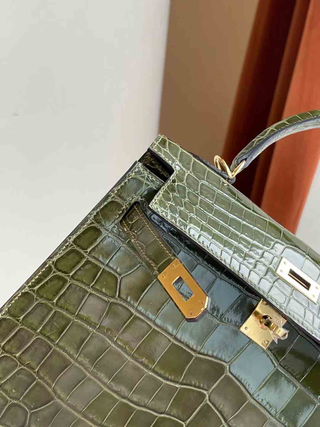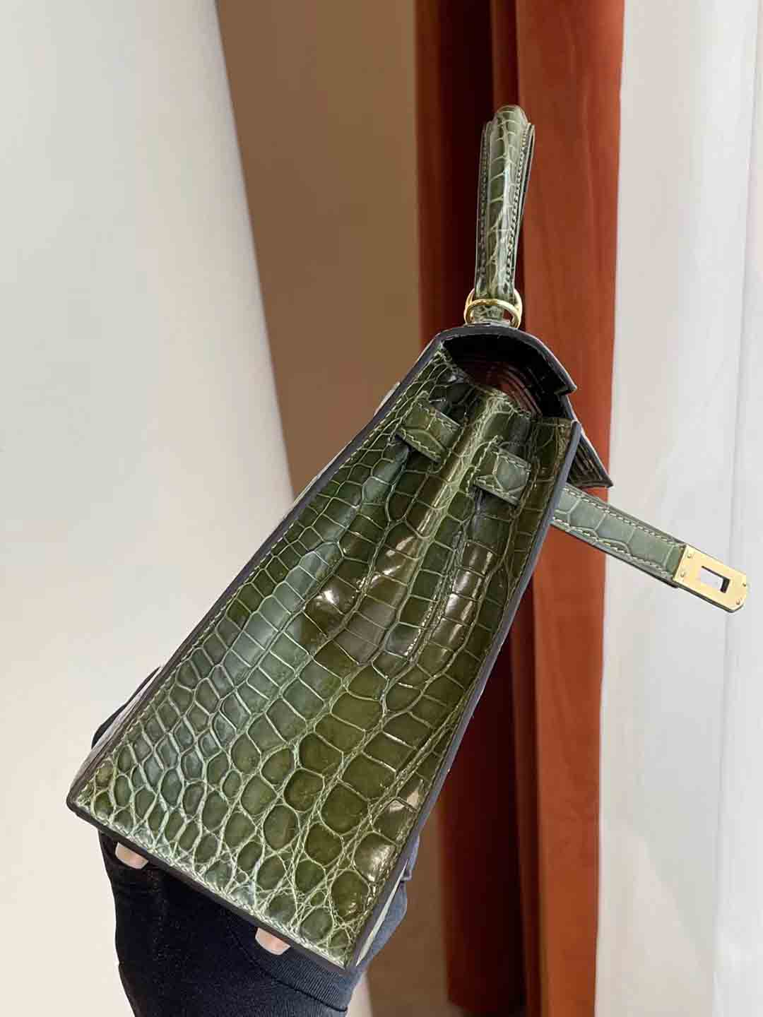 Kelly 橄榄绿 25cm 亮面尼罗鳄 金扣