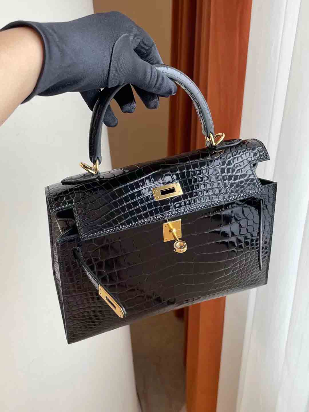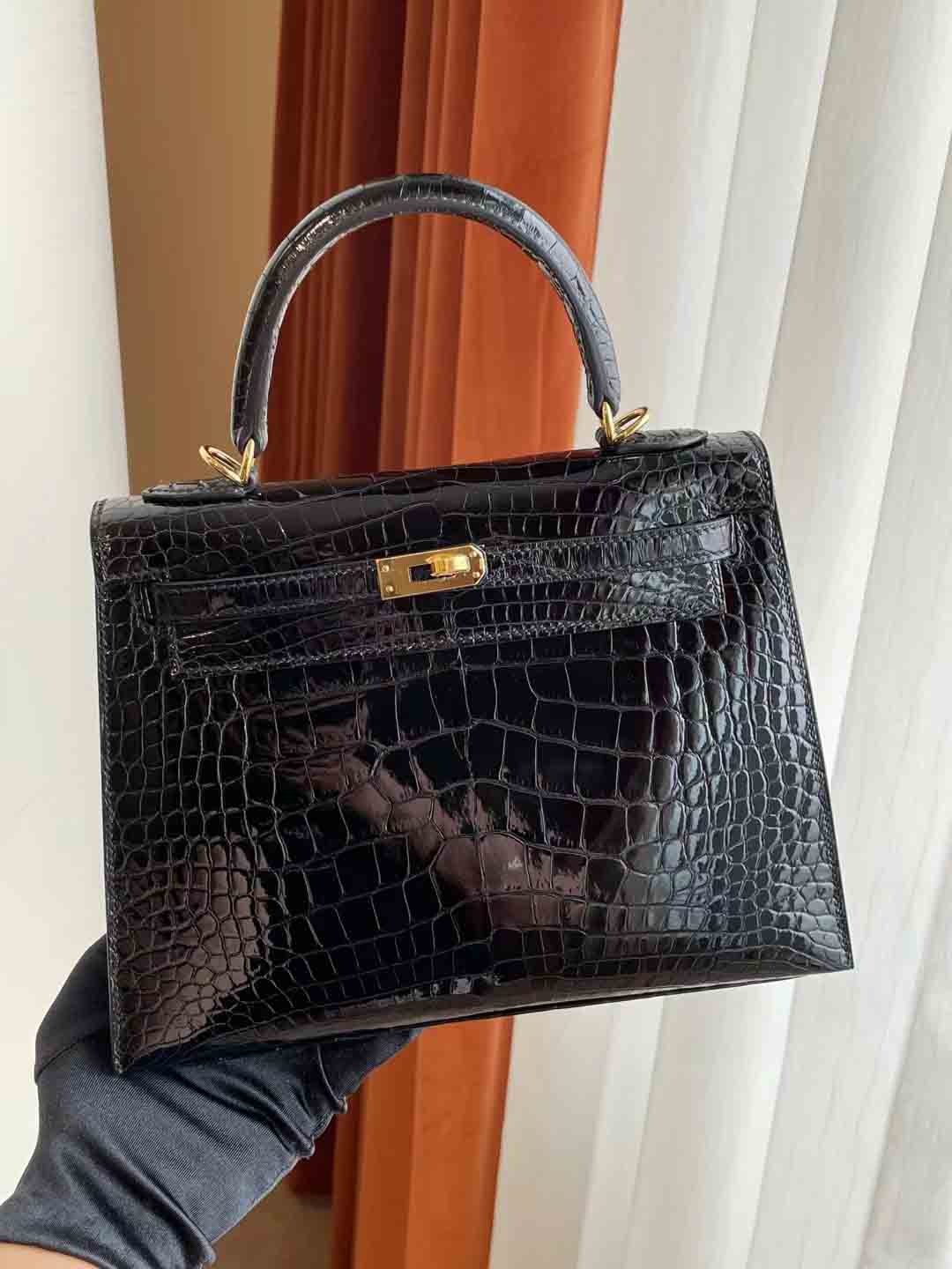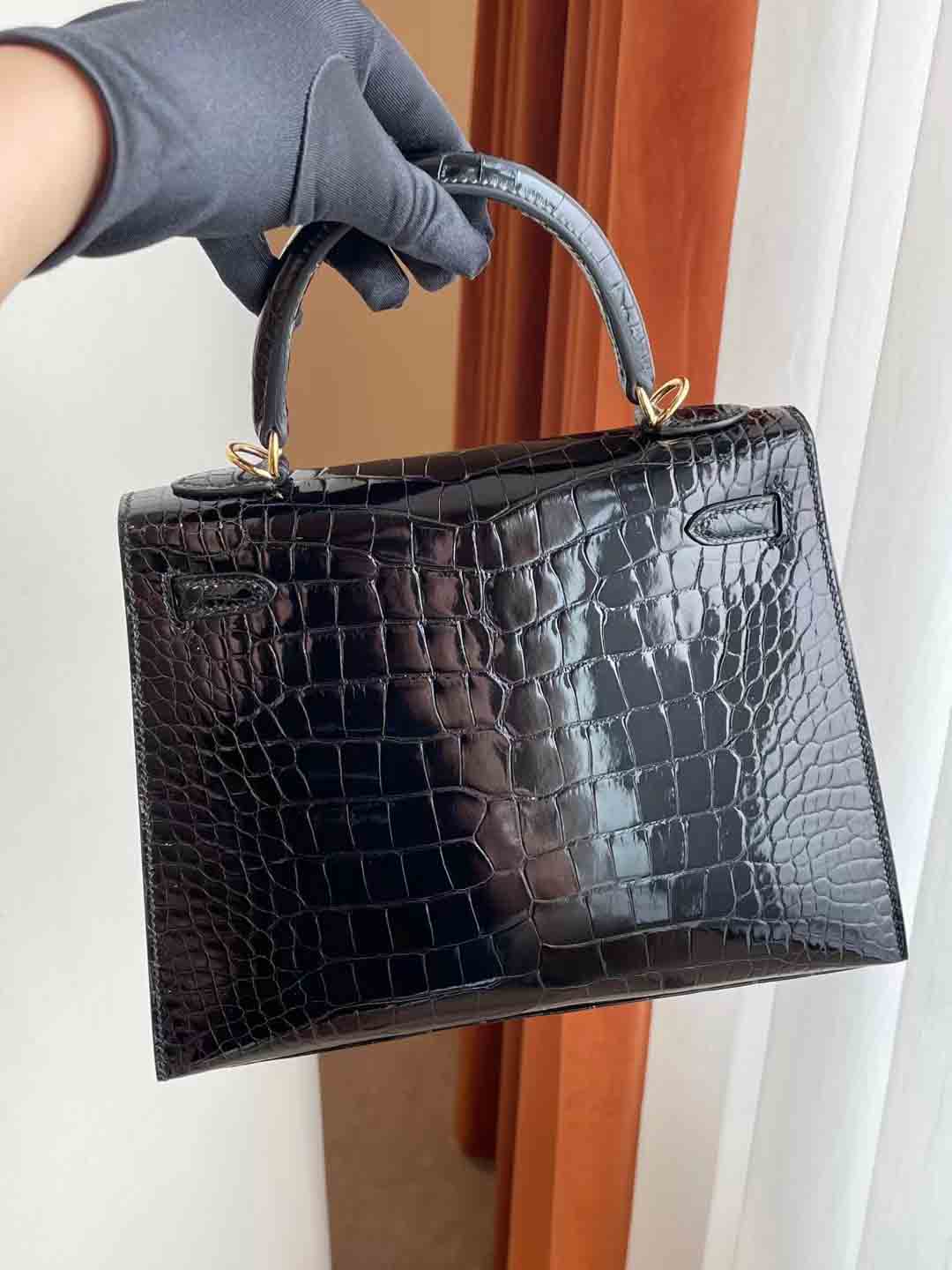 Kelly25 黑色亮面美洲鳄金扣 纯手工蜡线 新到现货一只 in stock....
