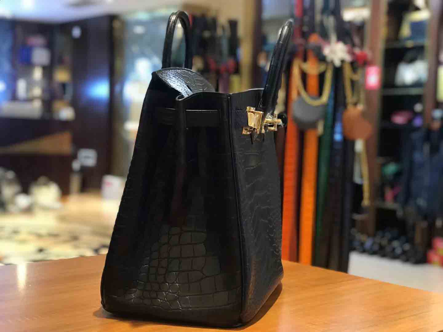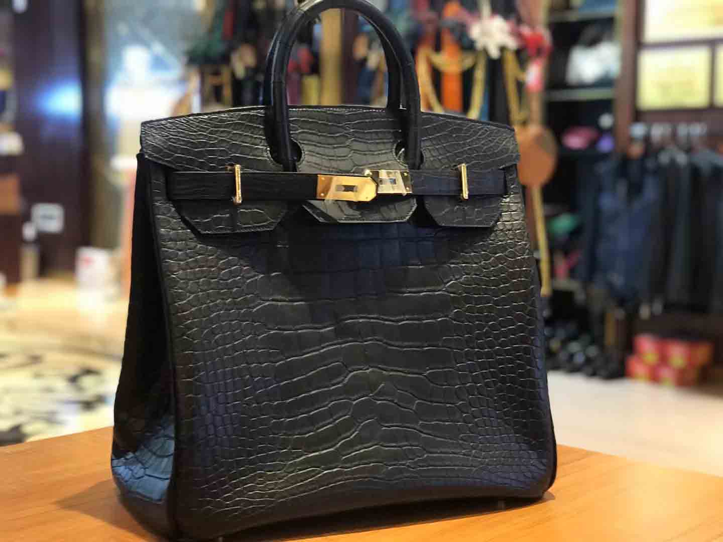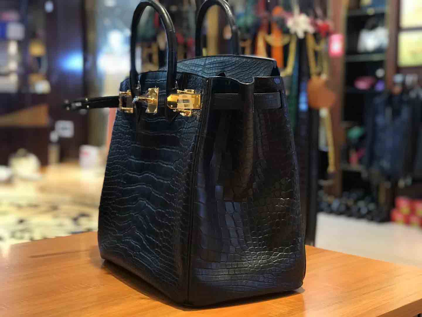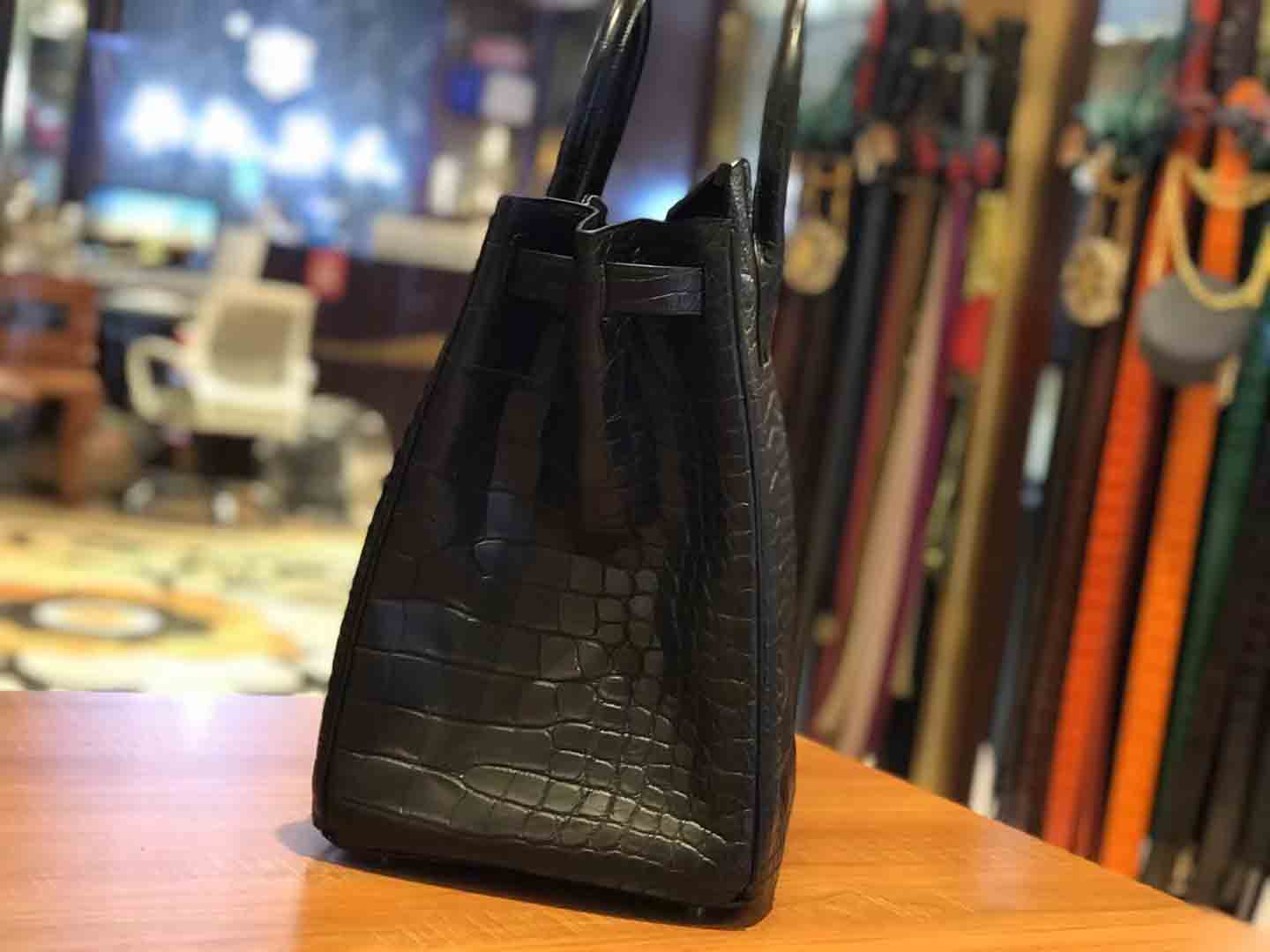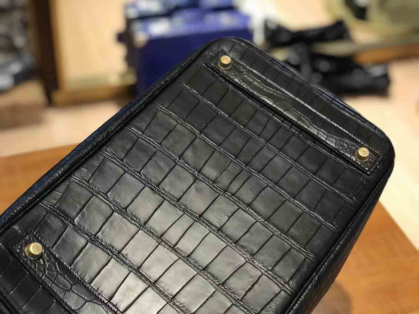HAC40 男士手提包 雾面兴隆美洲鳄 黑金 黑银 手缝