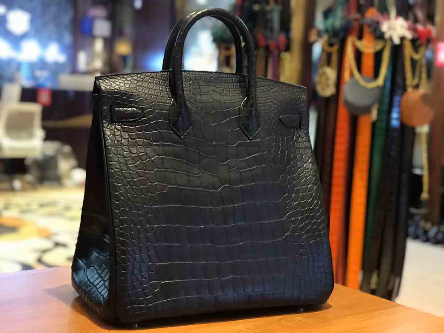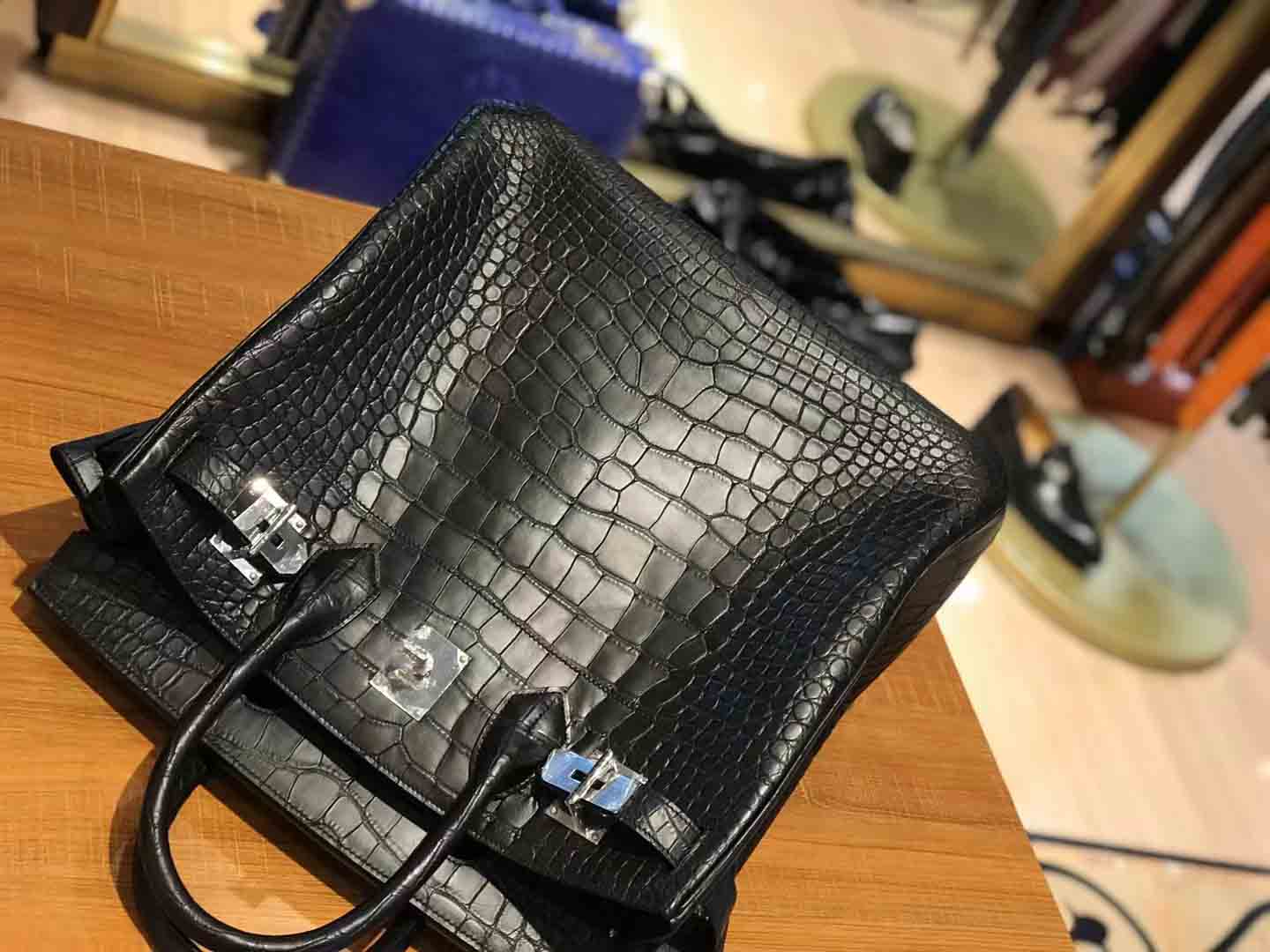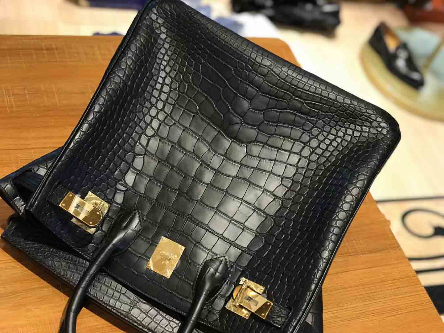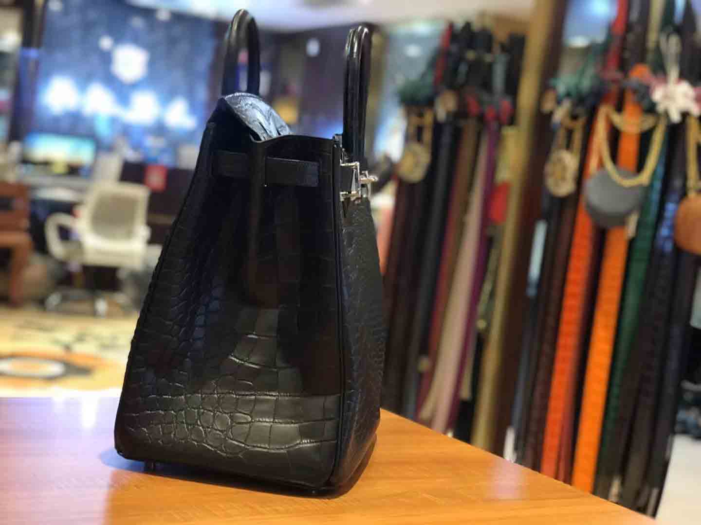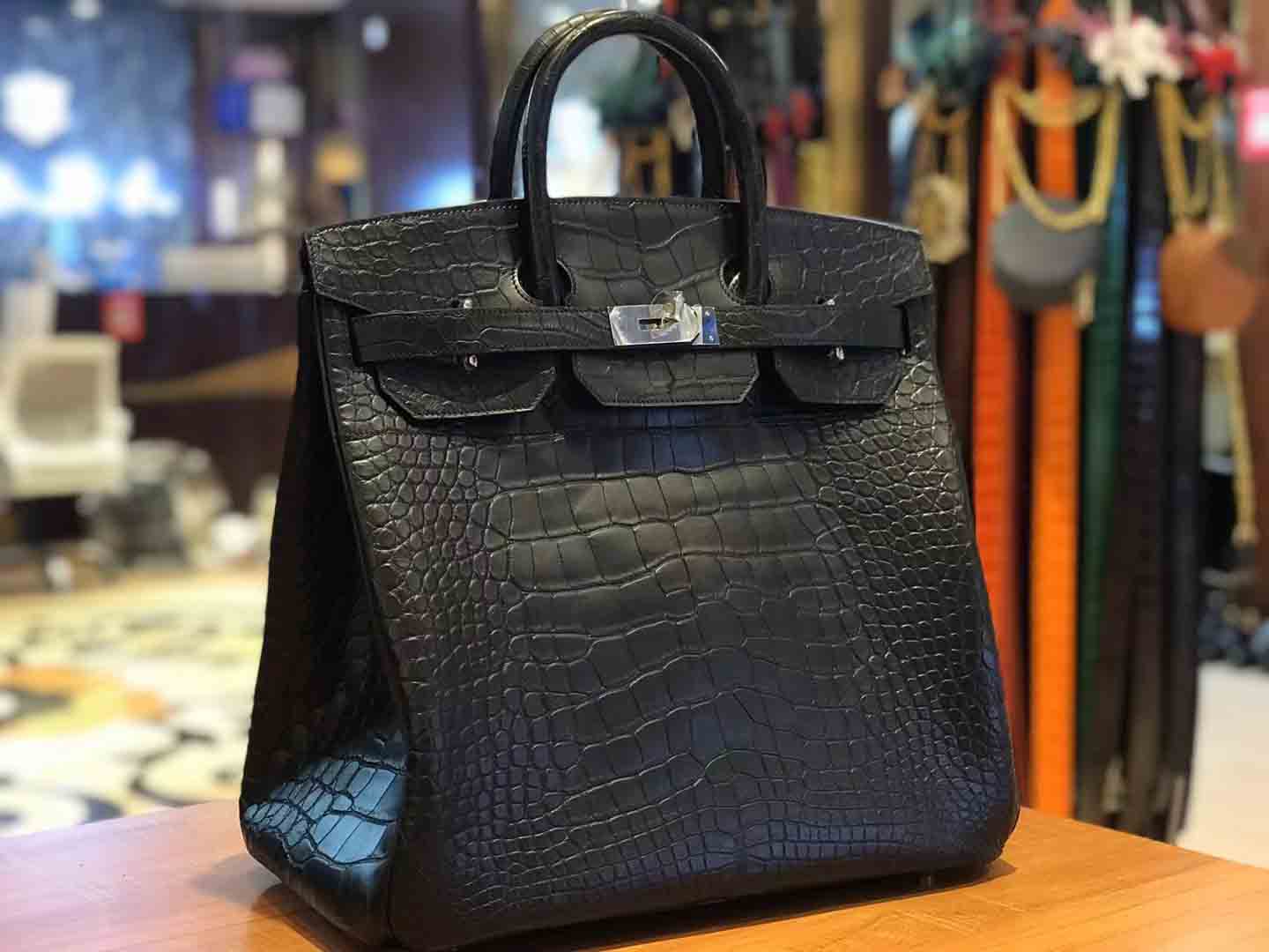 HAC40 男士手提包 雾面兴隆美洲鳄 黑金 黑银 手缝