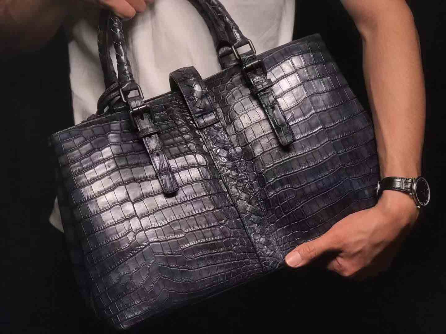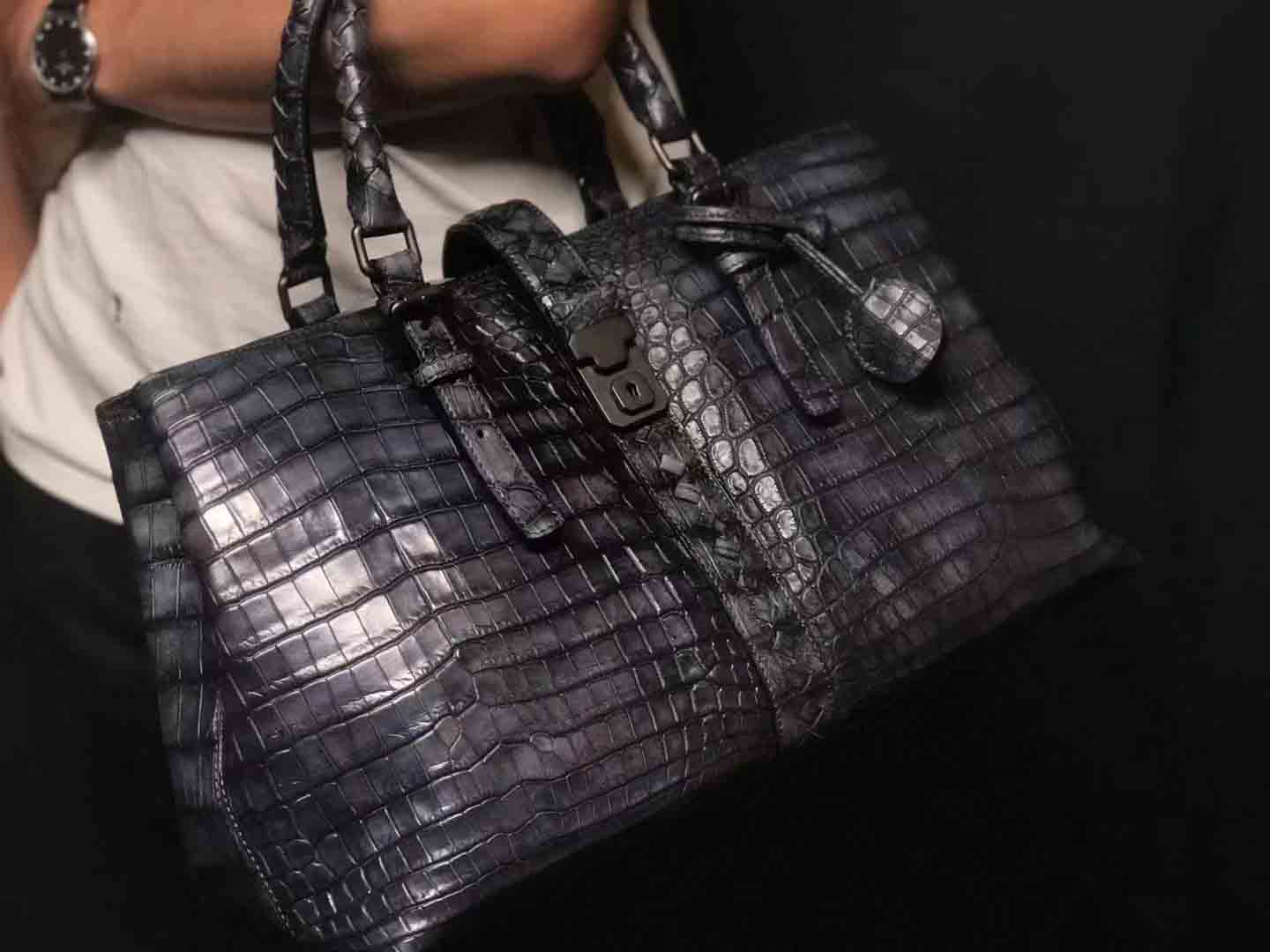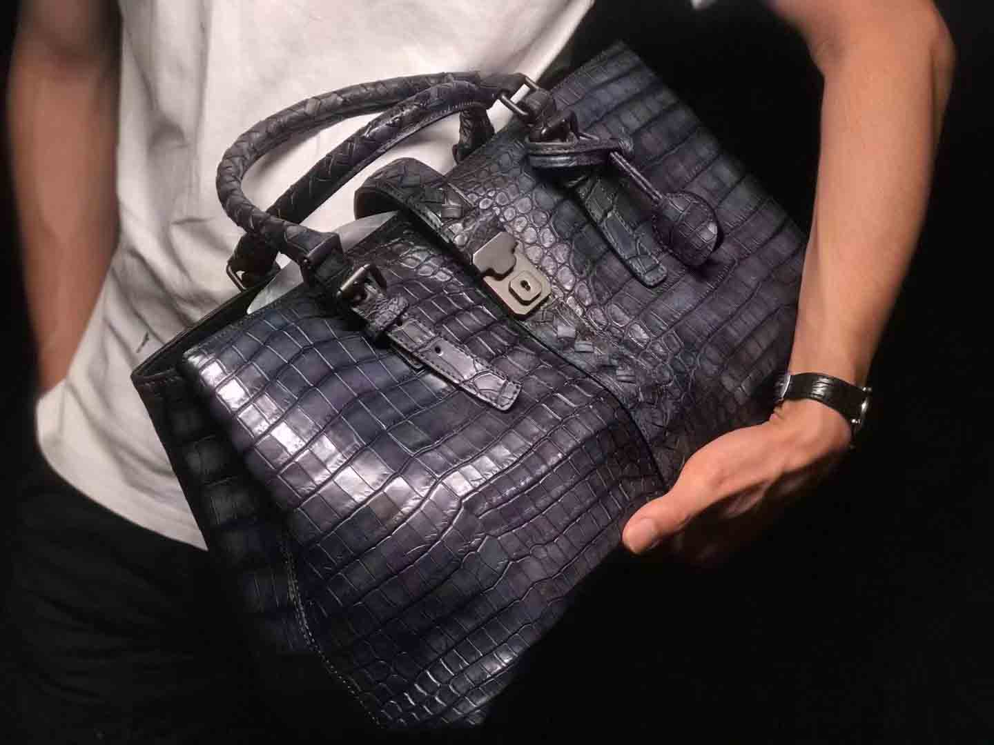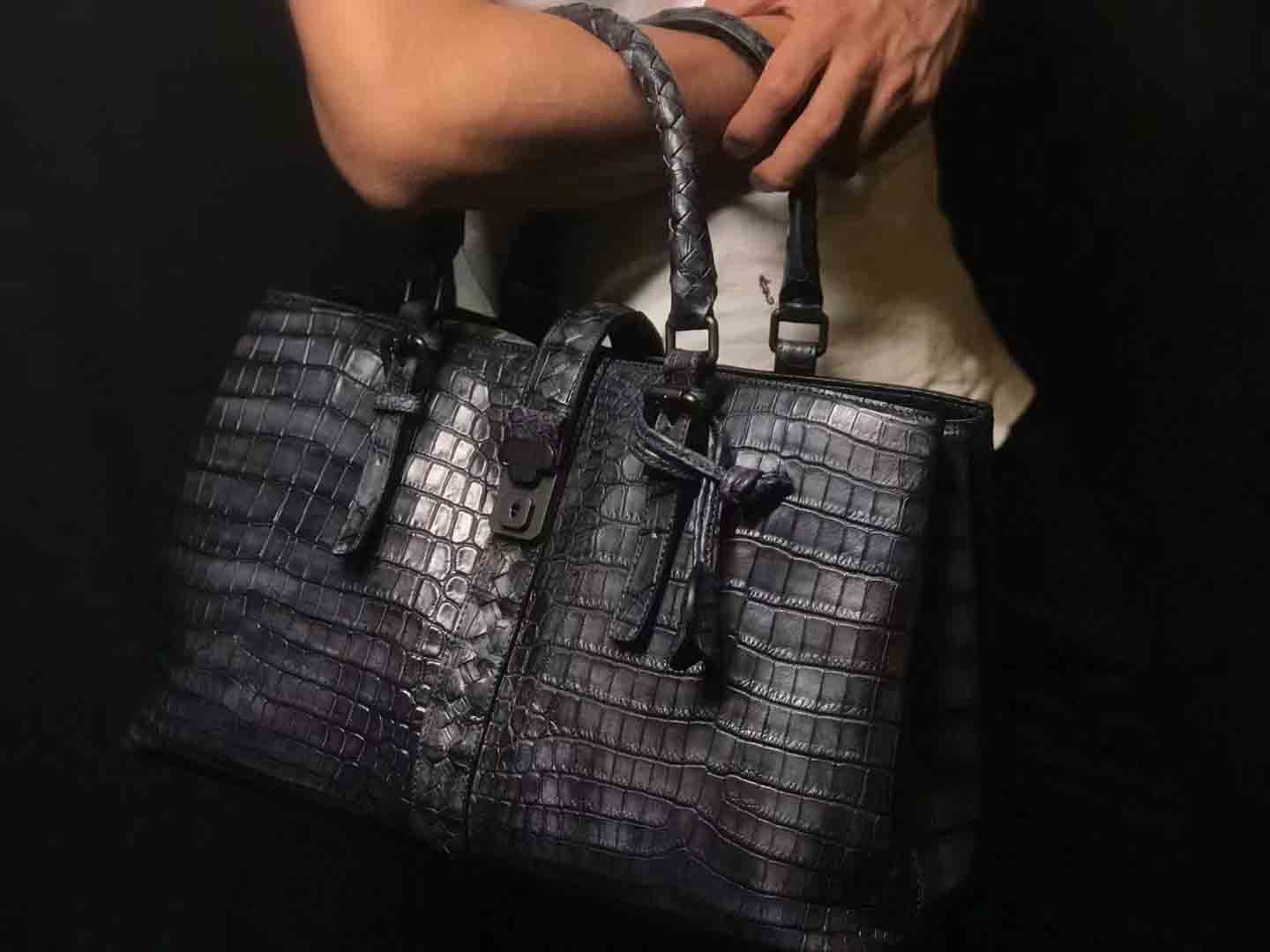 bv鳄鱼手工编织手提袋