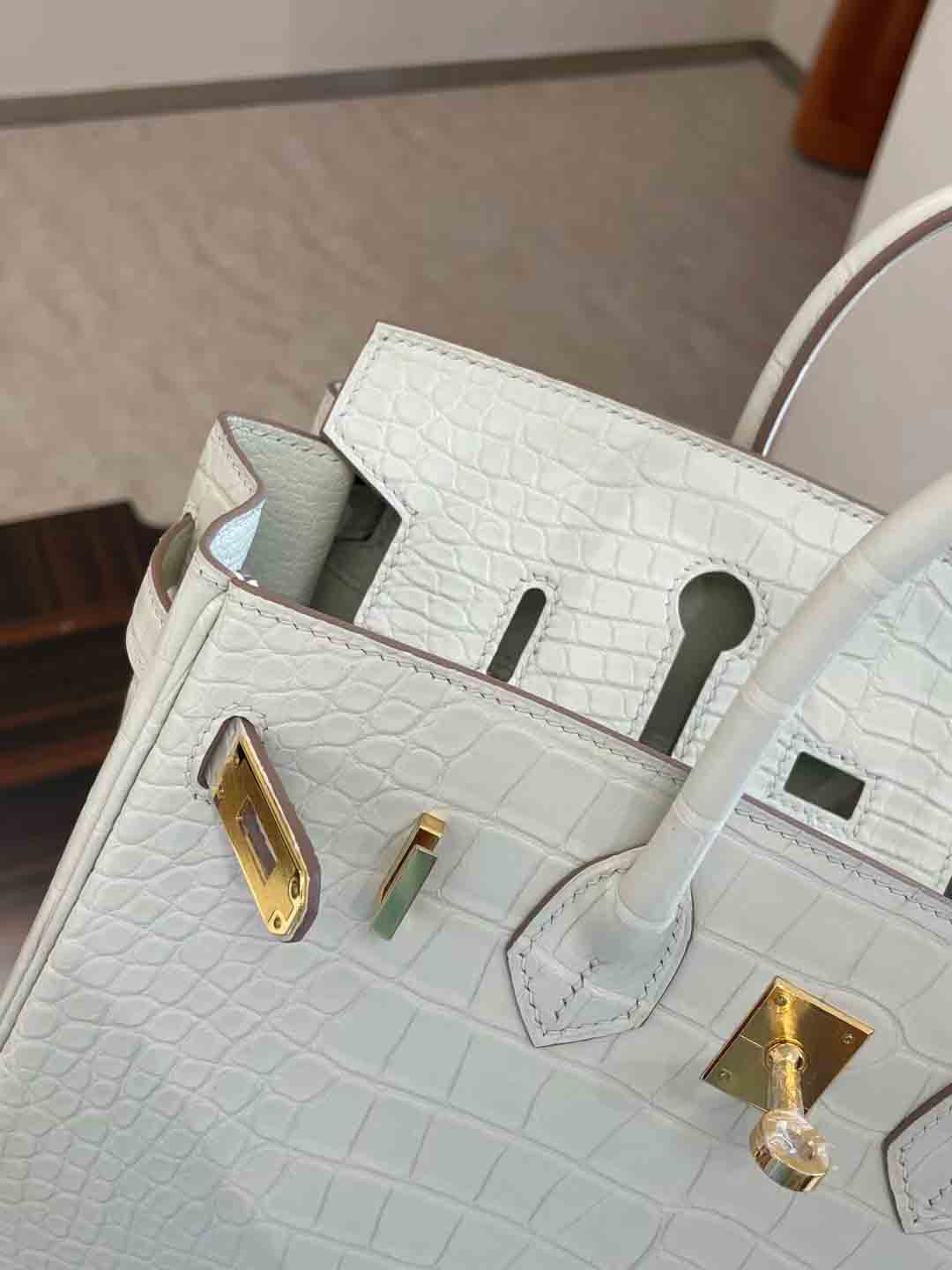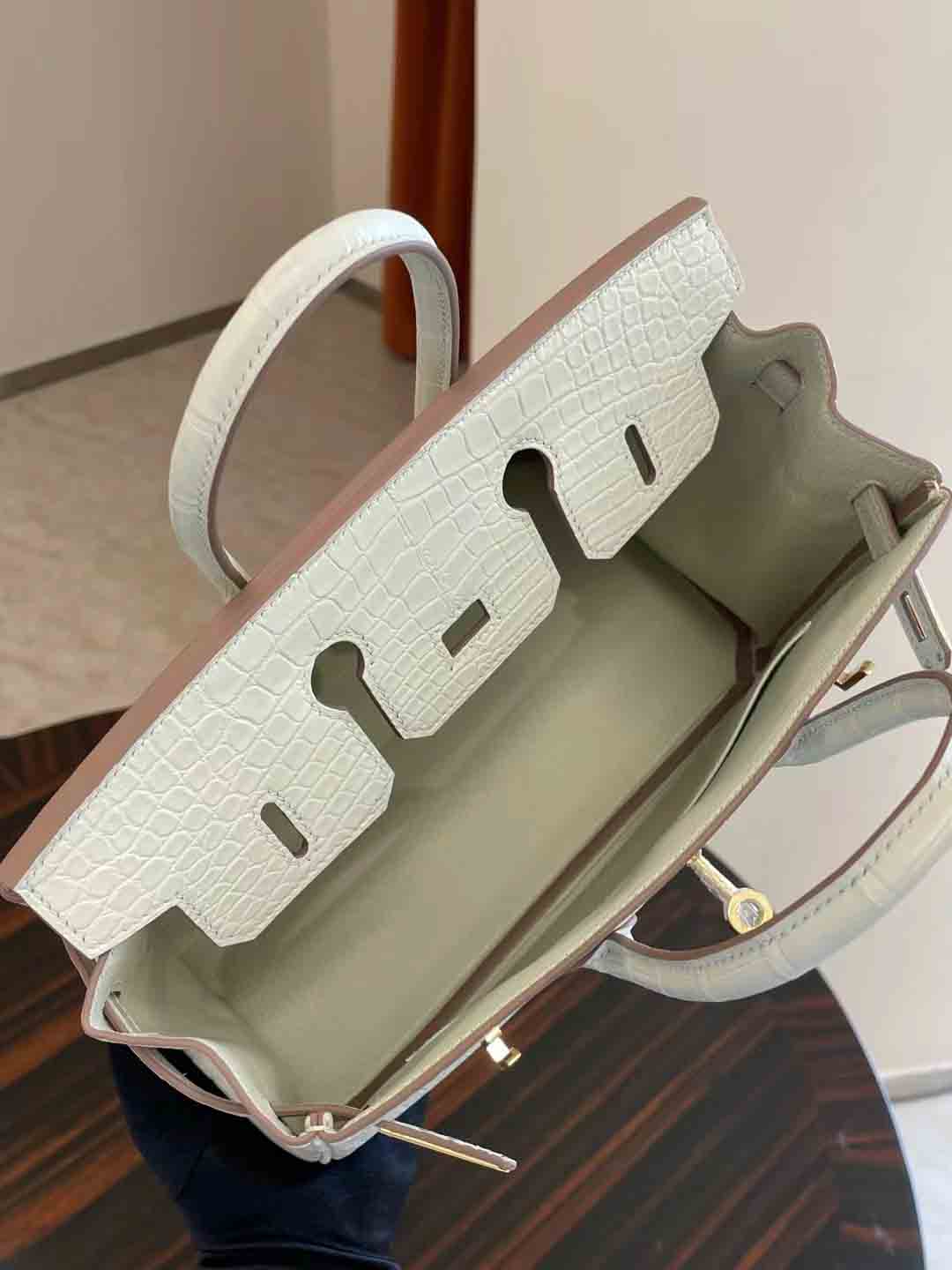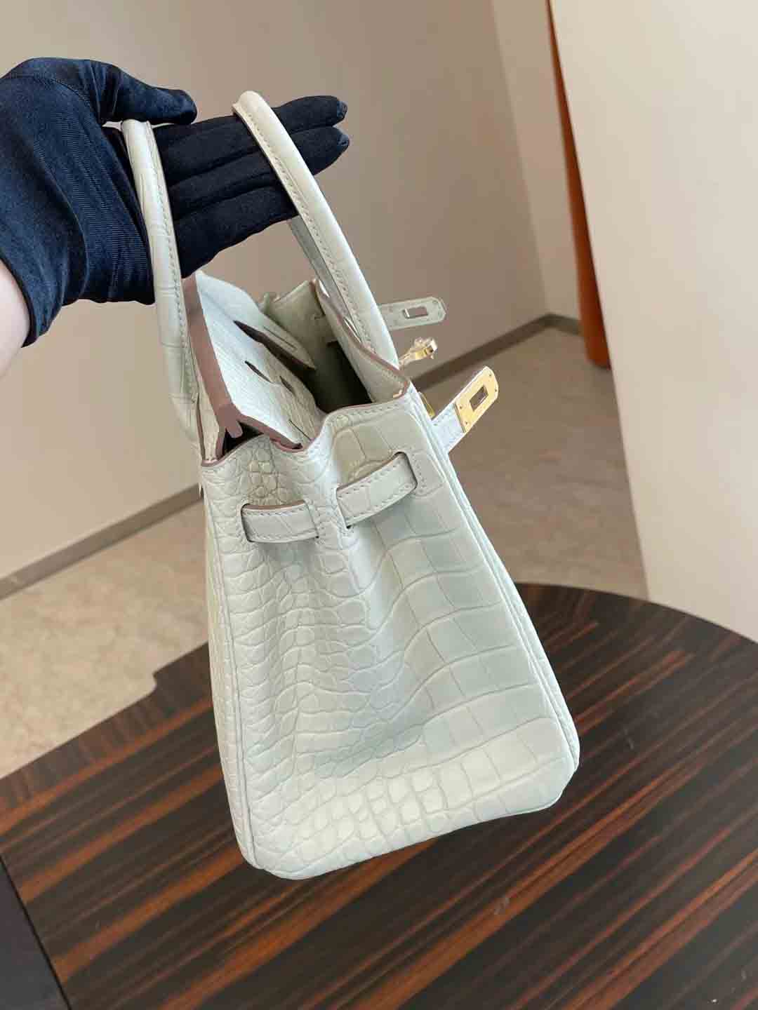BK 8L 奶油白 25cm 鳄鱼 金扣
