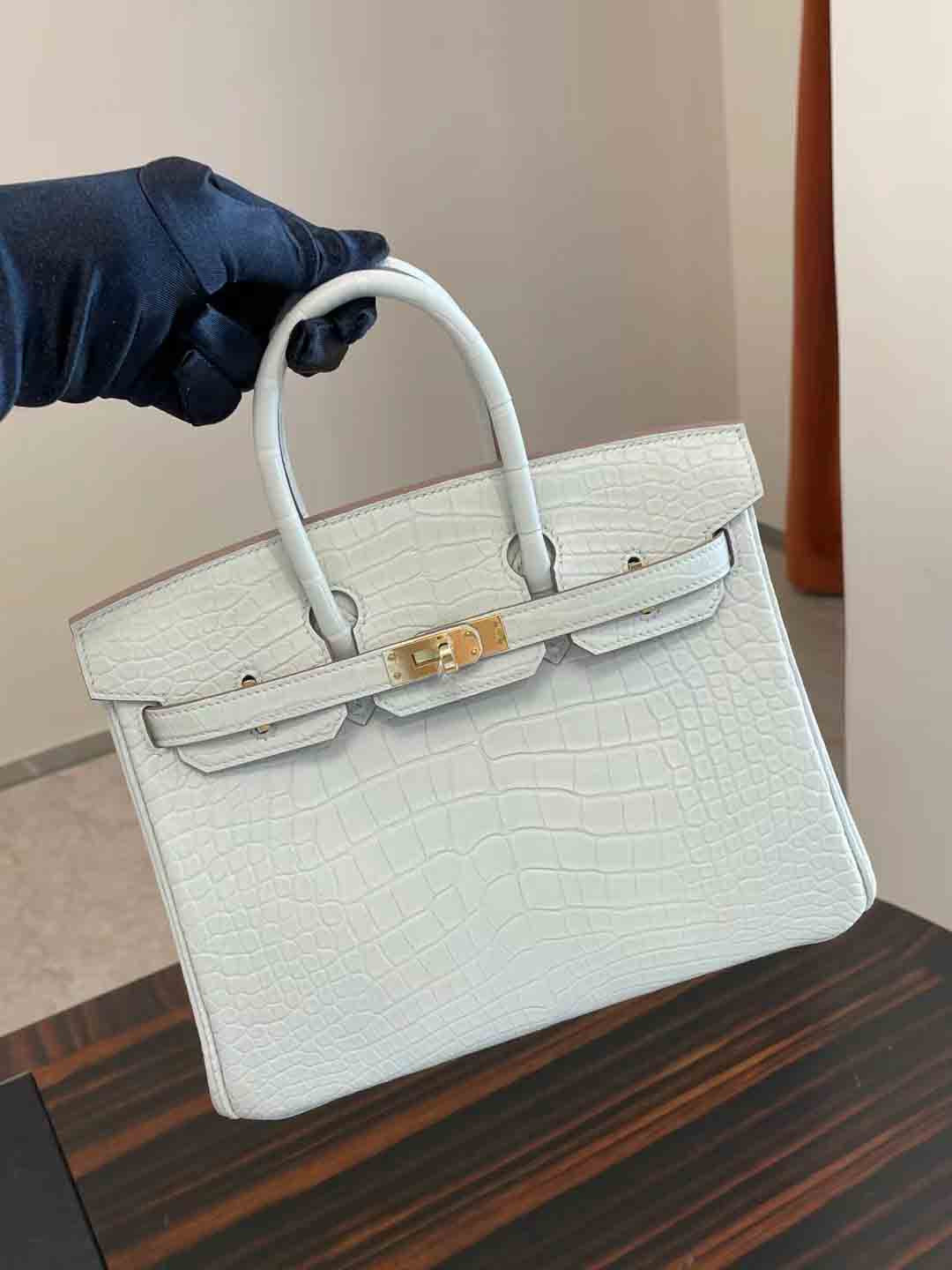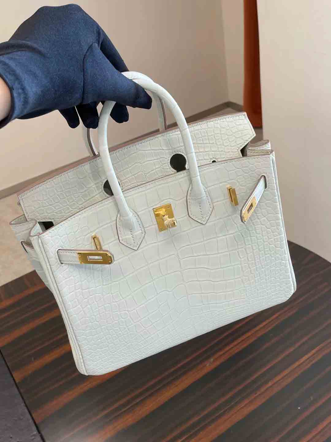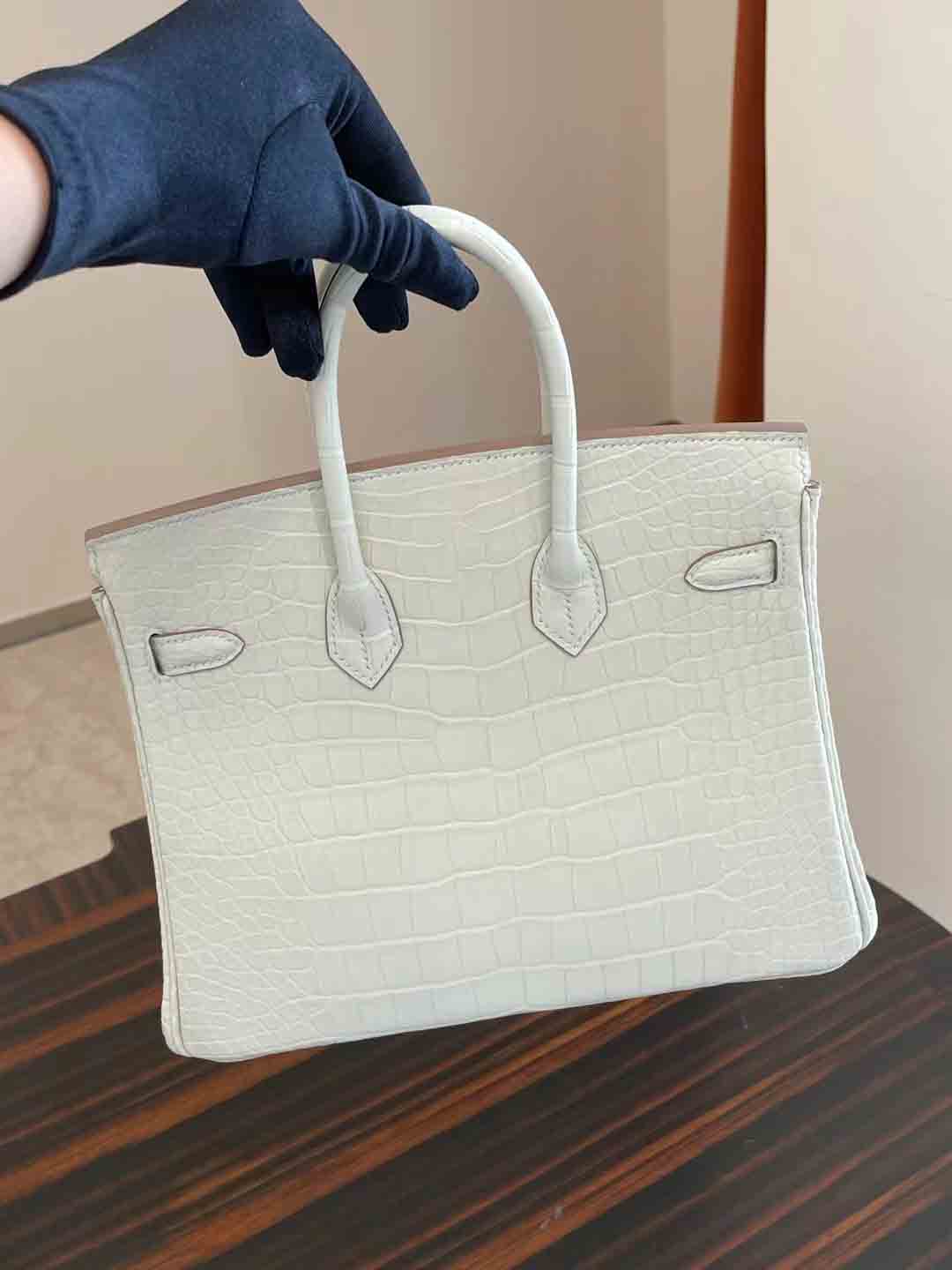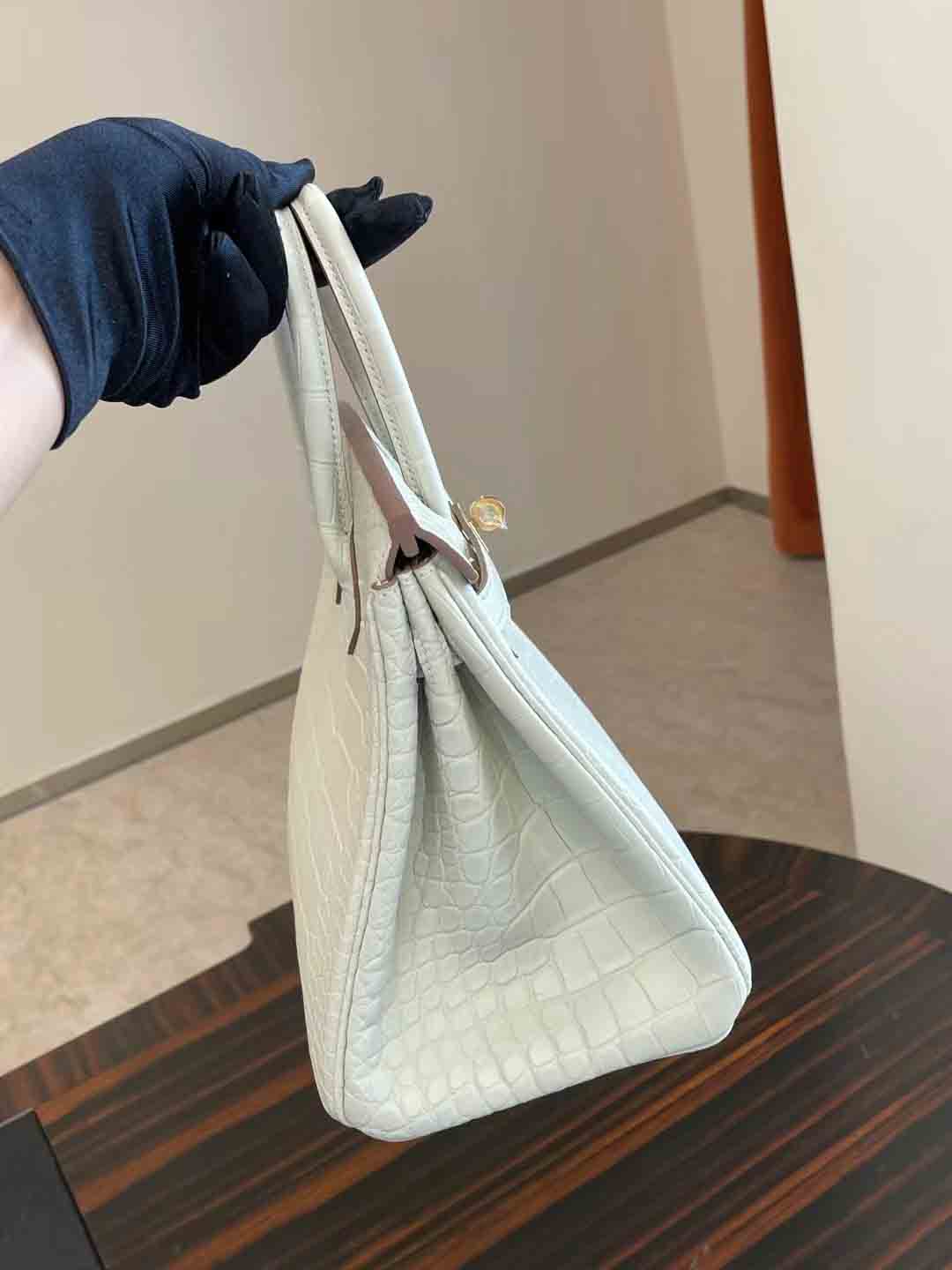 BK 8L 奶油白 25cm 鳄鱼 金扣