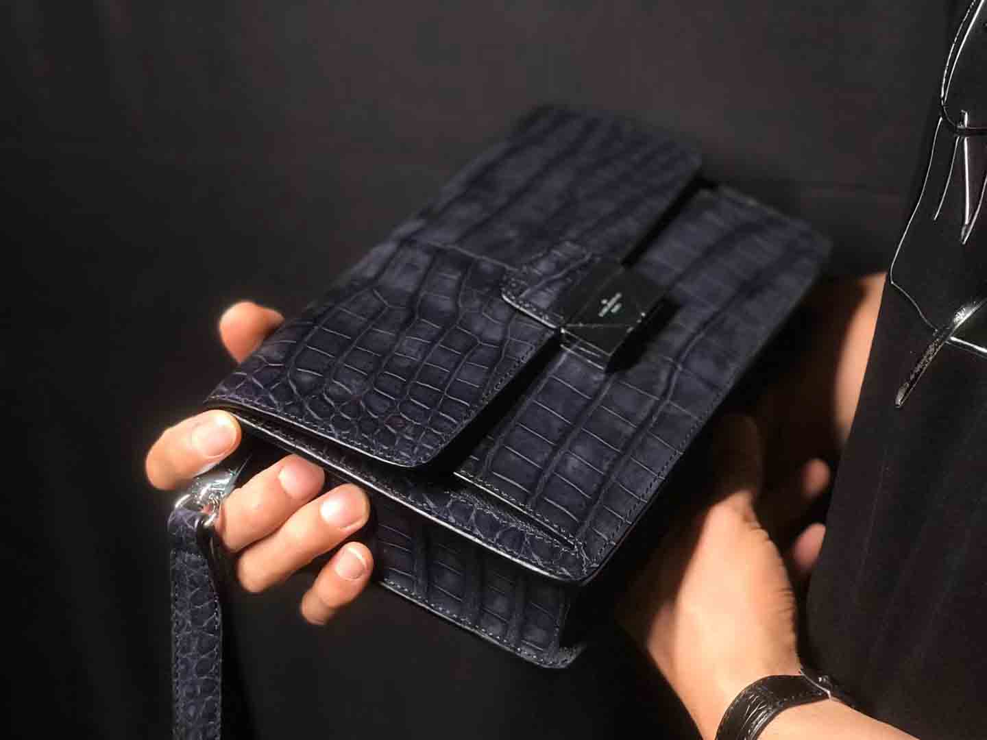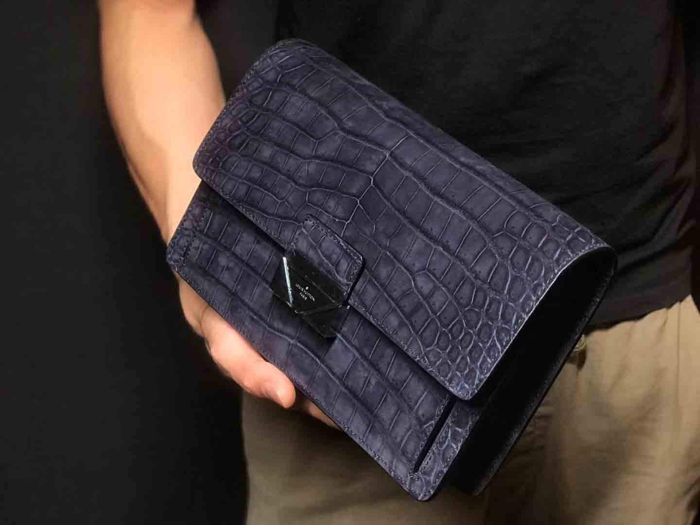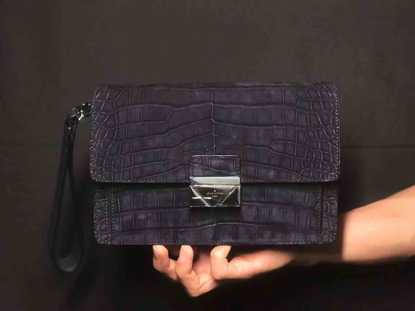 正品对版 磨砂鳄鱼 lv夹包#黑蓝色 现货。规格:24.5-16.5