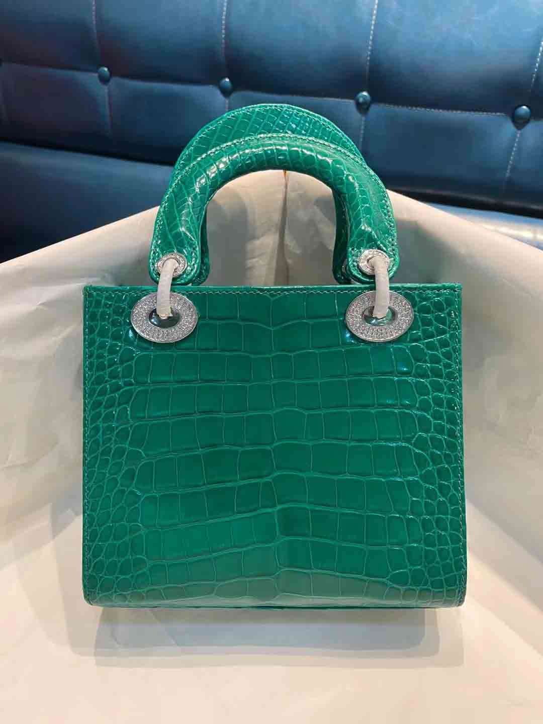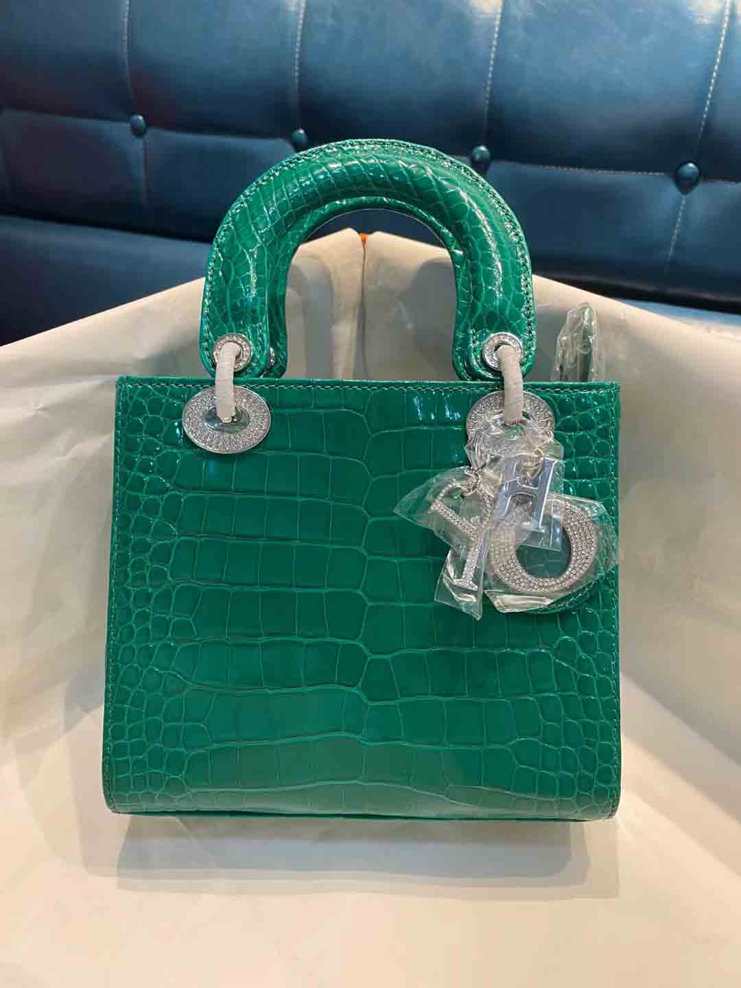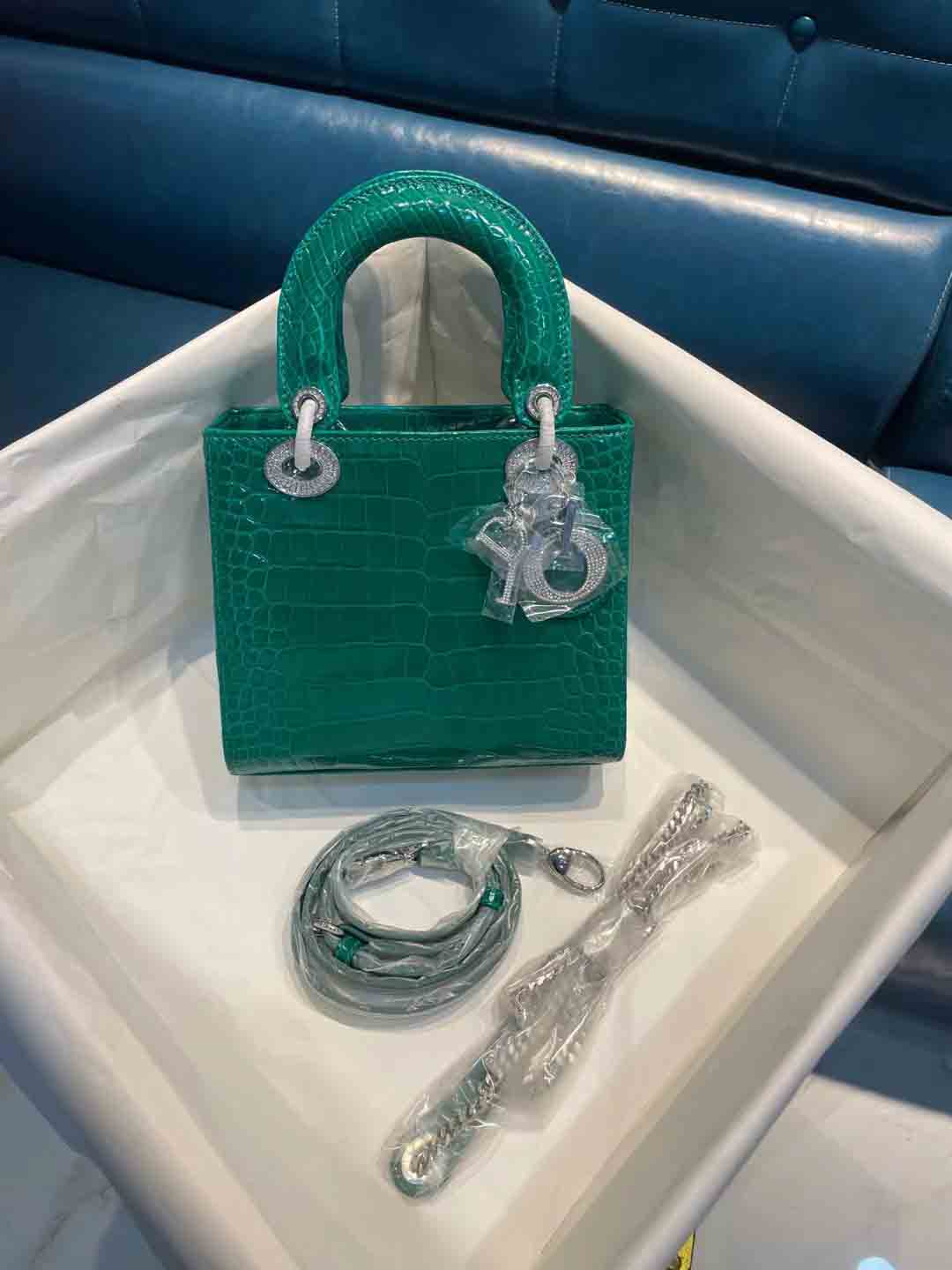 客定分享 迪奥dior美洲鳄 翡翠绿 水钻戴妃包 白富美小姐姐必备 尺寸:20*16.5*8cm