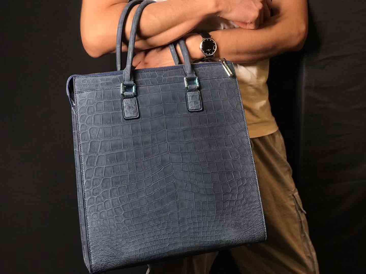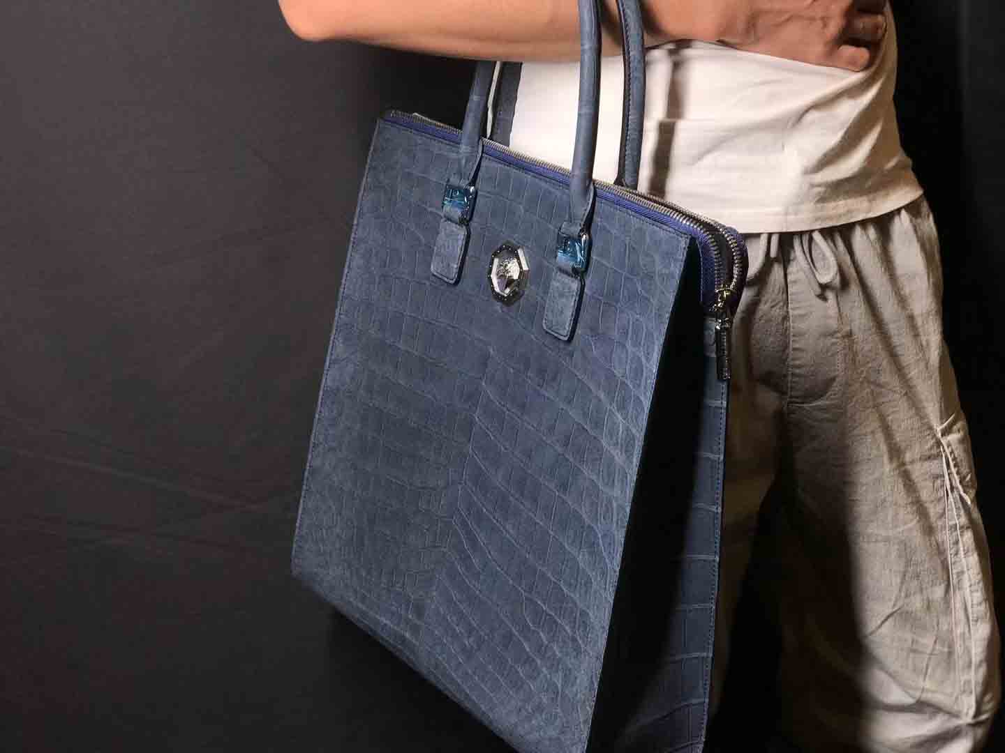 SR.系列|进口尼罗鳄磨砂服装革 蓝色 男款手提。