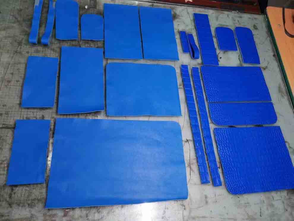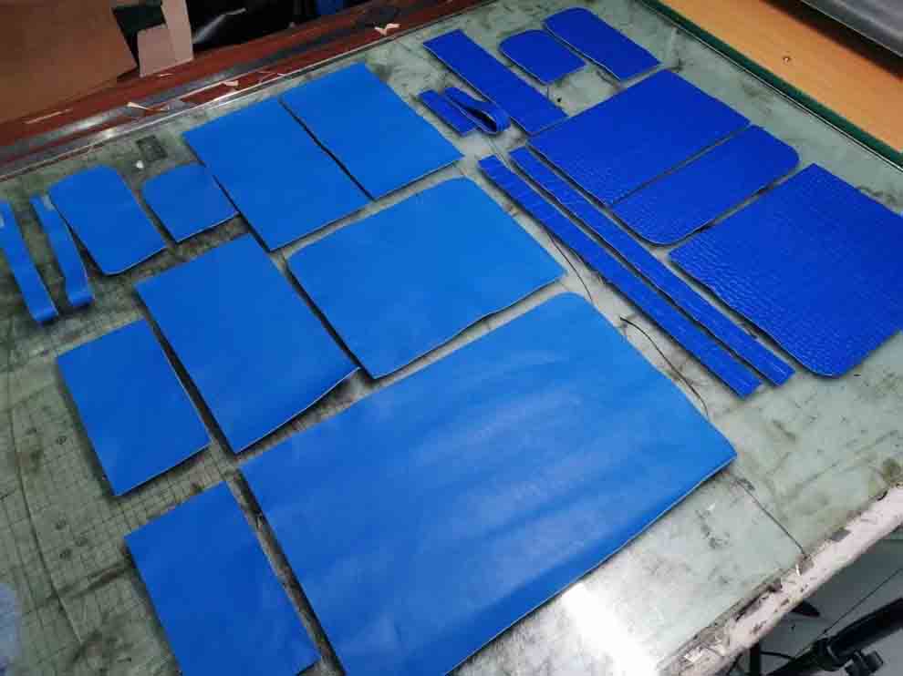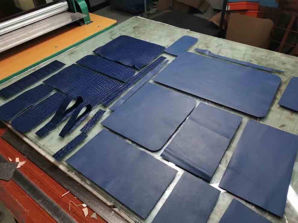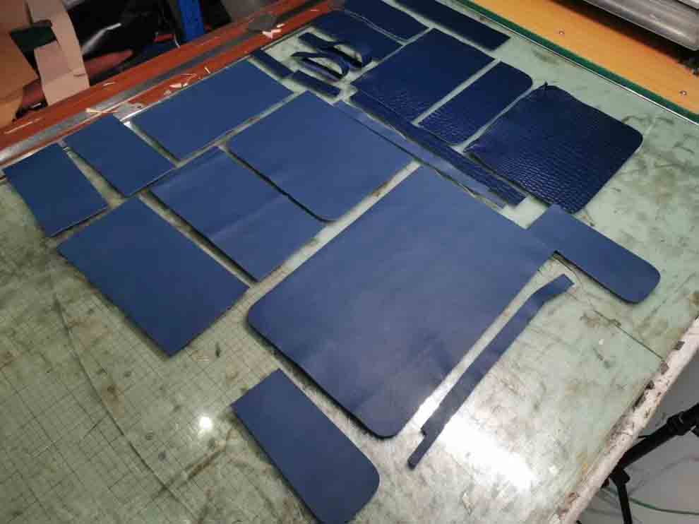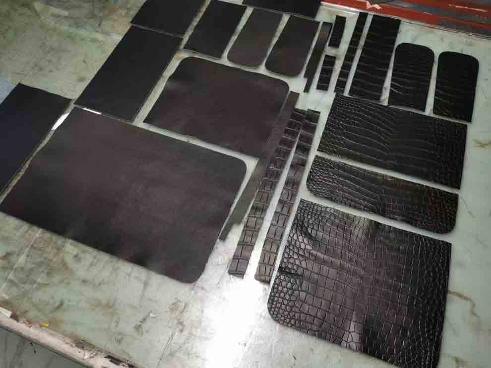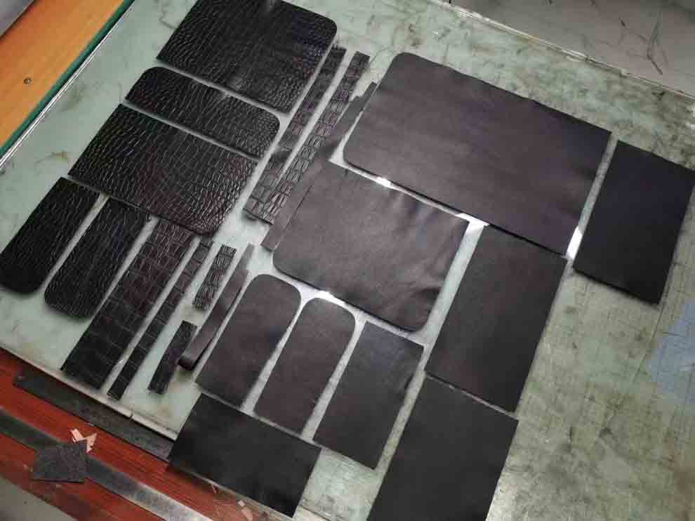 一个手拿包的用料,2条鳄鱼+2条山羊,请忽略脏脏的工作台,扎扎实实的用料方案。用料实在,才能做出满意的包包来,包包裁剪碎片摆放图-包包零件摆放图。