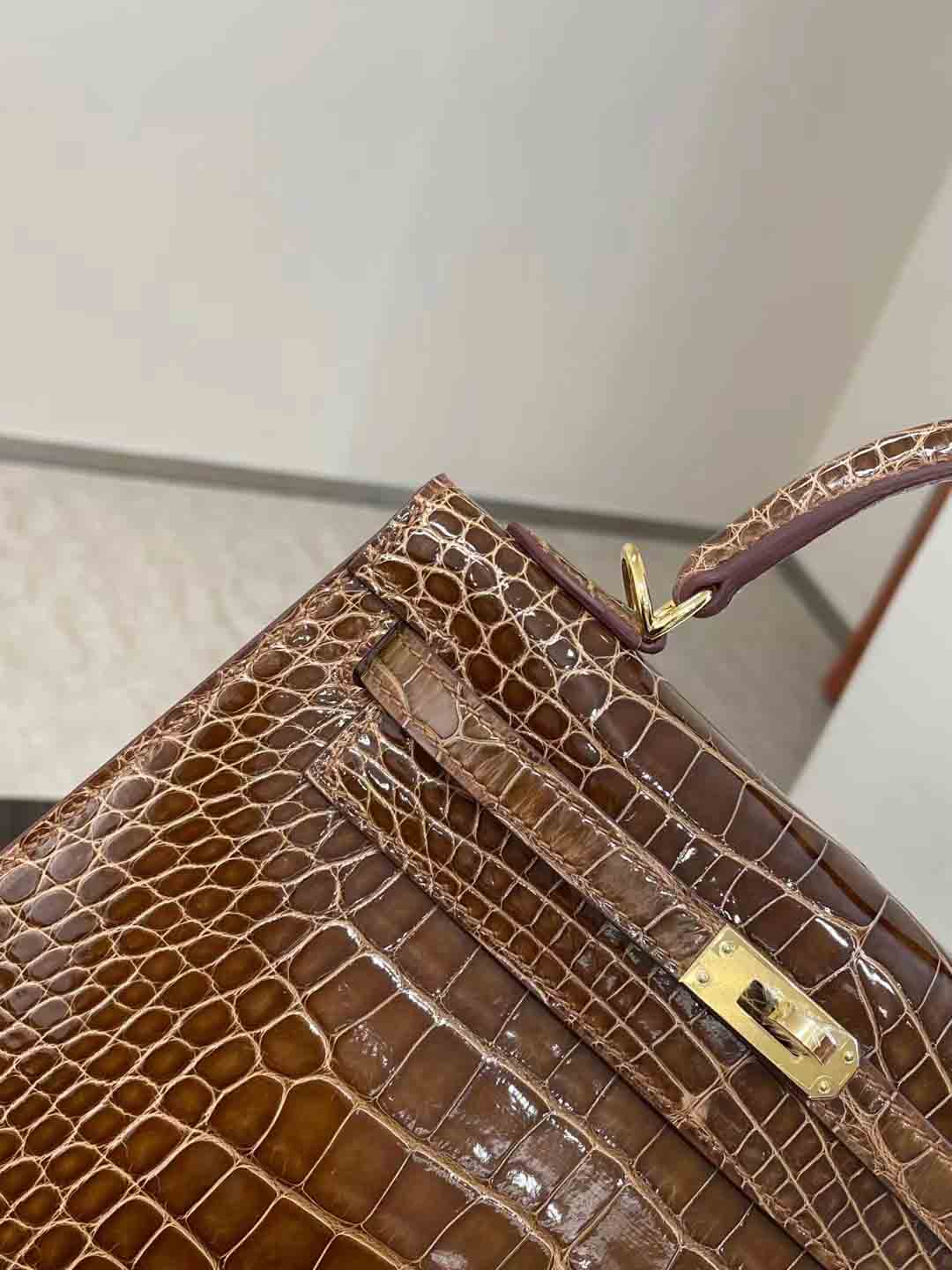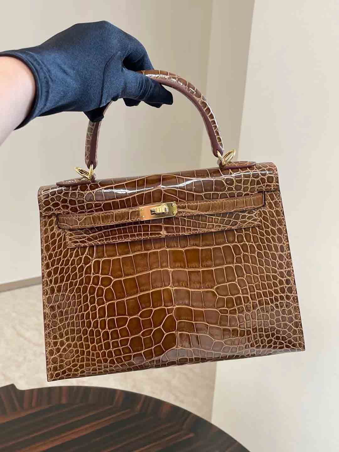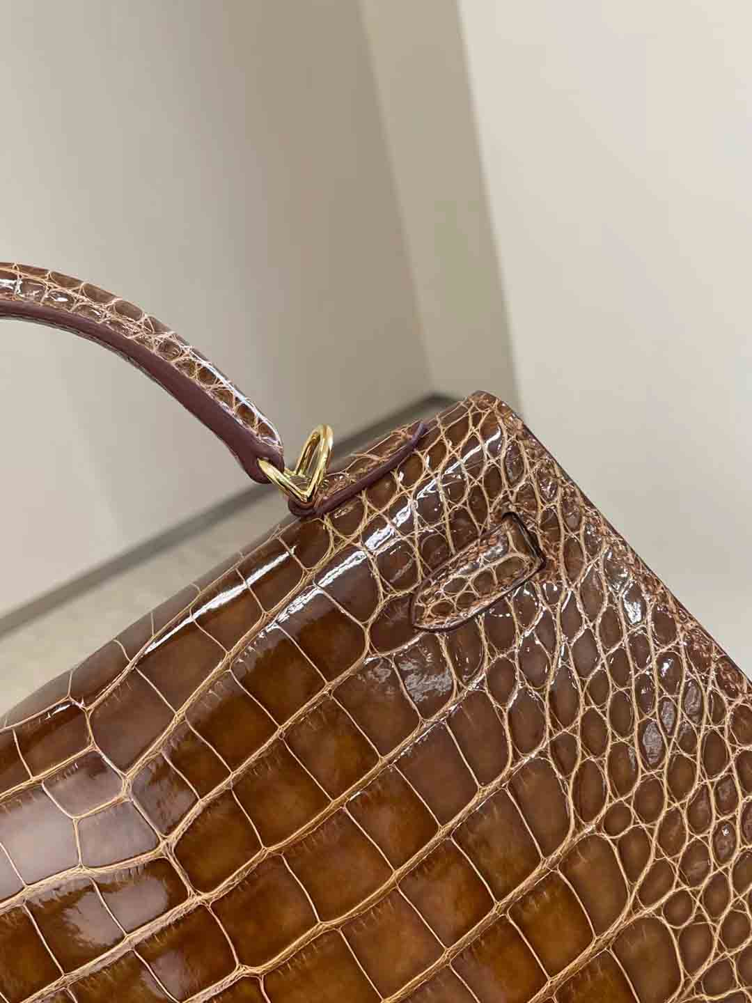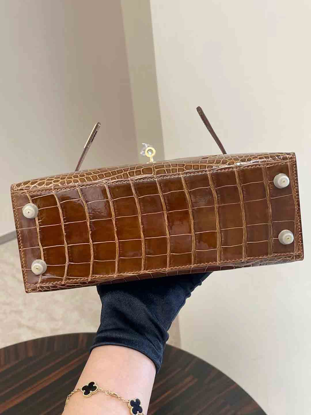 Kelly25 蜜糖棕 亮面美洲鳄 金扣银扣各一 纯手工蜡线 现货 in stock...