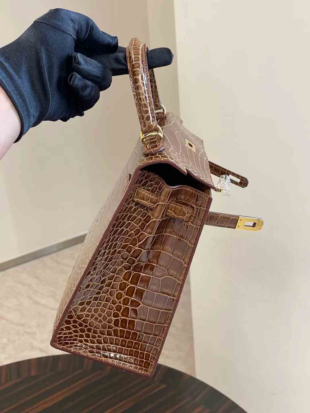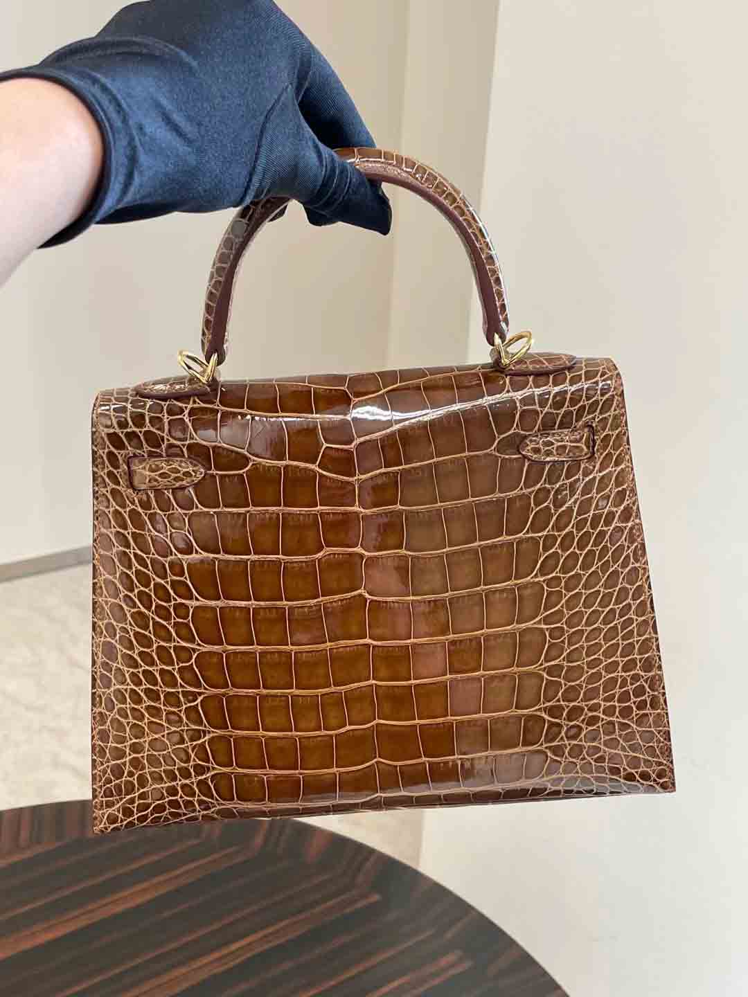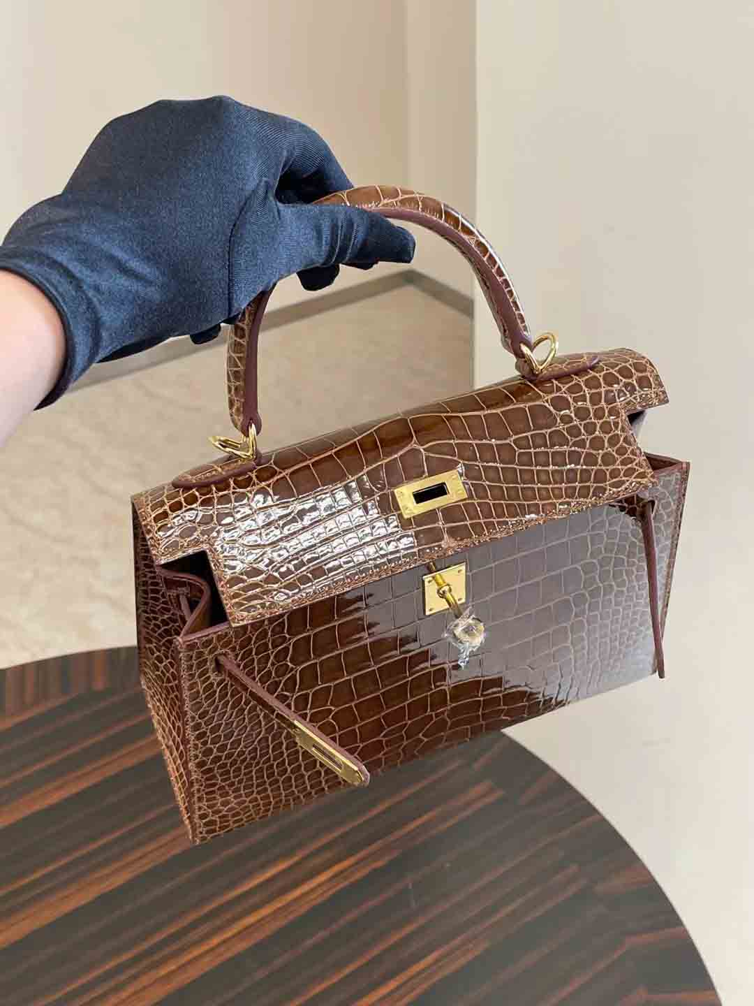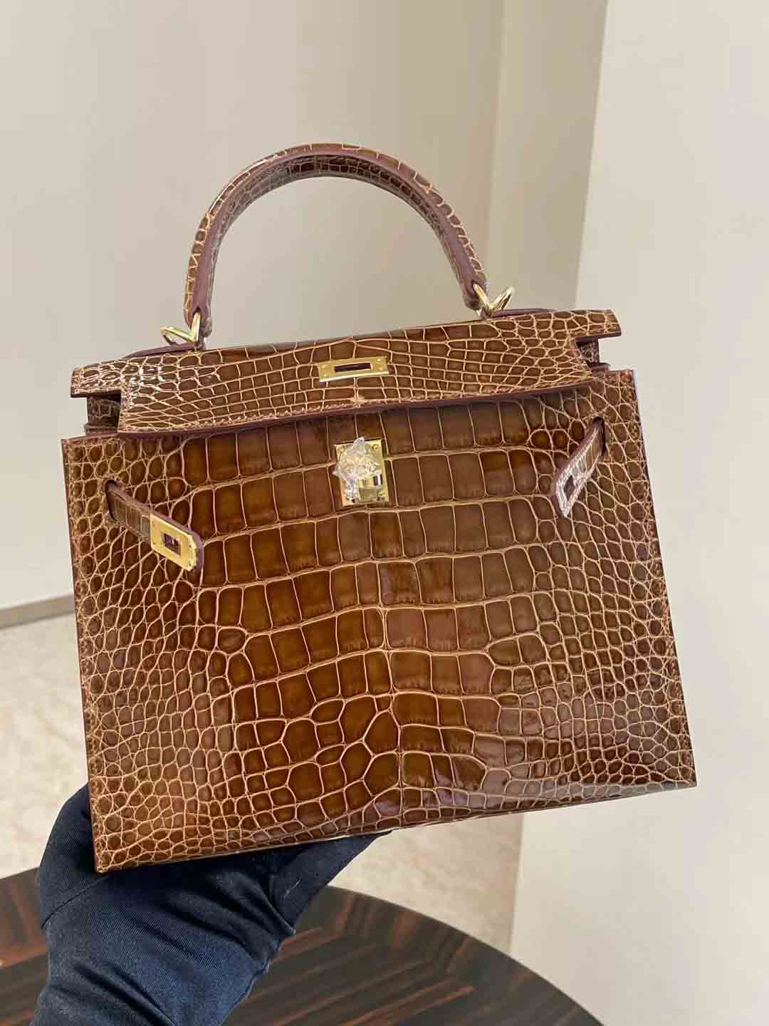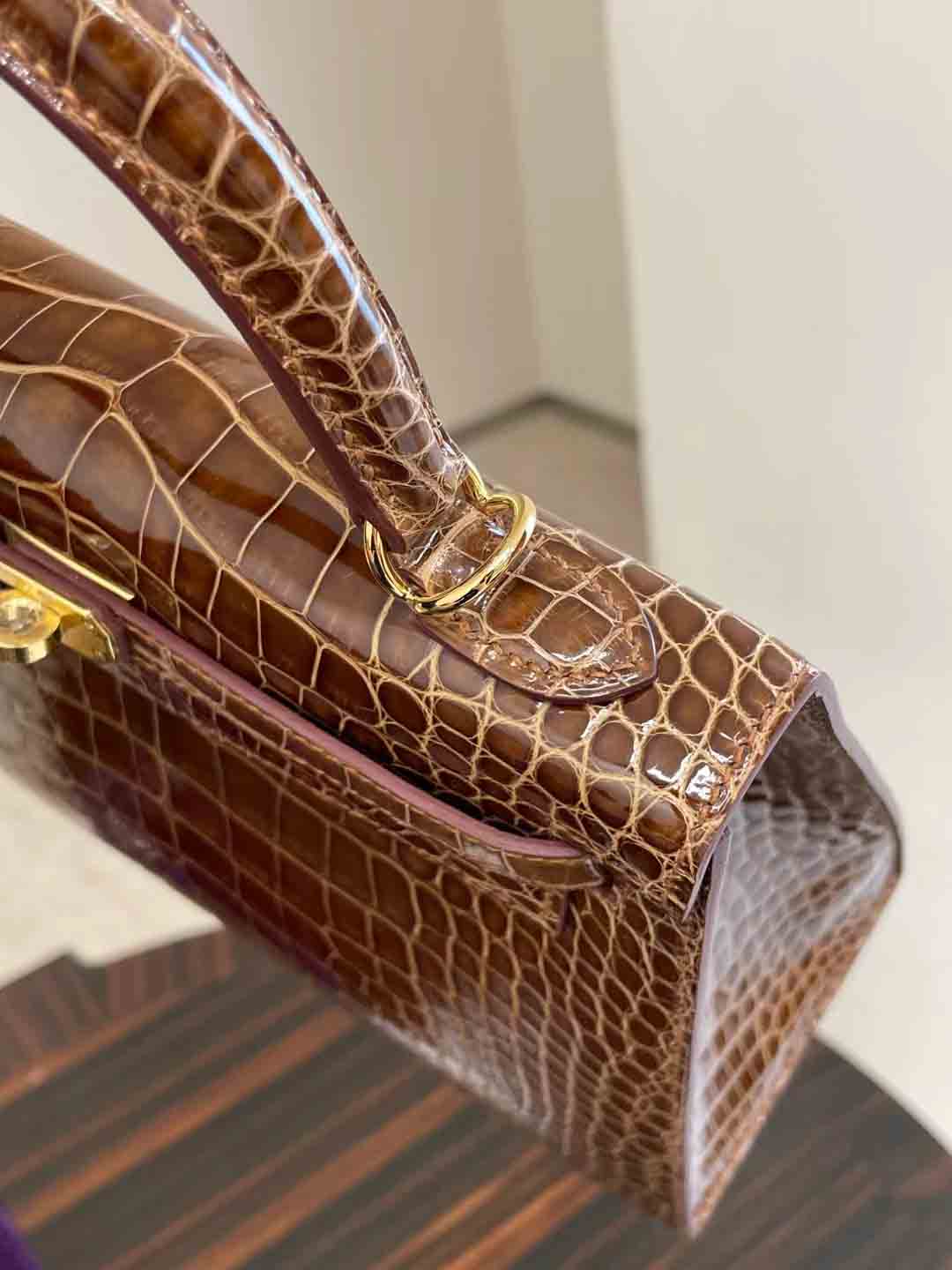 Kelly25 蜜糖棕 亮面美洲鳄 金扣银扣各一 纯手工蜡线 现货 in stock...