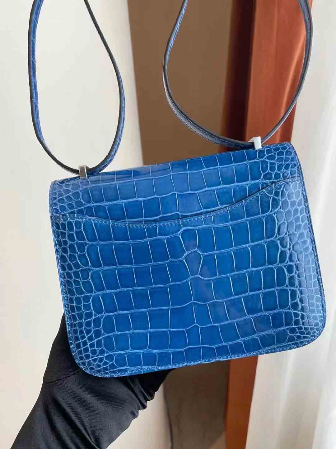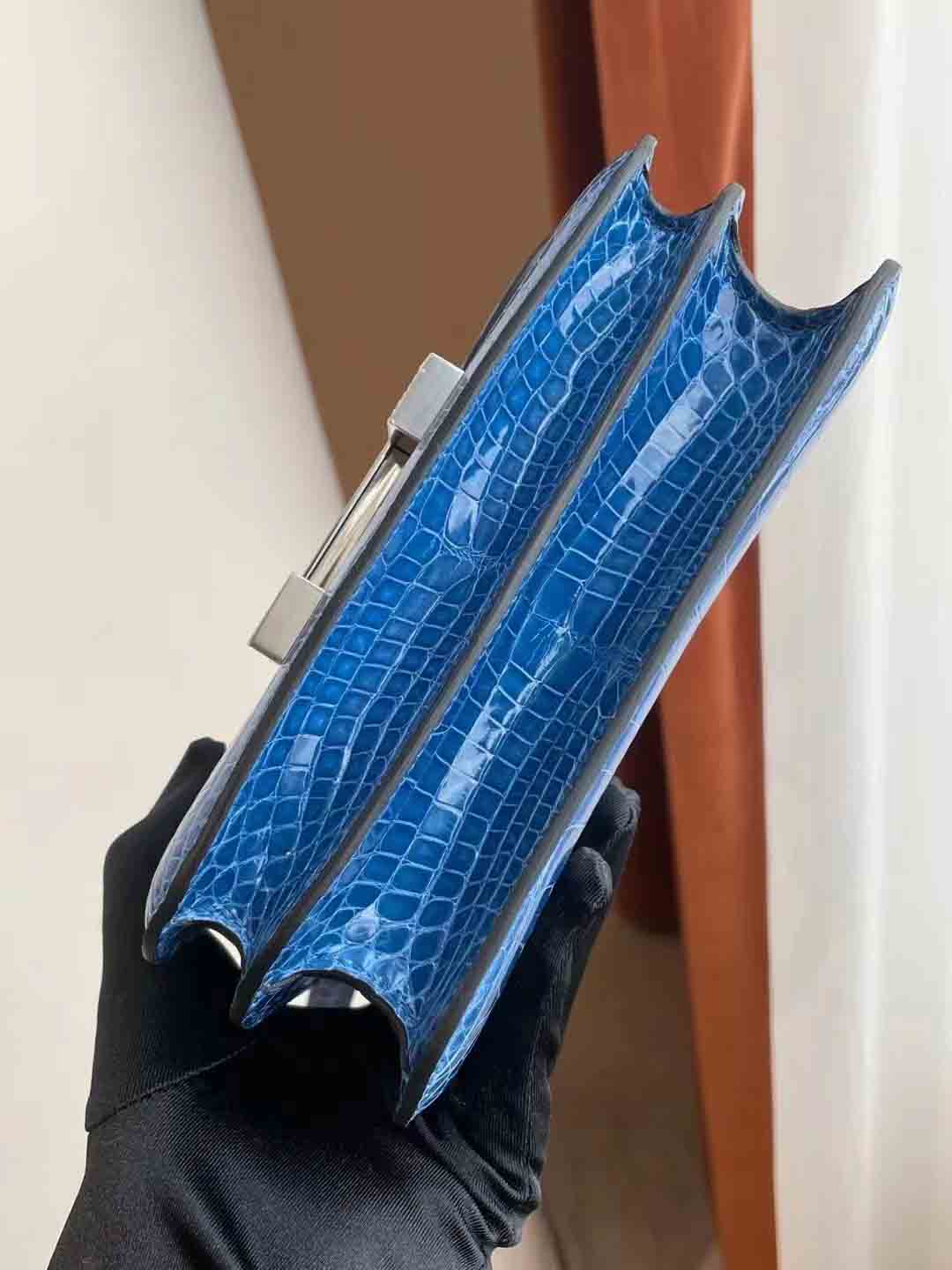 Constance 鳄鱼皮 7Q 希腊蓝 银扣 静谧的蓝色调,宁静的气质,大方简约中透着淡淡的优雅~你一定会爱不释手滴,高端私人定做厂家。