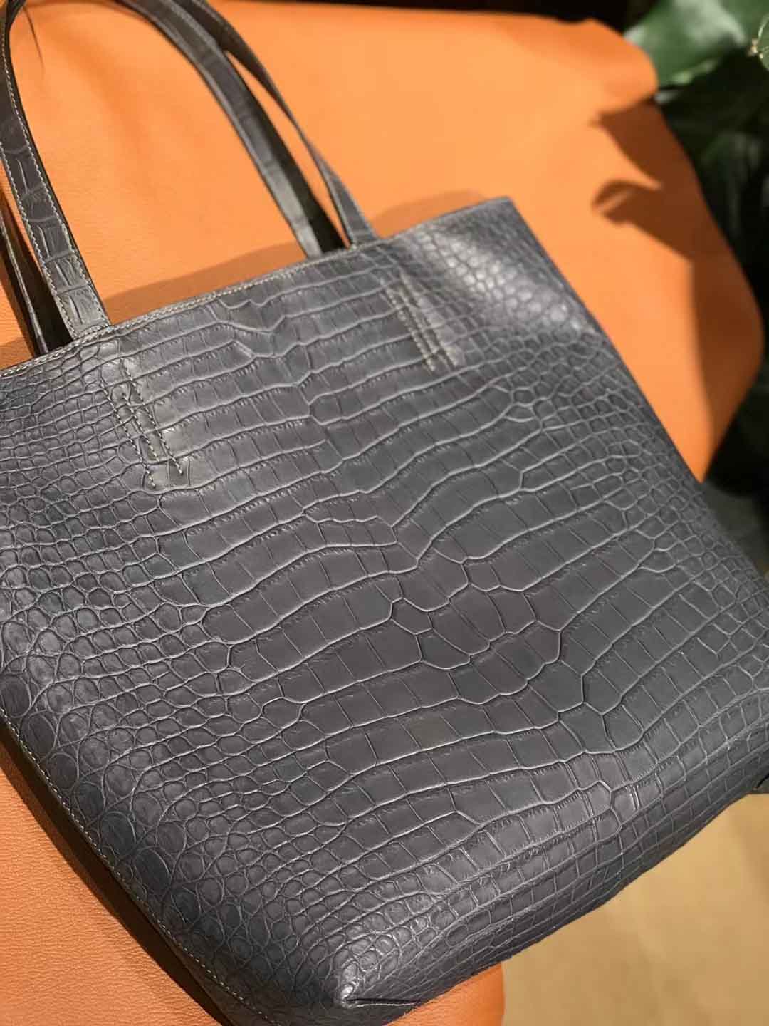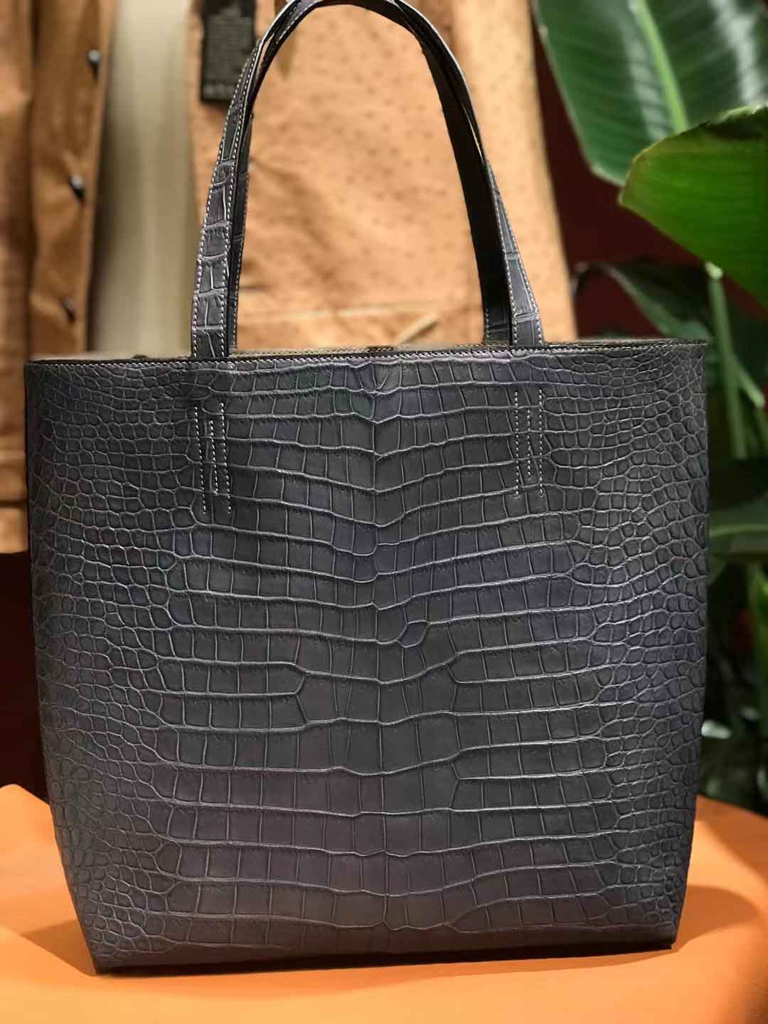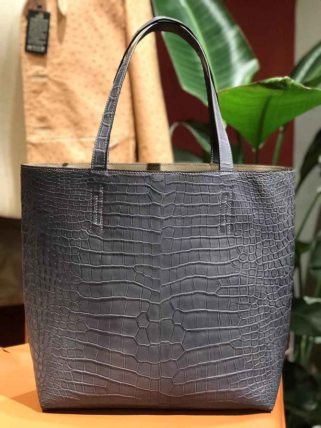 纯水染湾鳄灰色购物袋鳄鱼皮具定制厂家。