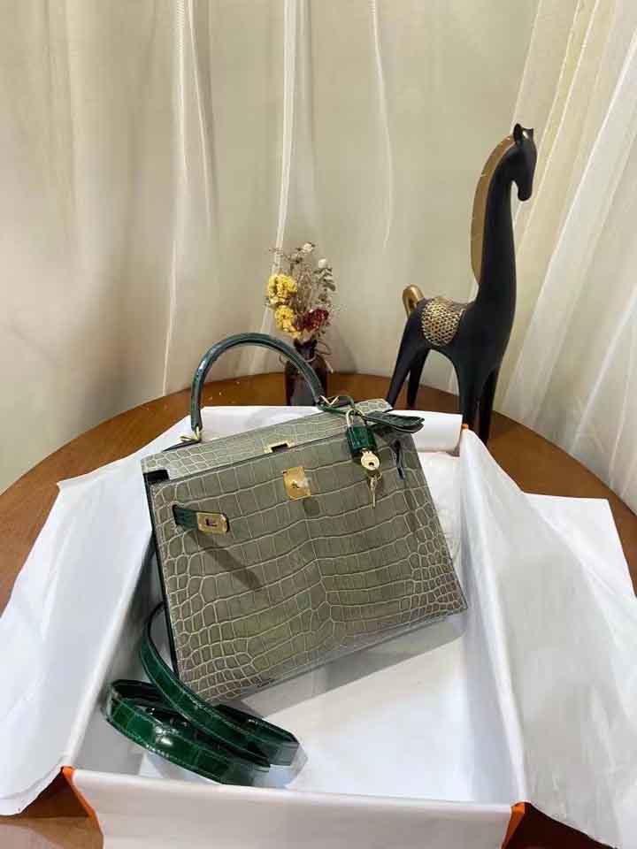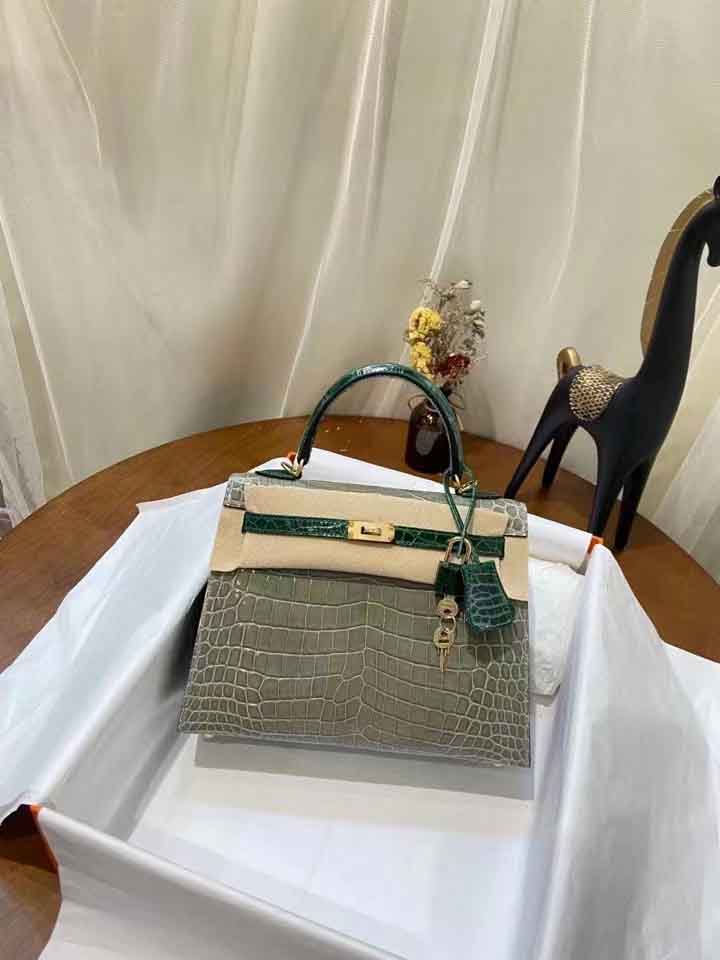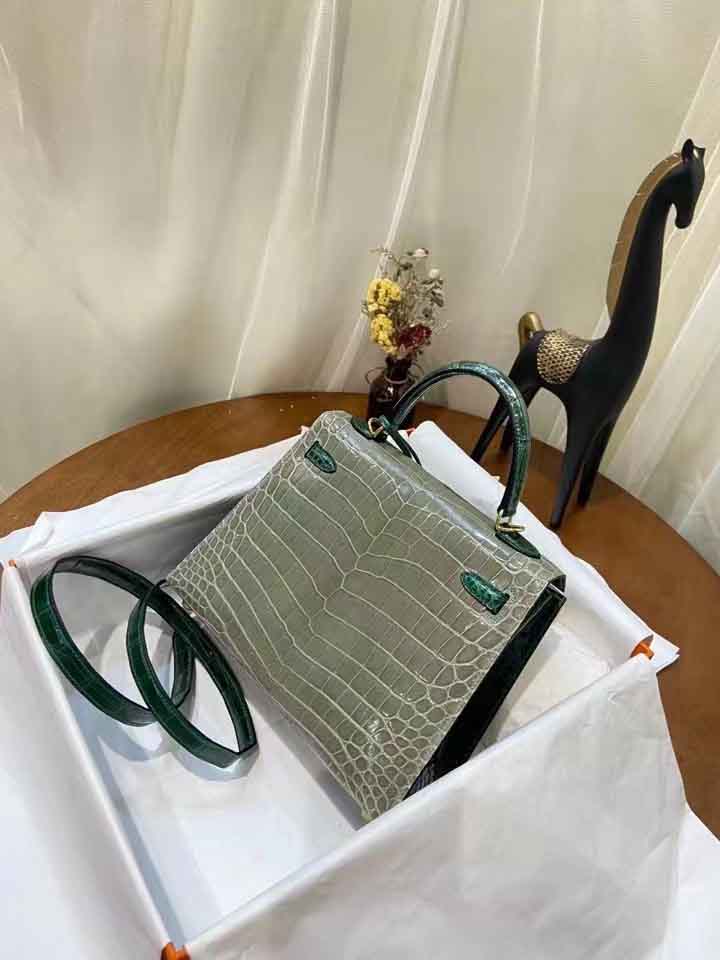 Kelly25斑鸠灰拼祖母绿 进口尼罗 全手工 极品