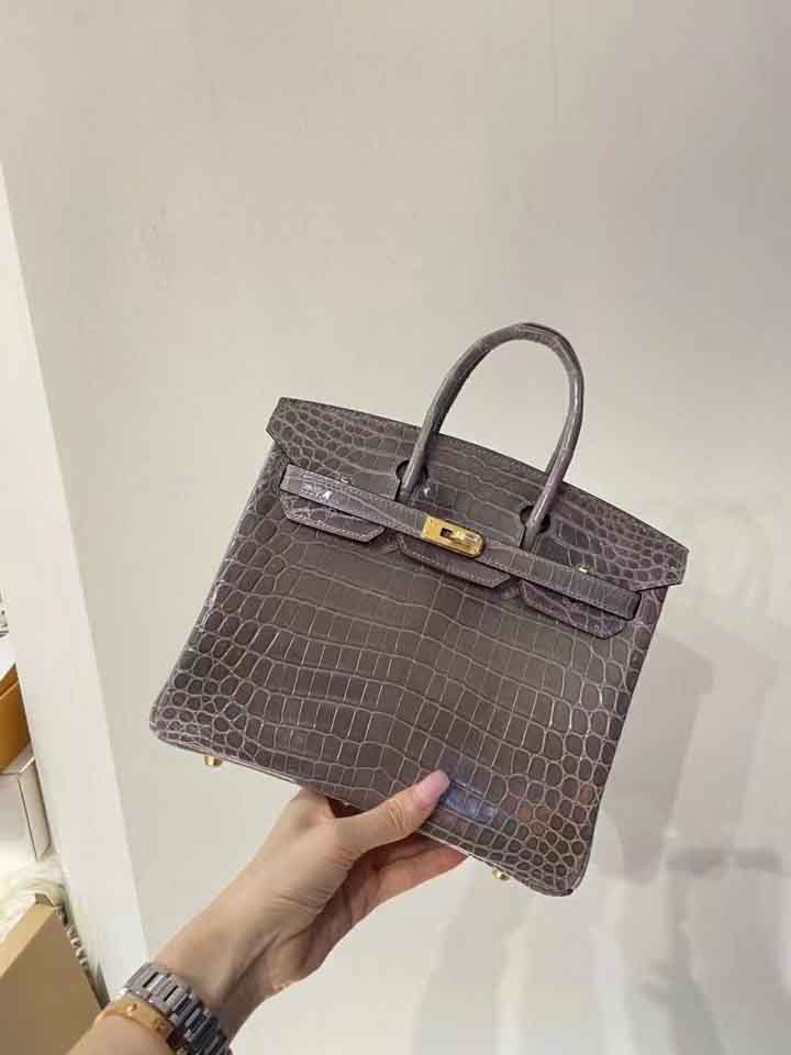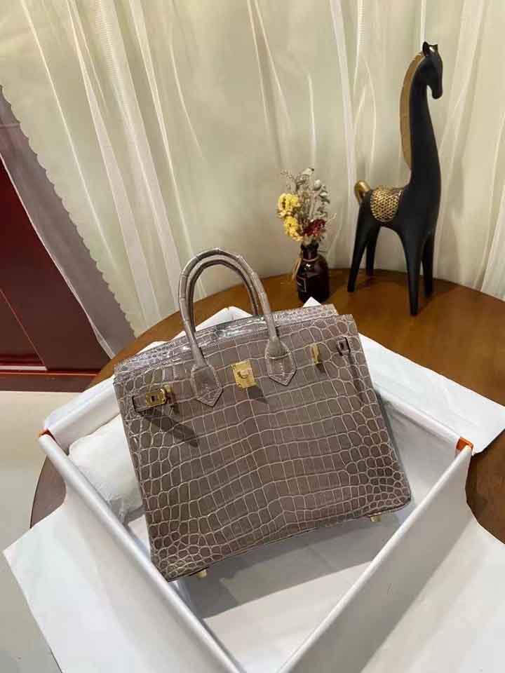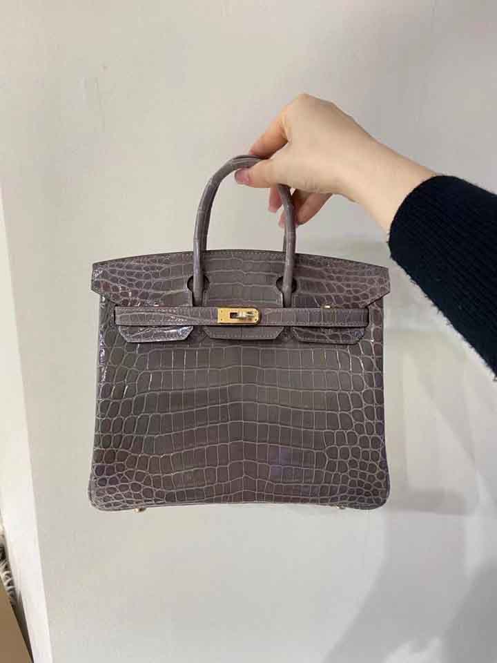 极品!birkin25 进口亮面鳄鱼皮 大象灰有皮 定制