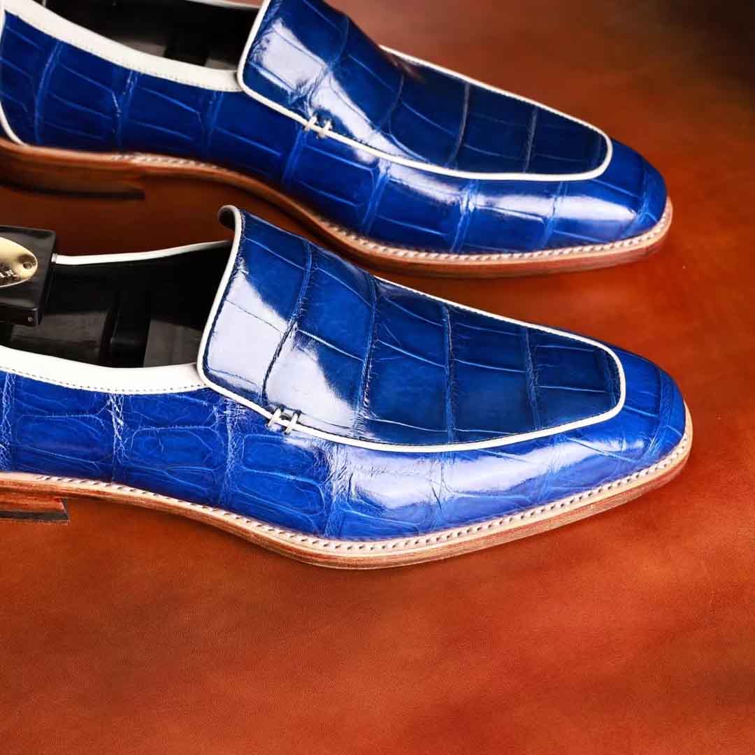专业定制高档商务男士鳄鱼皮鞋!适用于普通皮革原料产生亮光效果。鳄鱼皮打磨在技术上非常小心!