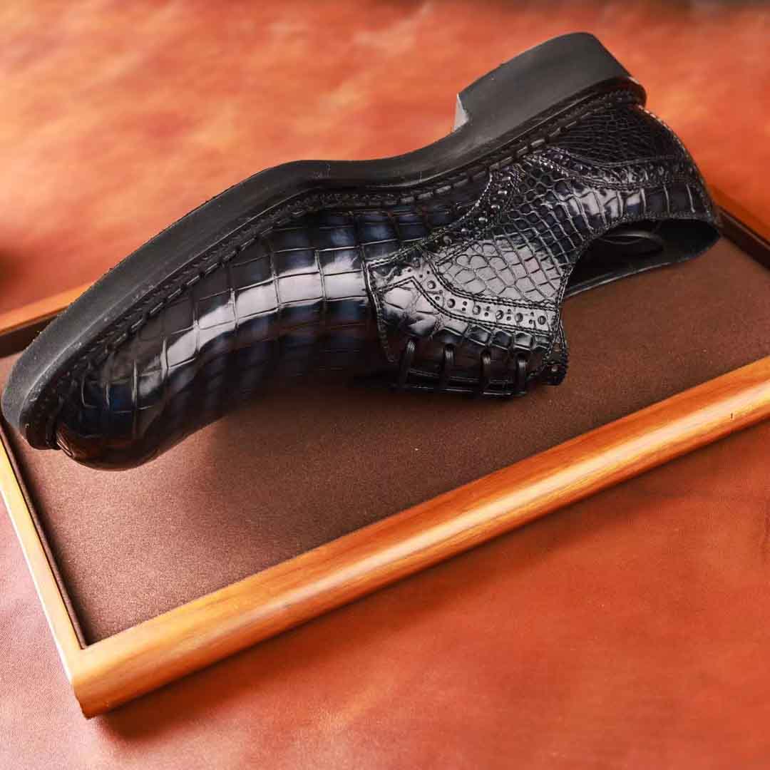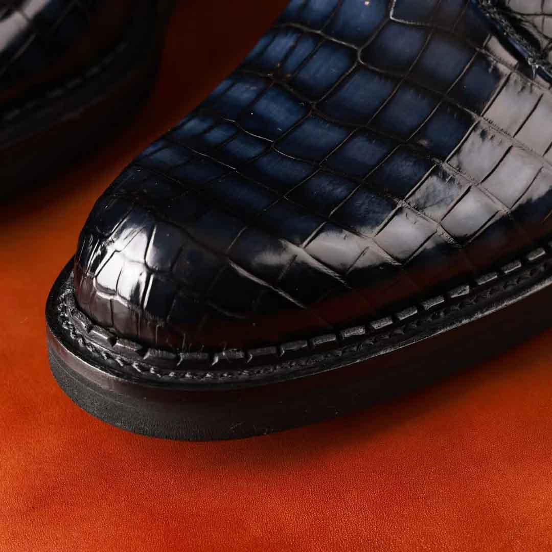 定做一双鳄鱼皮鞋,的价值那么高,所以好好的保护定做皮鞋也是非常重要的。鳄鱼皮鞋并不容易脏,只需软布擦就好了。千万不要用鞋油,只能用专业皮革护理剂轻轻擦拭,其中以含羊毛脂和棕榈树汁为最好,能够提供更高的保护。大家都知道皮鞋最怕风吹日晒,就算是淋雨也只能用软干布擦拭,而不是电吹风吹干,还有擦拭时需要顺着鳞片方向去擦。如果是长期放置的话一定要放鞋撑,以防鞋子变形。