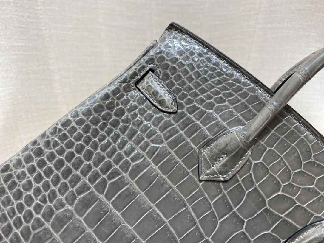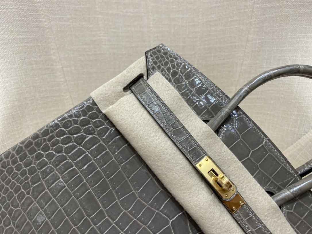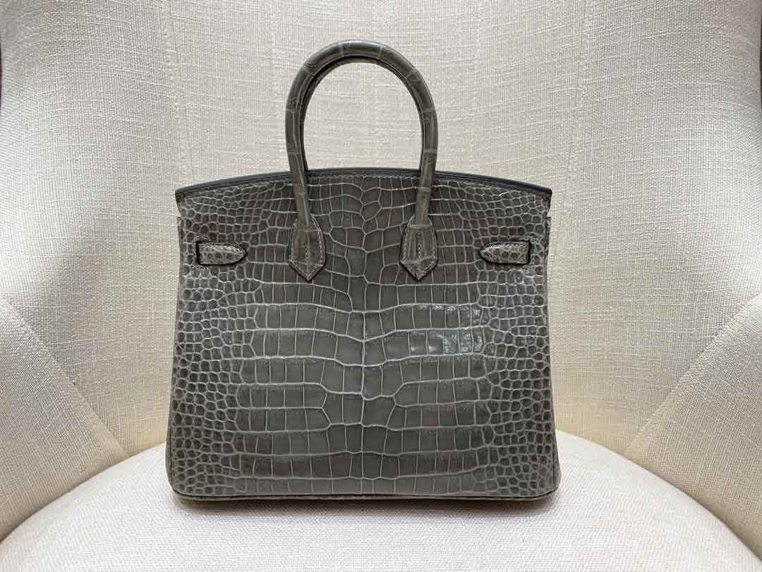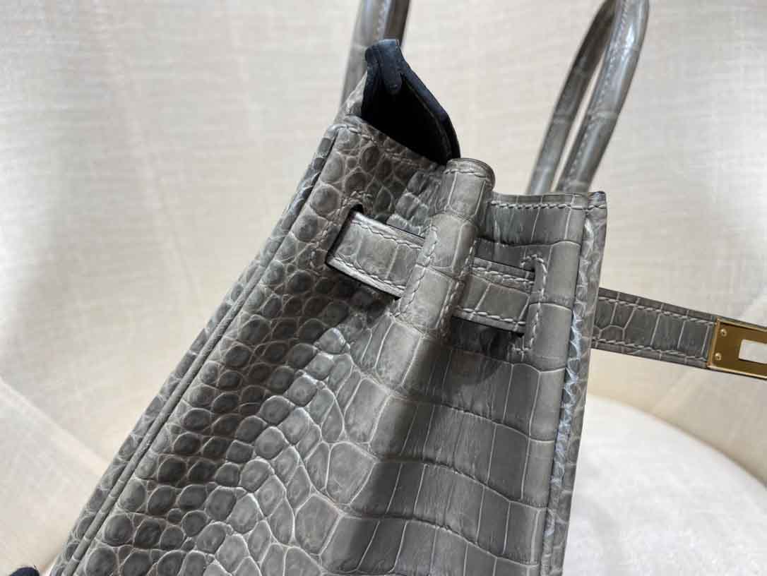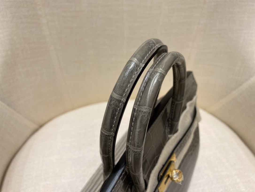 birkin25cm 金扣 野生倒V湾鳄 斑鸠灰 顶级纯手工