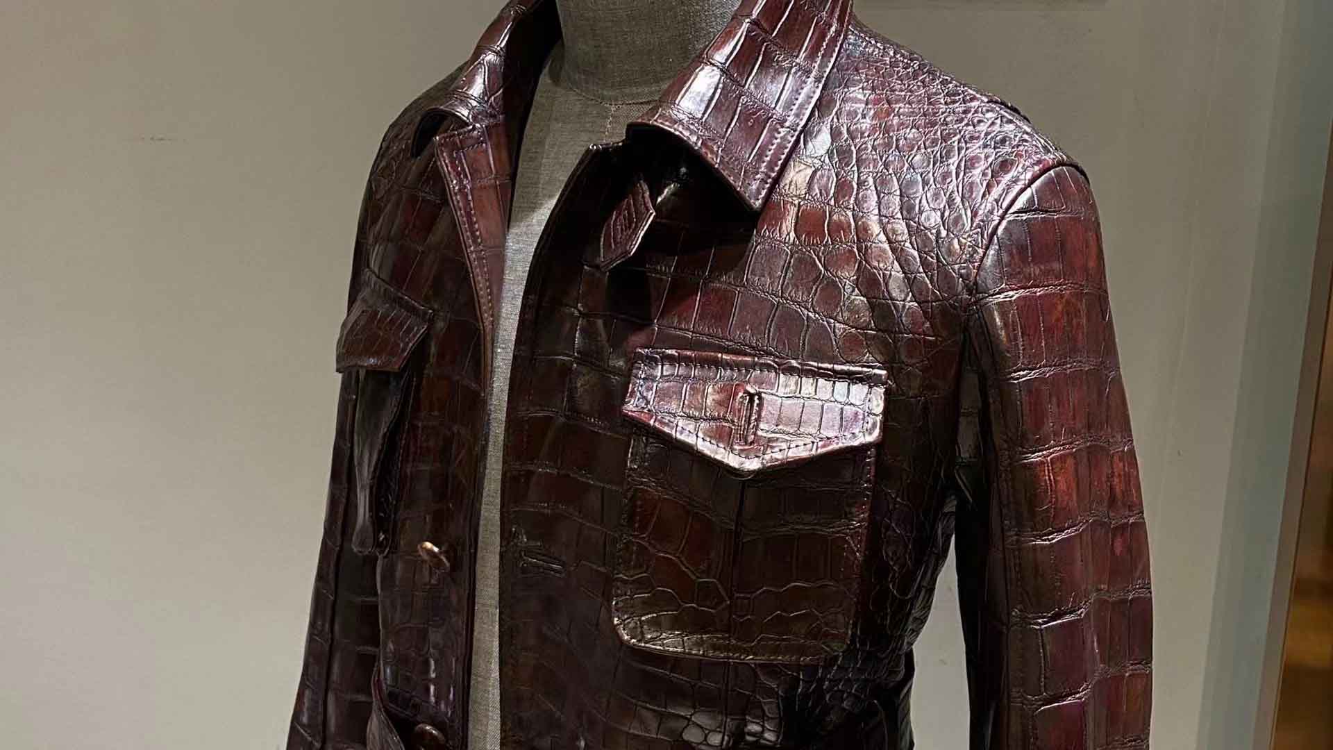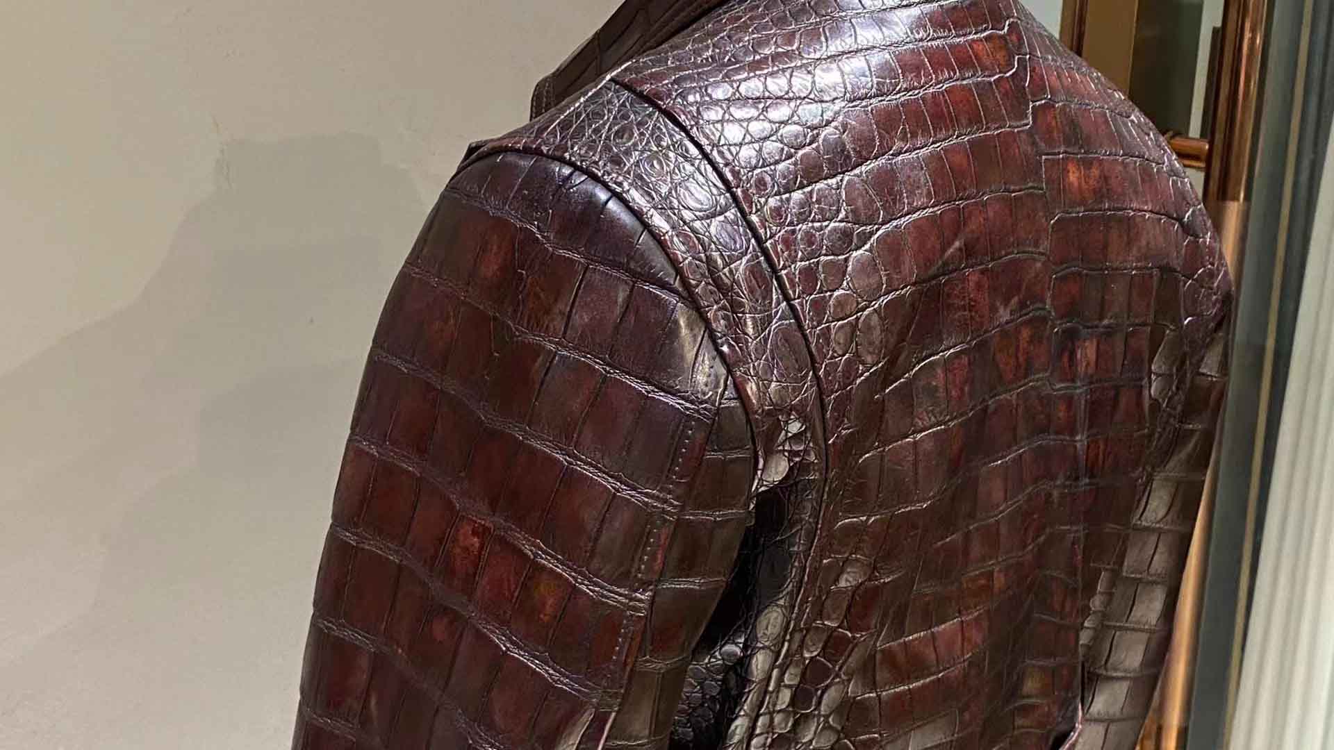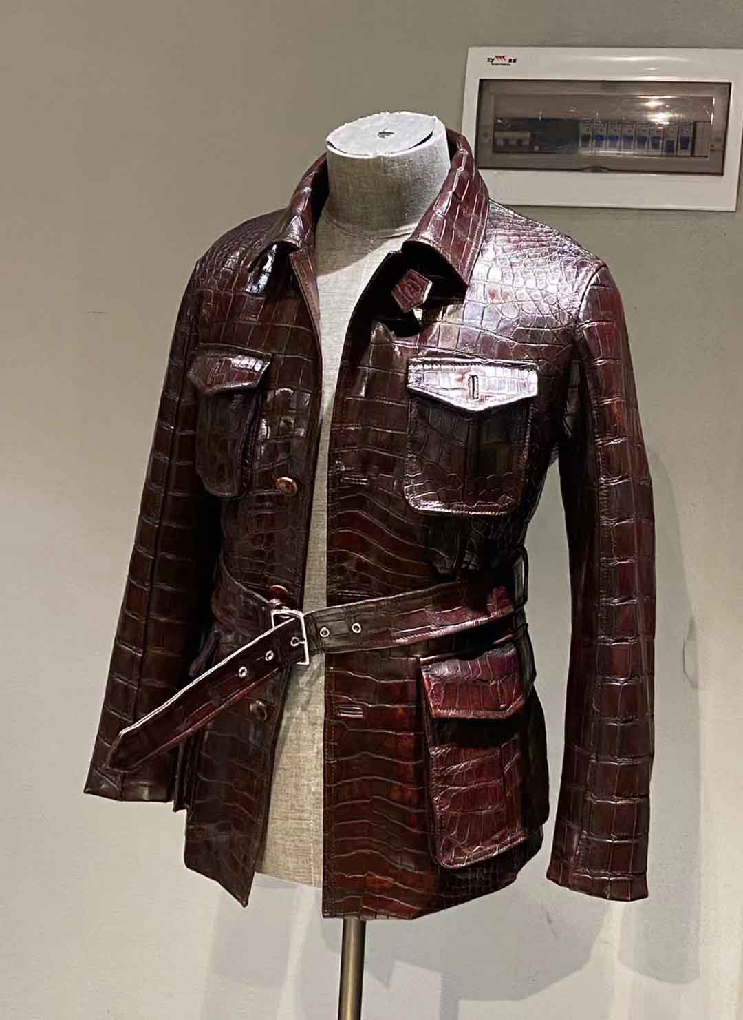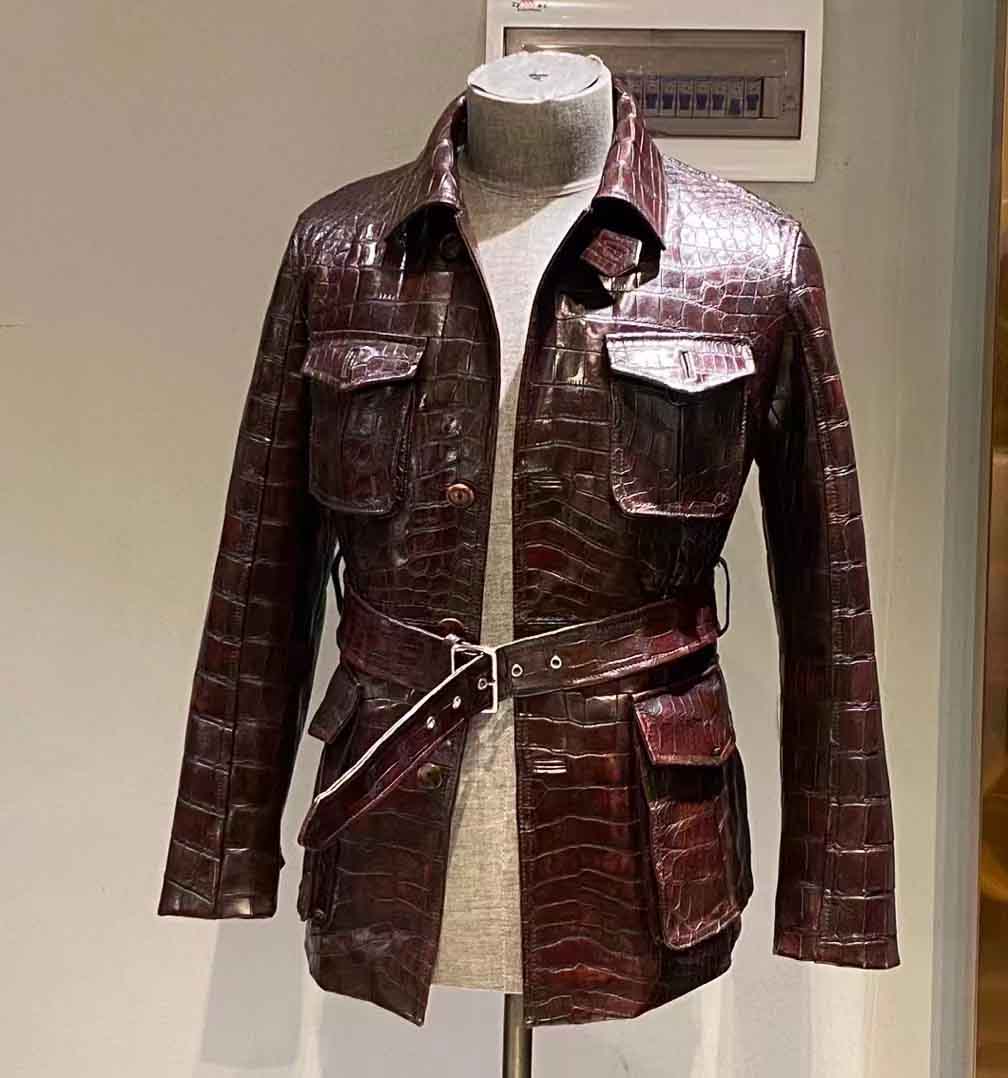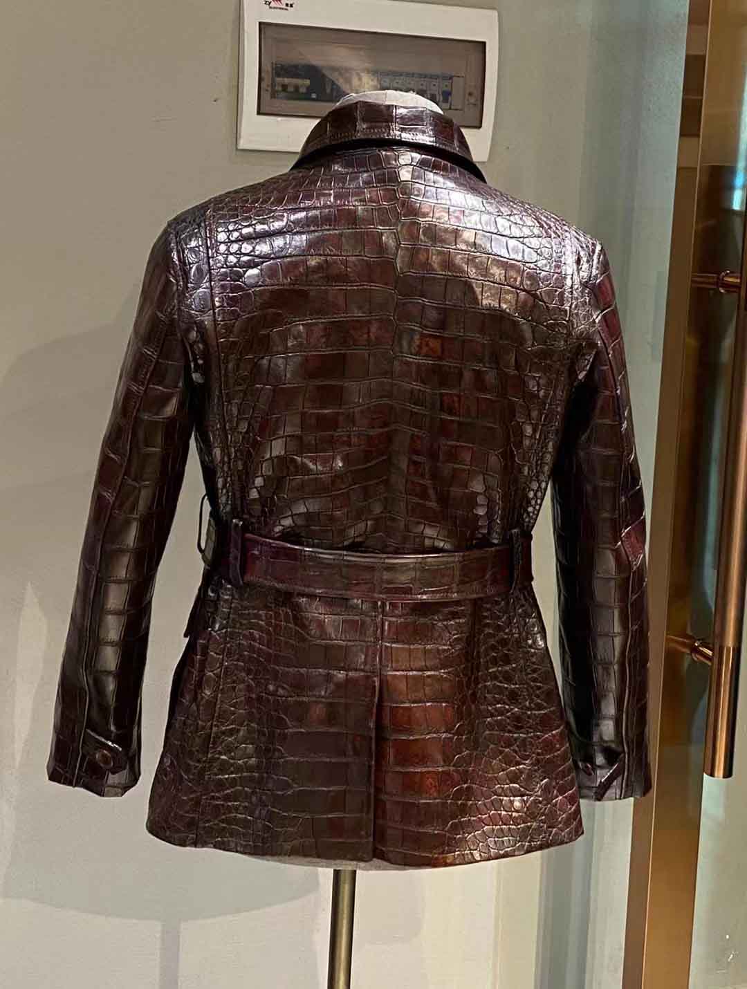 高端鳄鱼皮女士休闲夹克,稀有皮女士风衣订做工厂