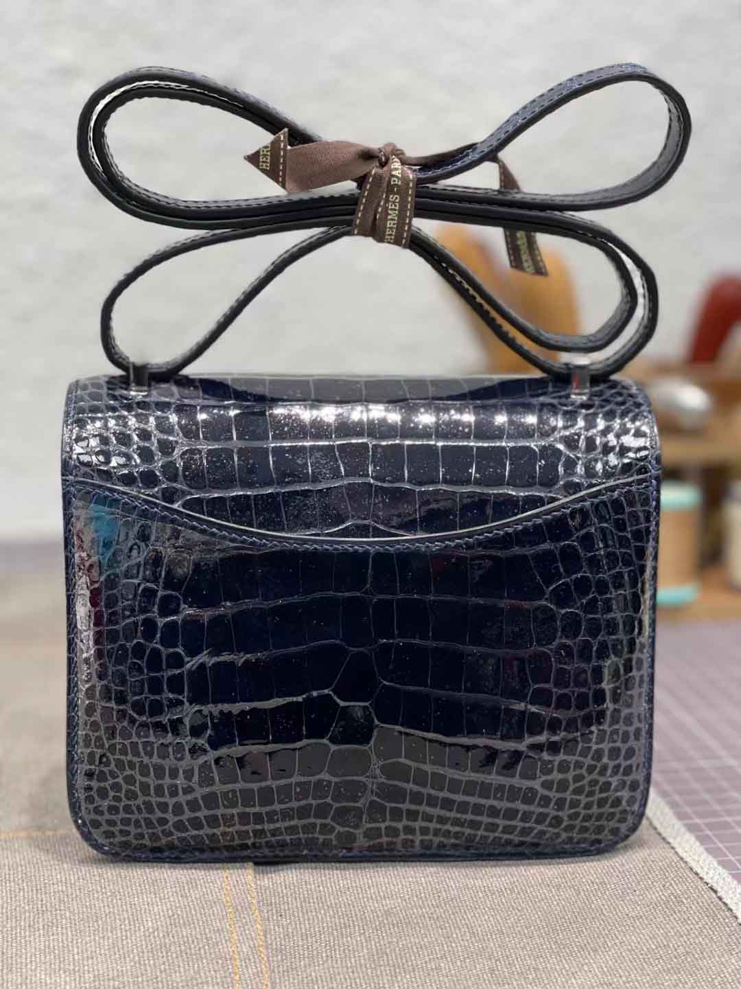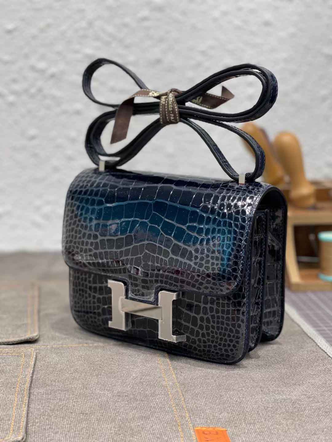 18cm午夜蓝鳄鱼皮女士私人订制,constance亮面鳄鱼皮女士私人订做工作室