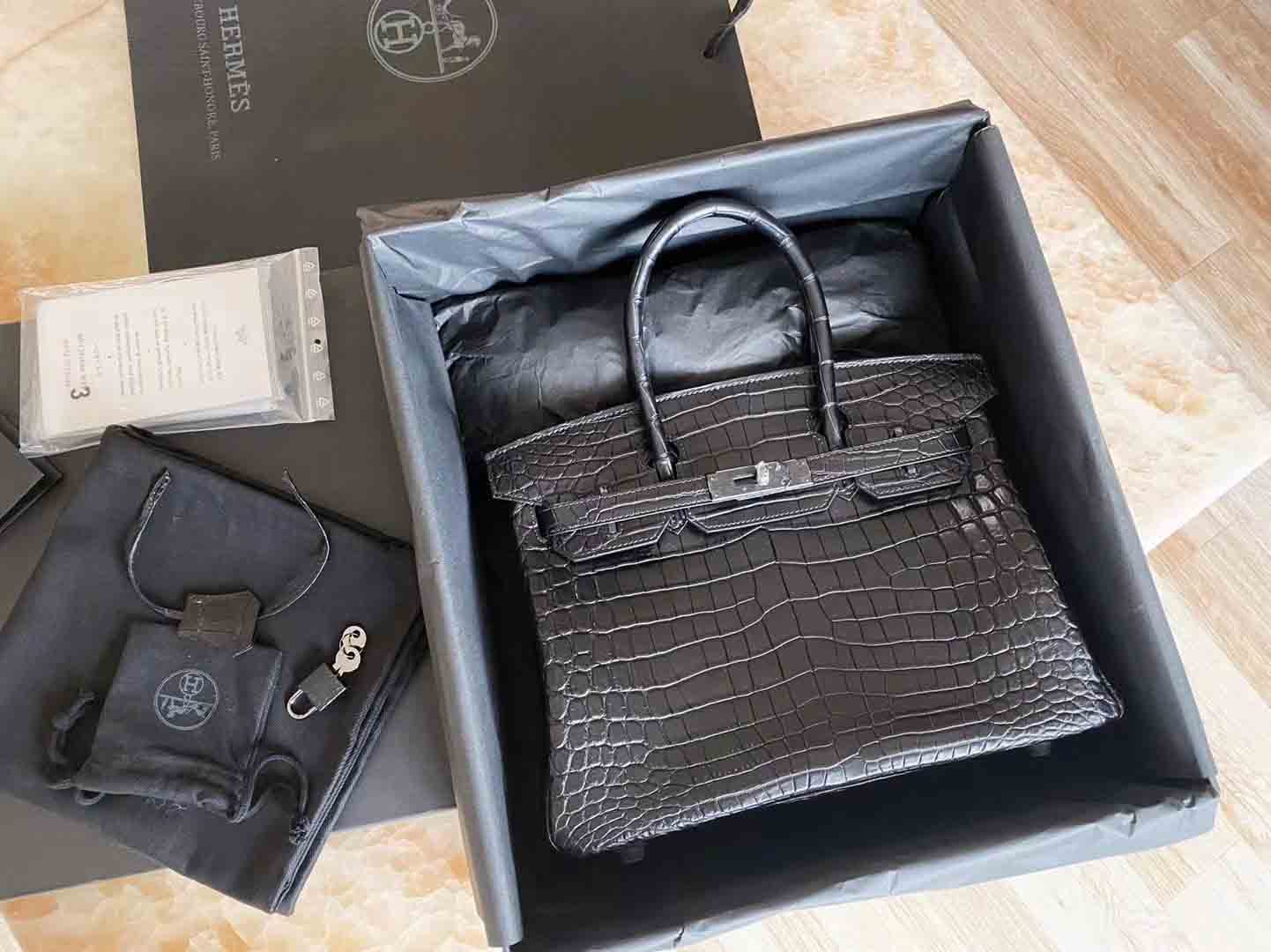 必不可少的经典款 亮面尼罗鳄铂金包。现货 黑色 crocodile 鳄鱼尼罗鳄 ~两点 亚亮面 黑金字 老工匠顶级工艺~纯手缝蜡线缝制