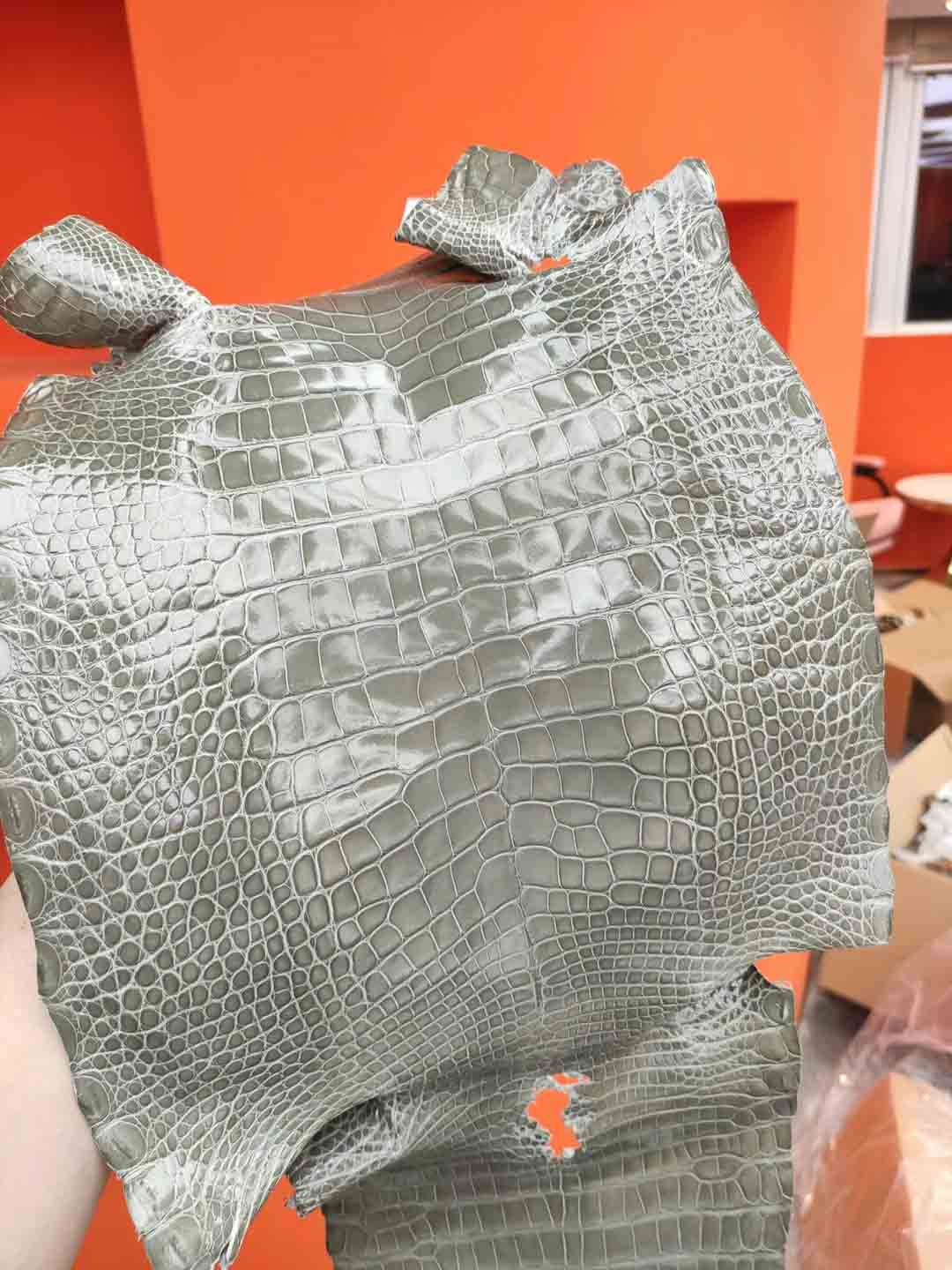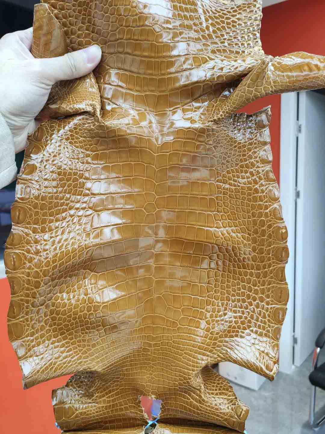 高光美洲鳄鱼皮新到,可以来店里看皮。兴隆美洲鳄皮代理。