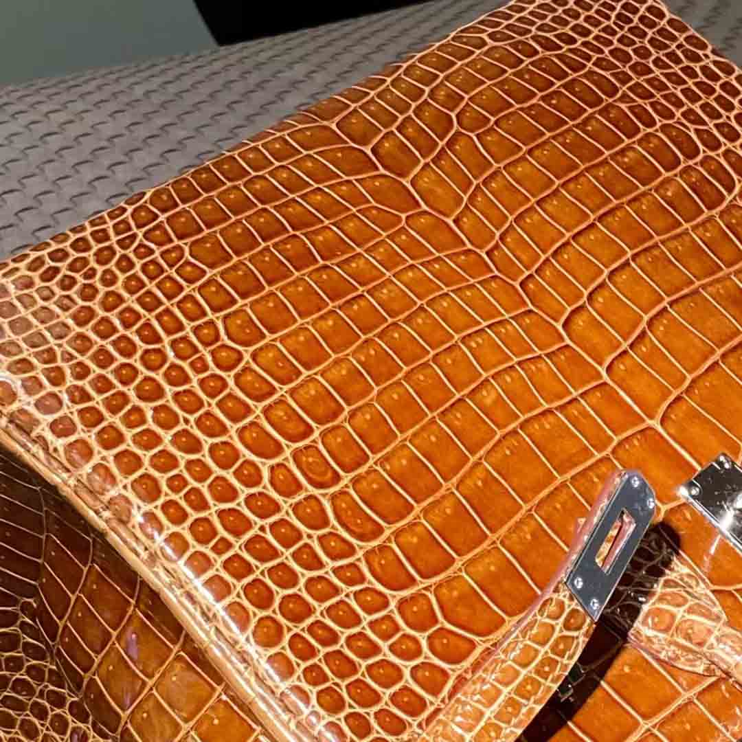 蜜棕糖色高光湾鳄订制厂家,可以定制自己喜欢颜色的湾鳄皮具