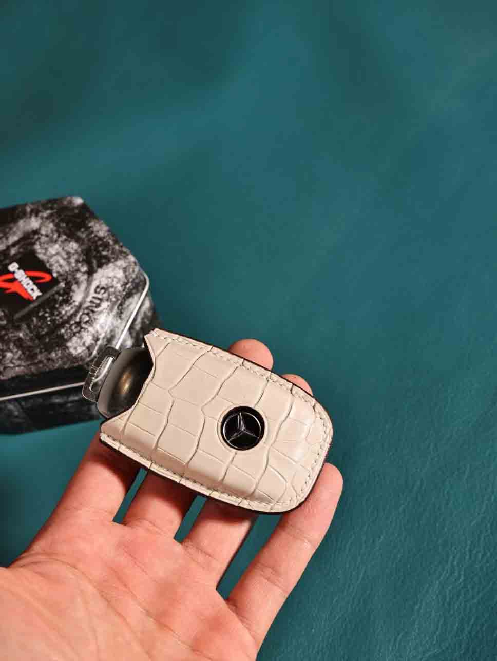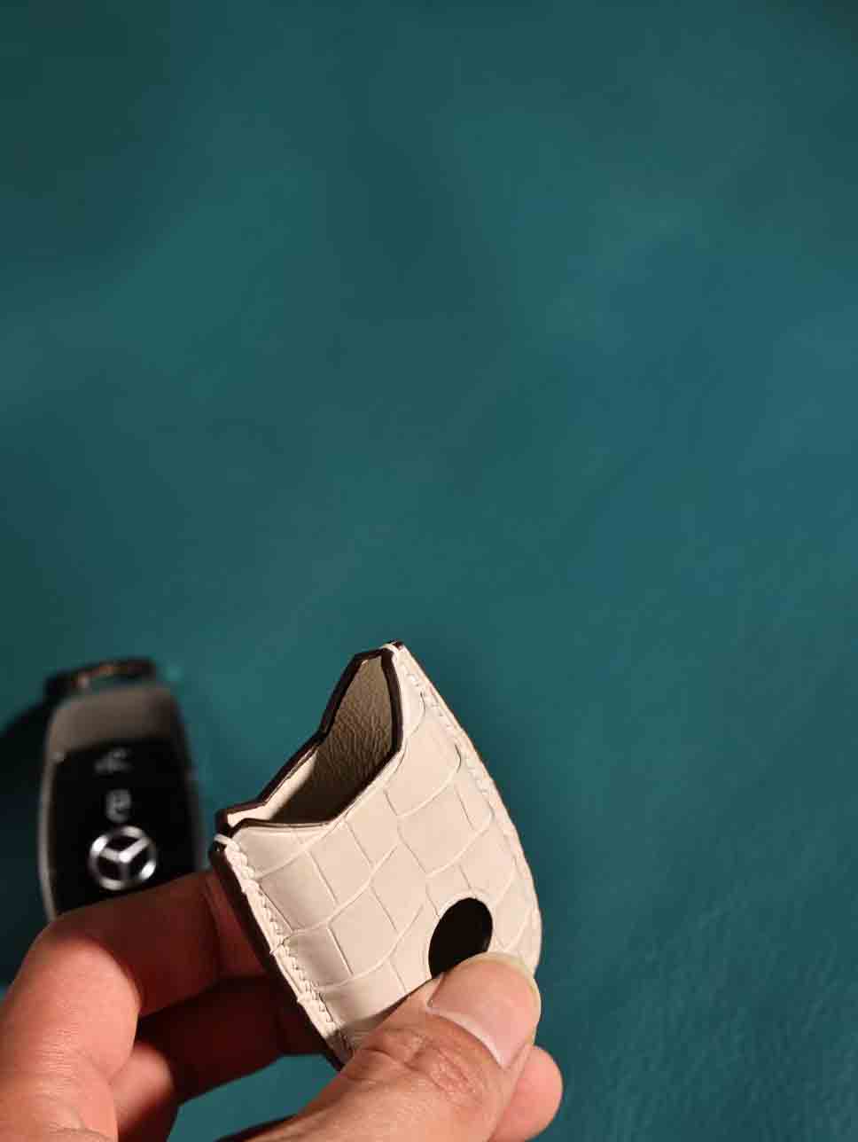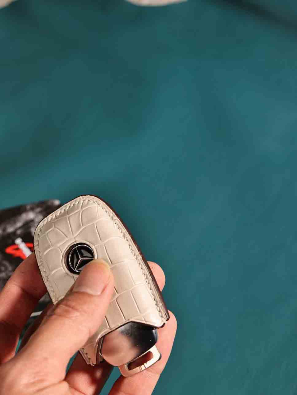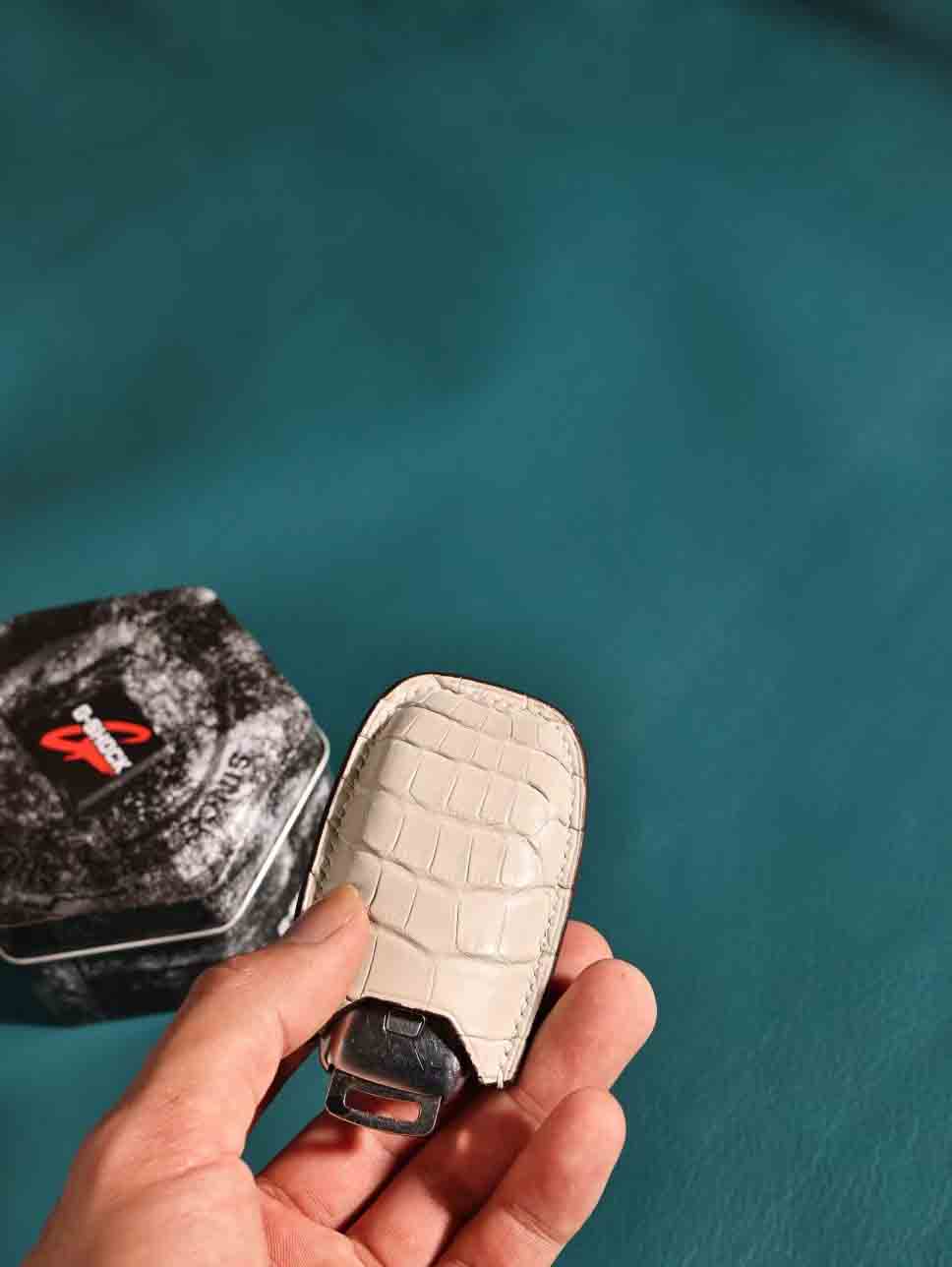 新款奔驰,奶油白美洲鳄,鳄鱼皮车钥匙包订做厂家。