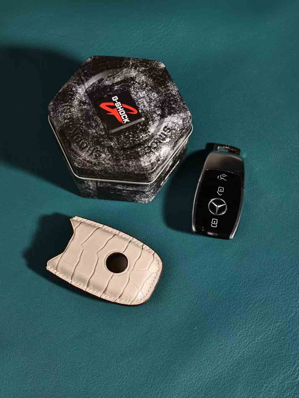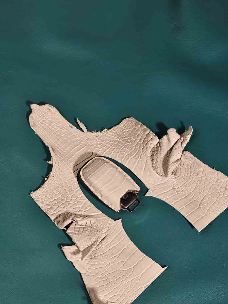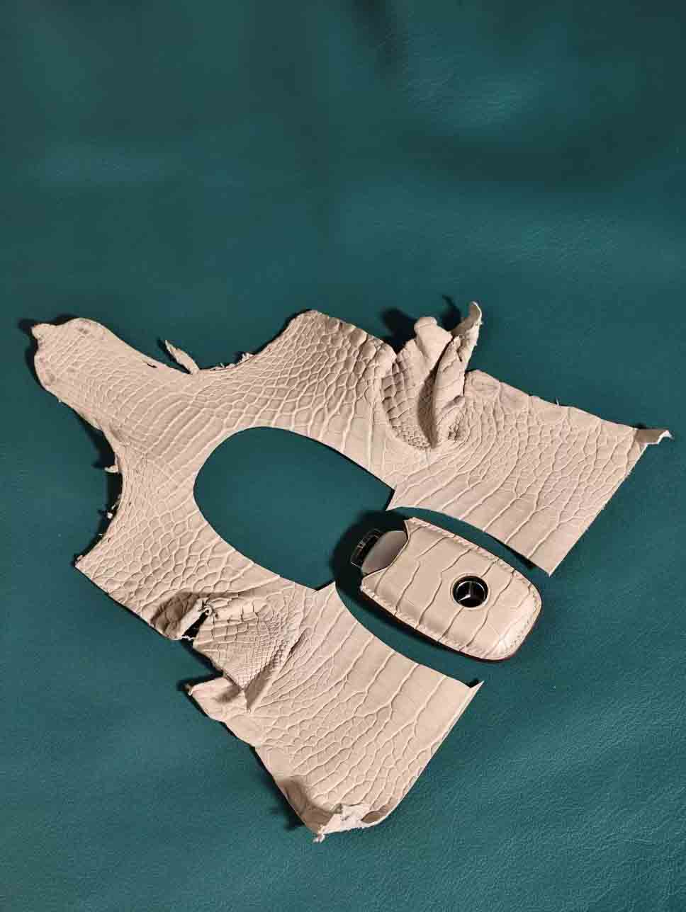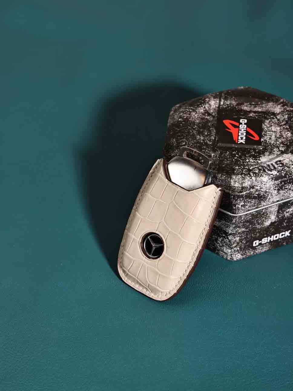新款奔驰,奶油白美洲鳄,鳄鱼皮车钥匙包订做厂家。