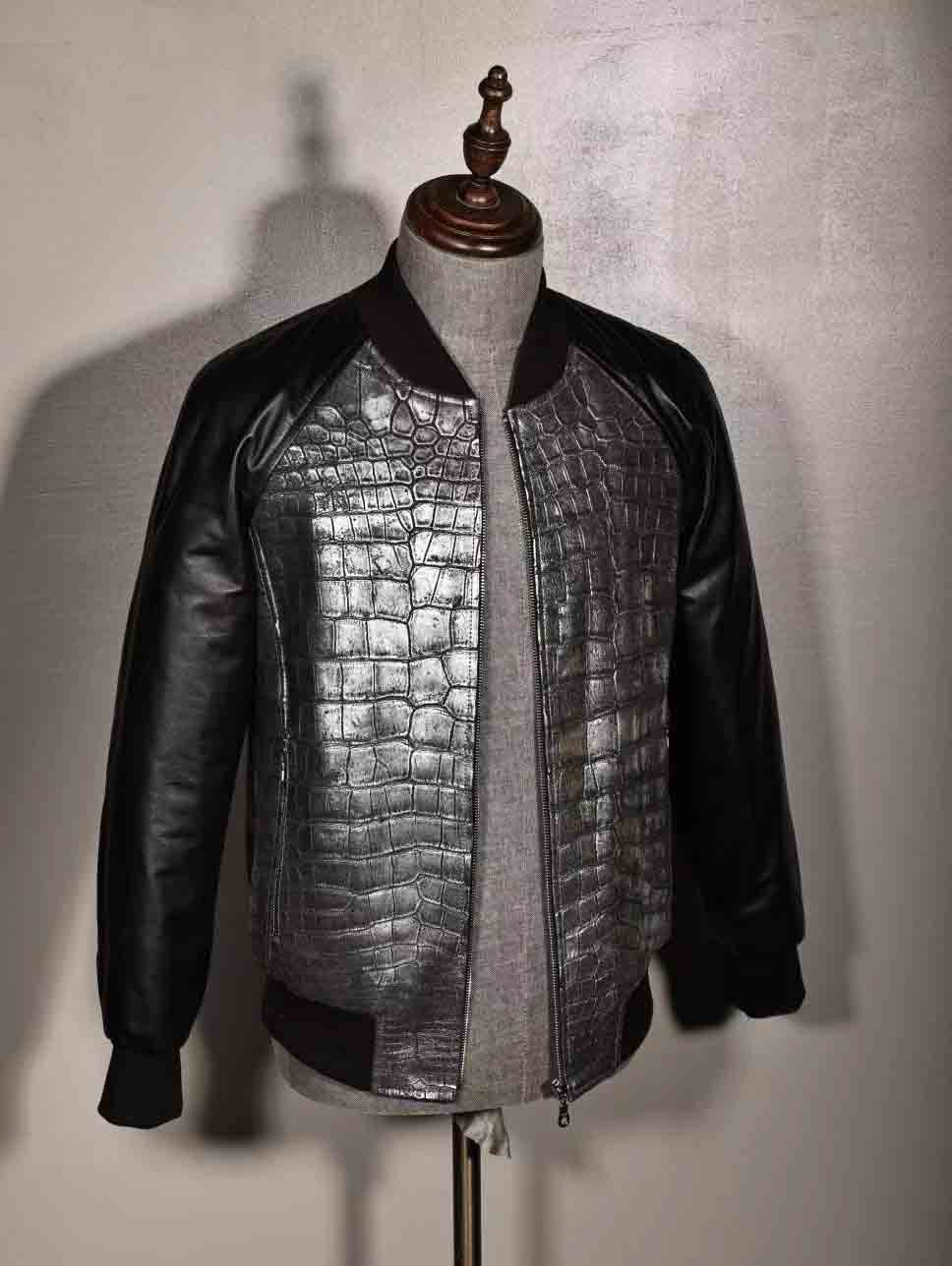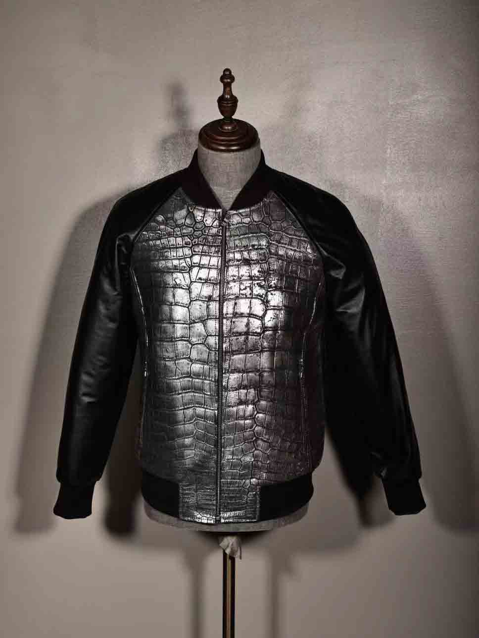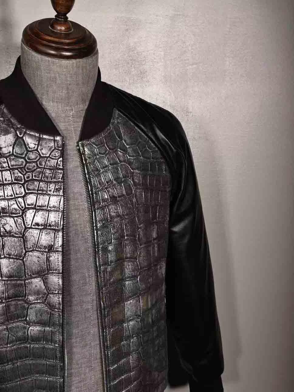 亮银色拼皮棒球领夹克,52码现货,拼羊皮版本会更舒服