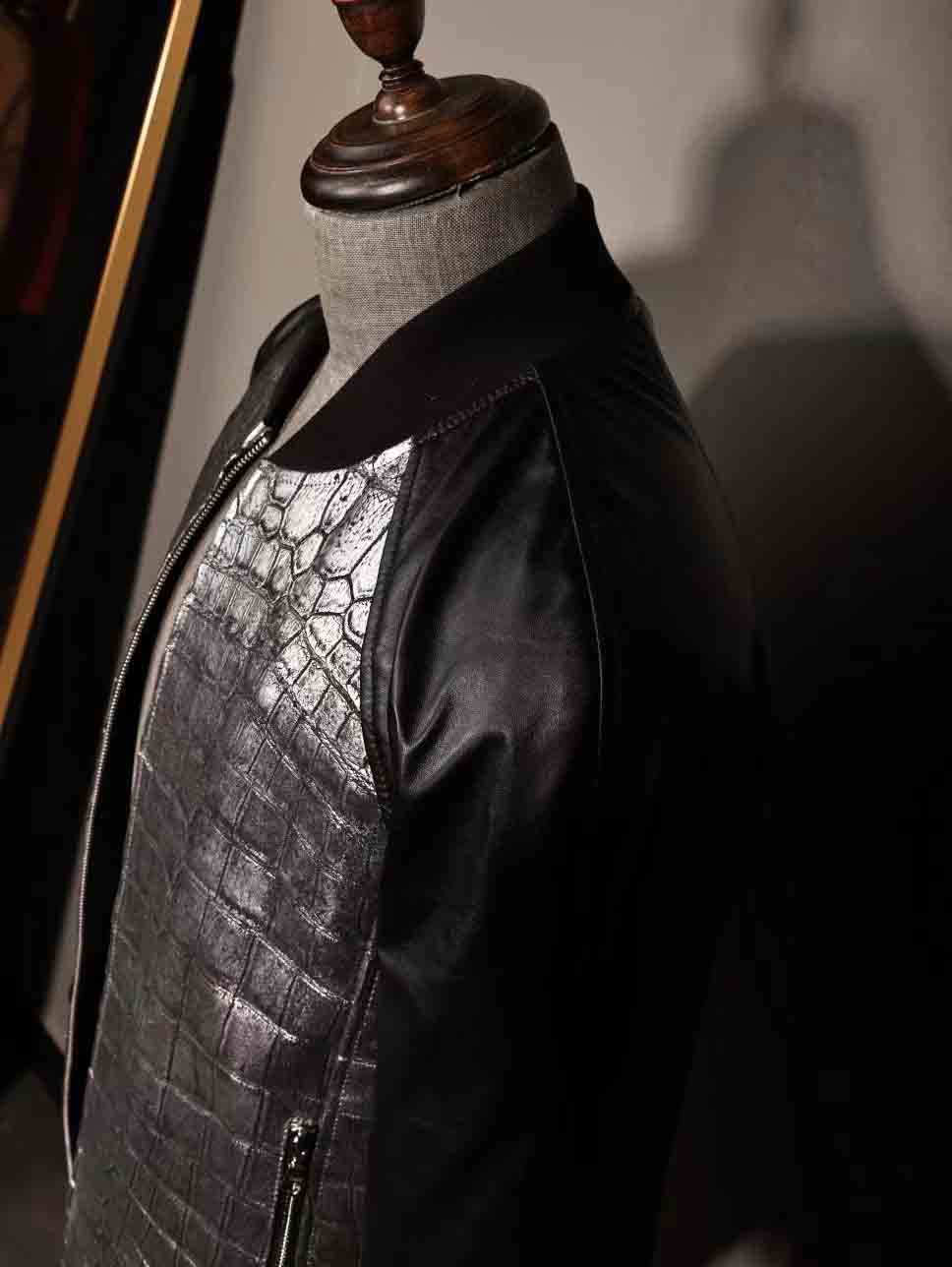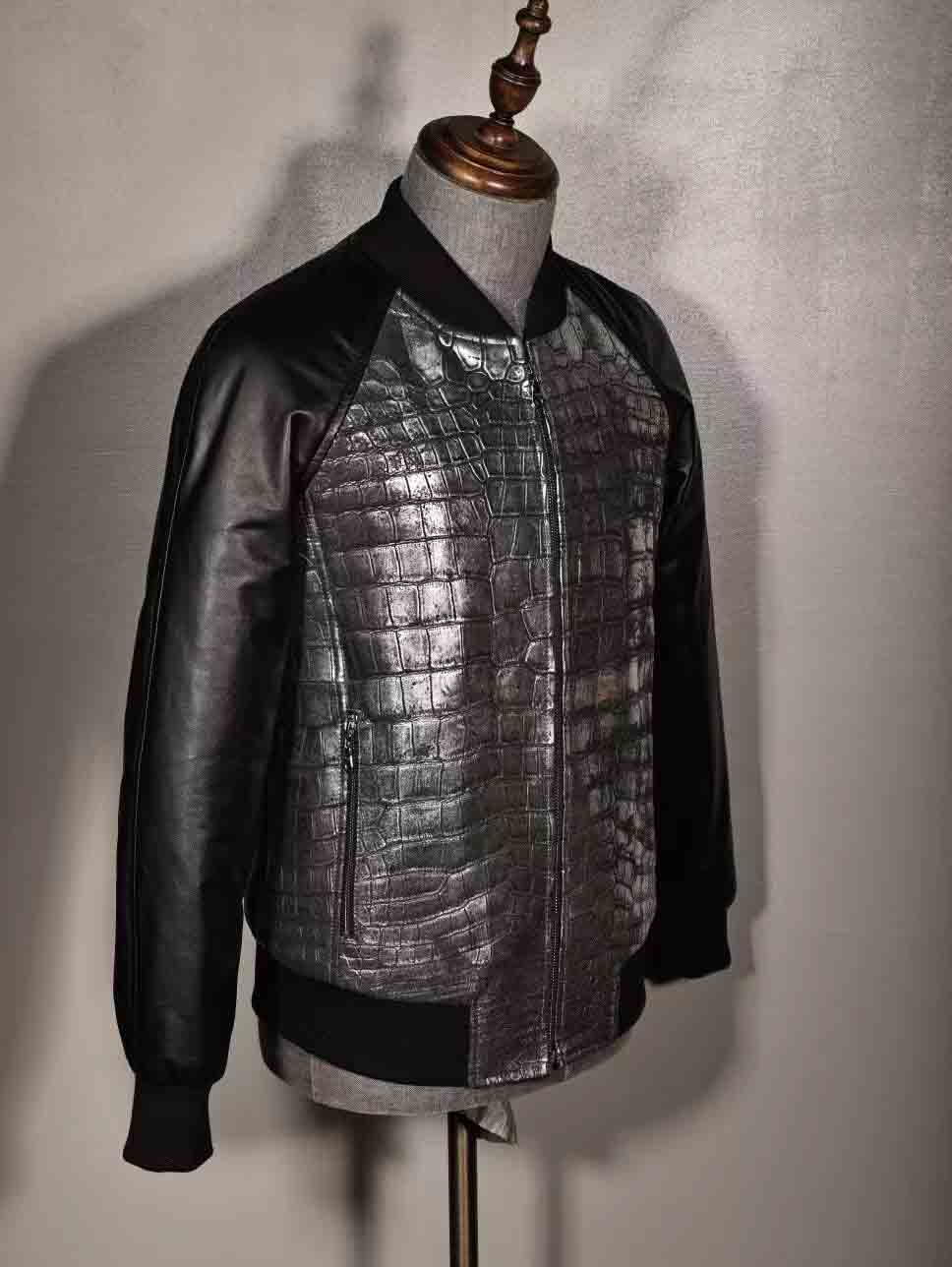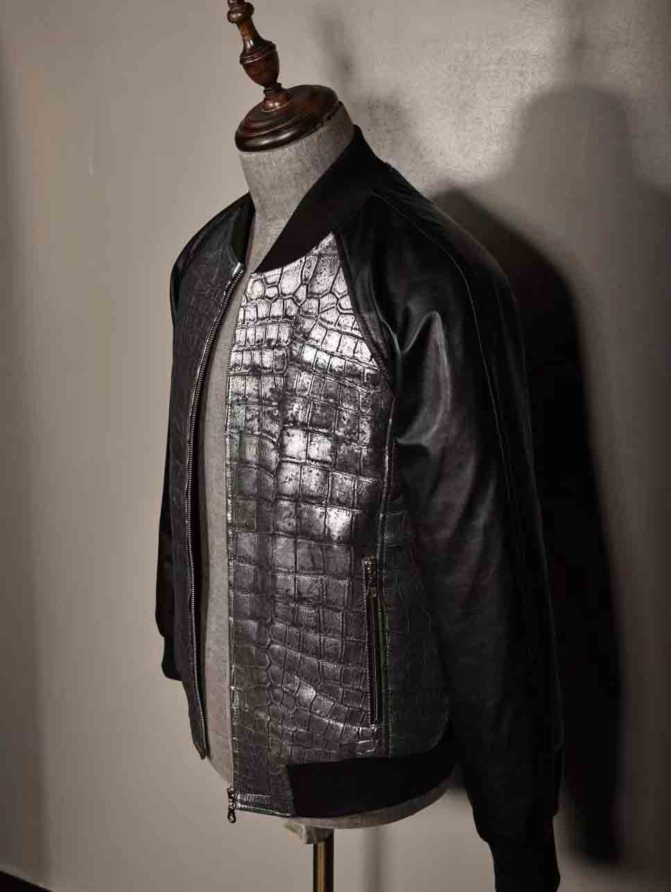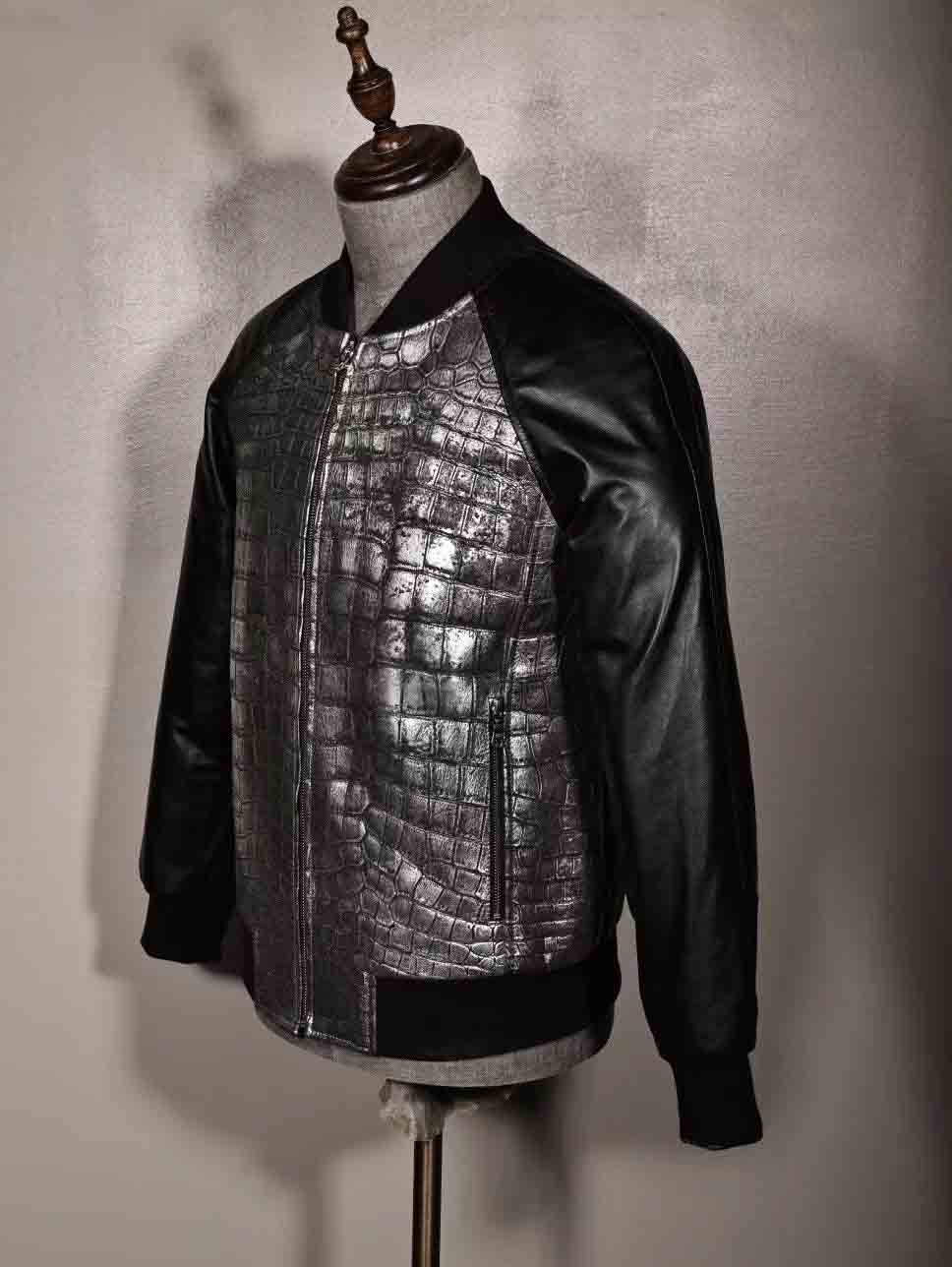 亮银色拼皮棒球领夹克,52码现货,拼羊皮版本会更舒服