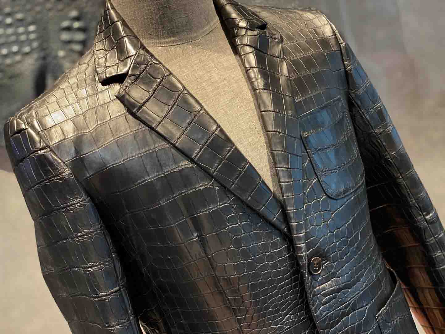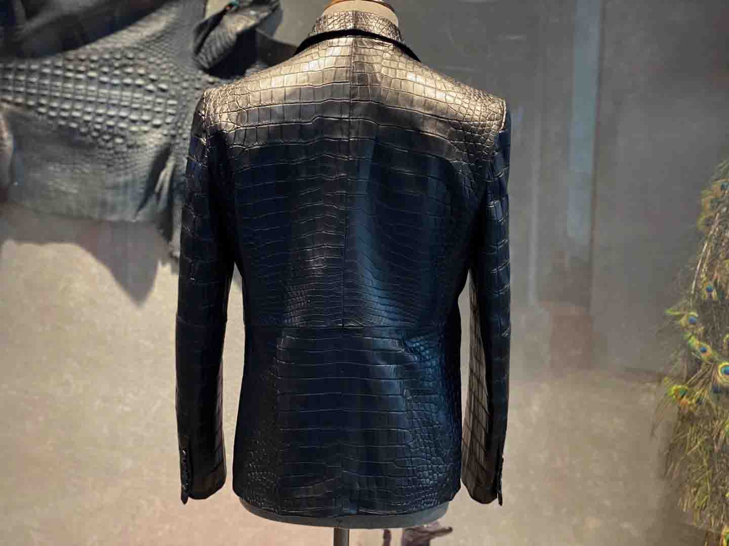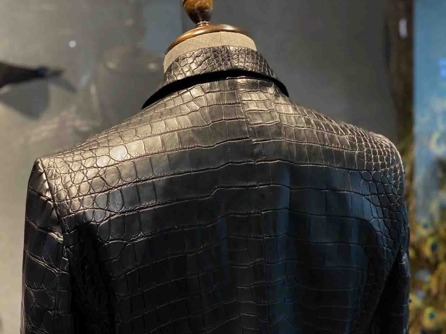 鳄鱼皮#休闲西服 2粒扣 现货50码 修身版,美洲鳄鱼皮西装衣定做联系微信 95506803