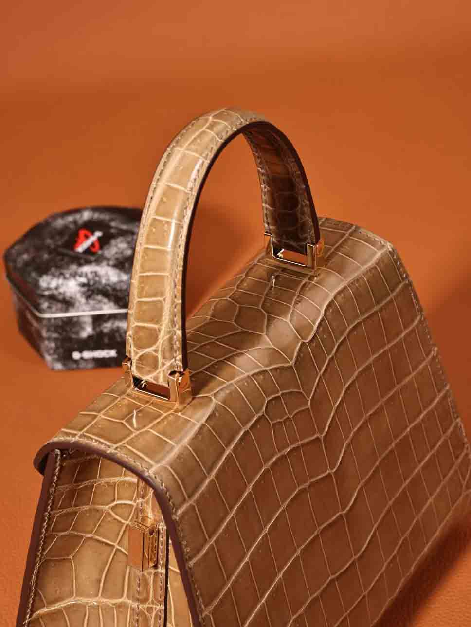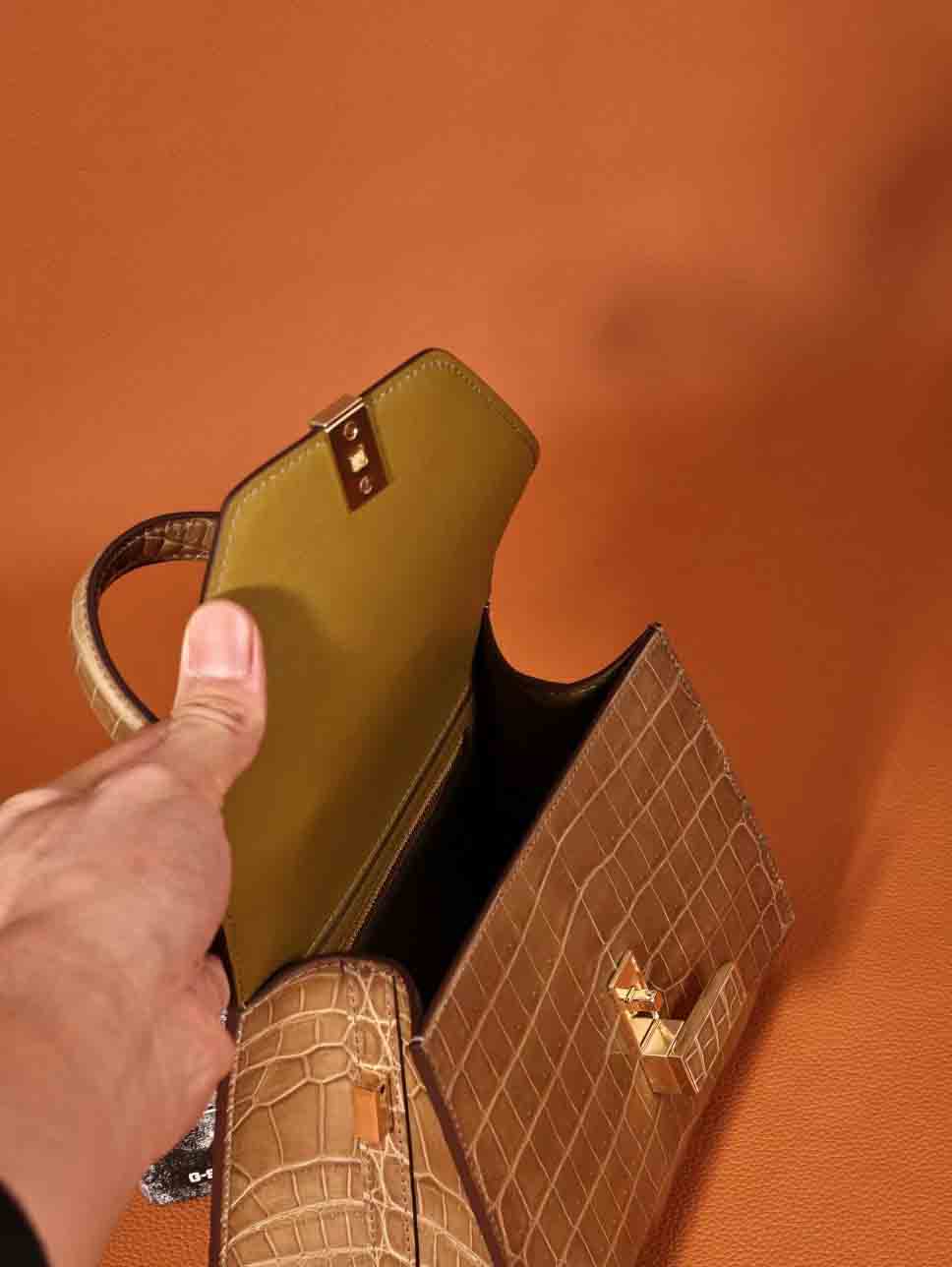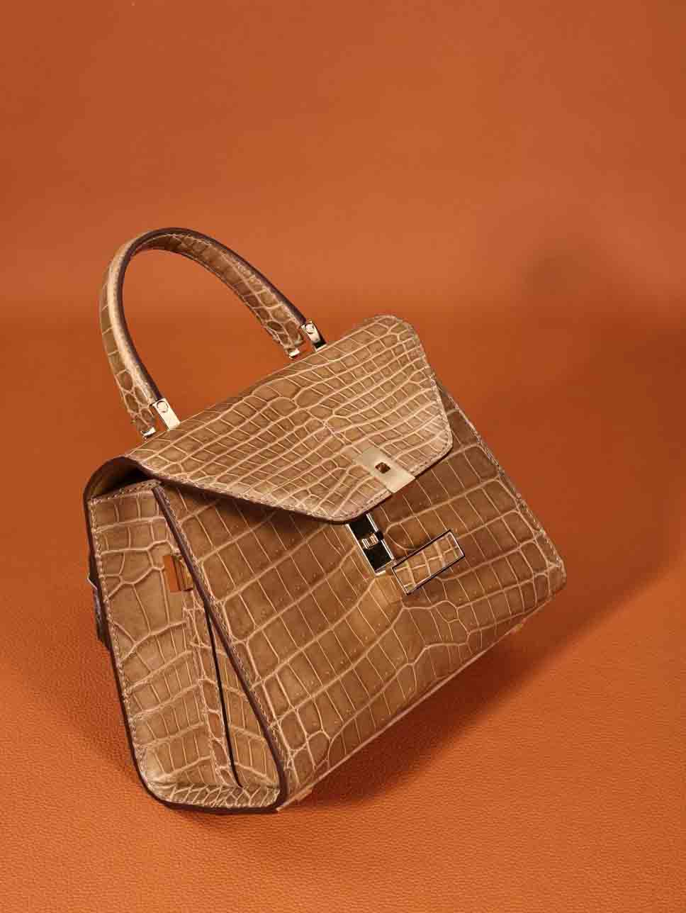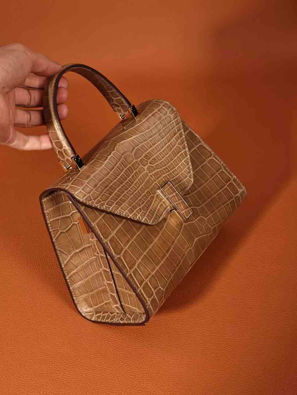 瓦莱,奶茶色尼罗鳄,工艺到位的,22*18*12,小号 #瓦莱 高光尼罗鳄奶茶色