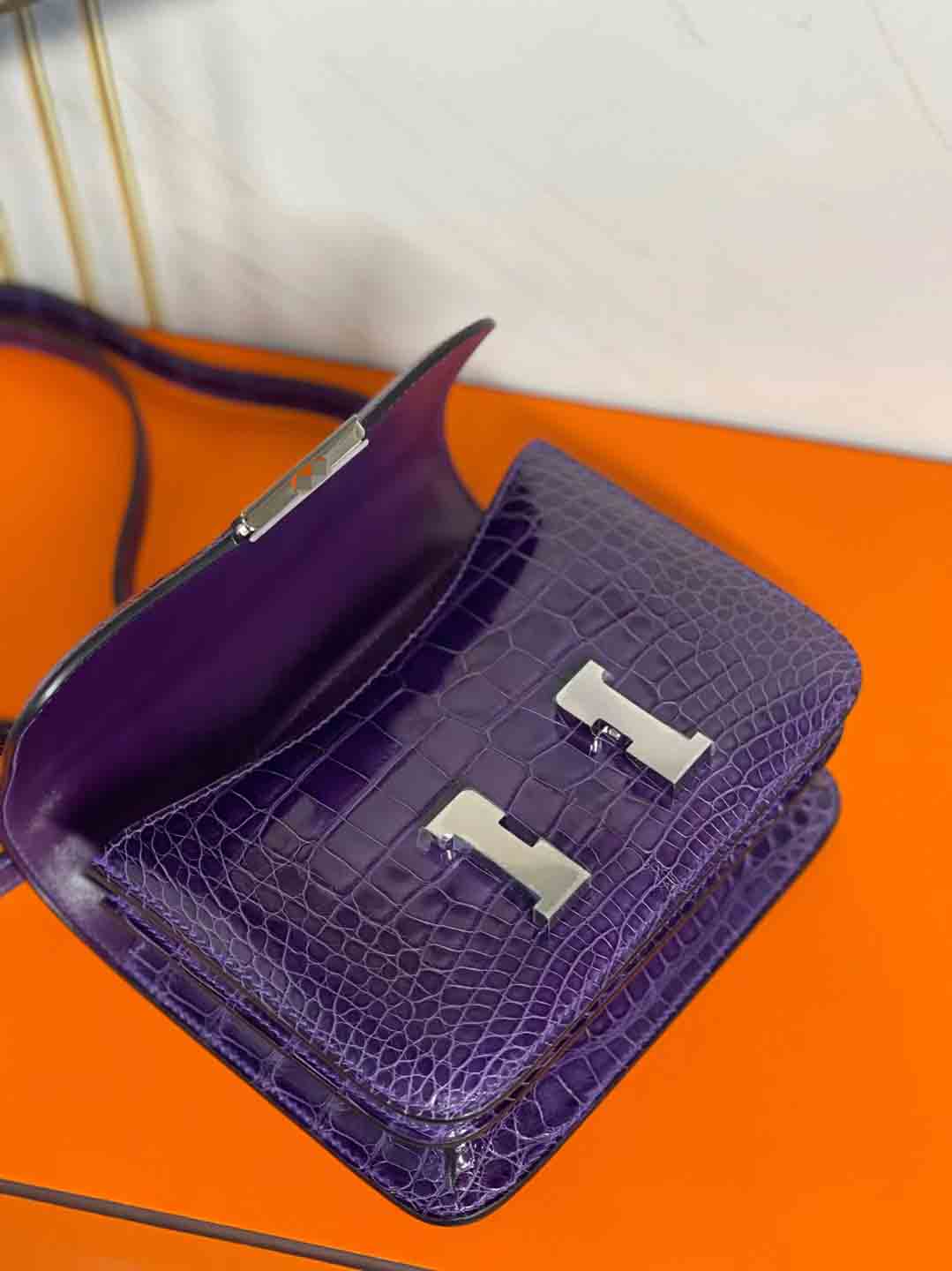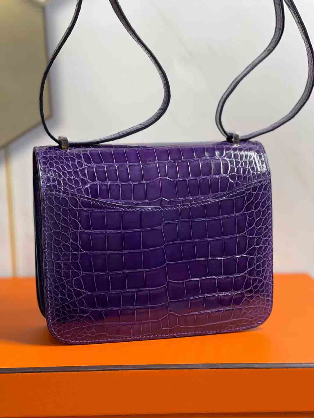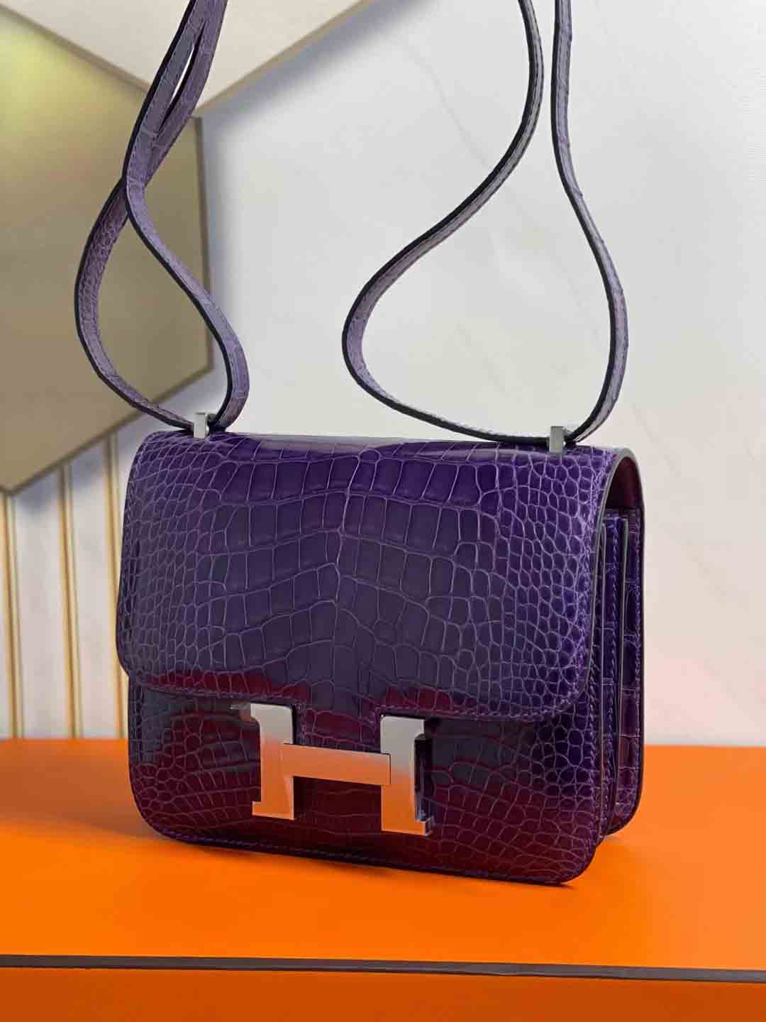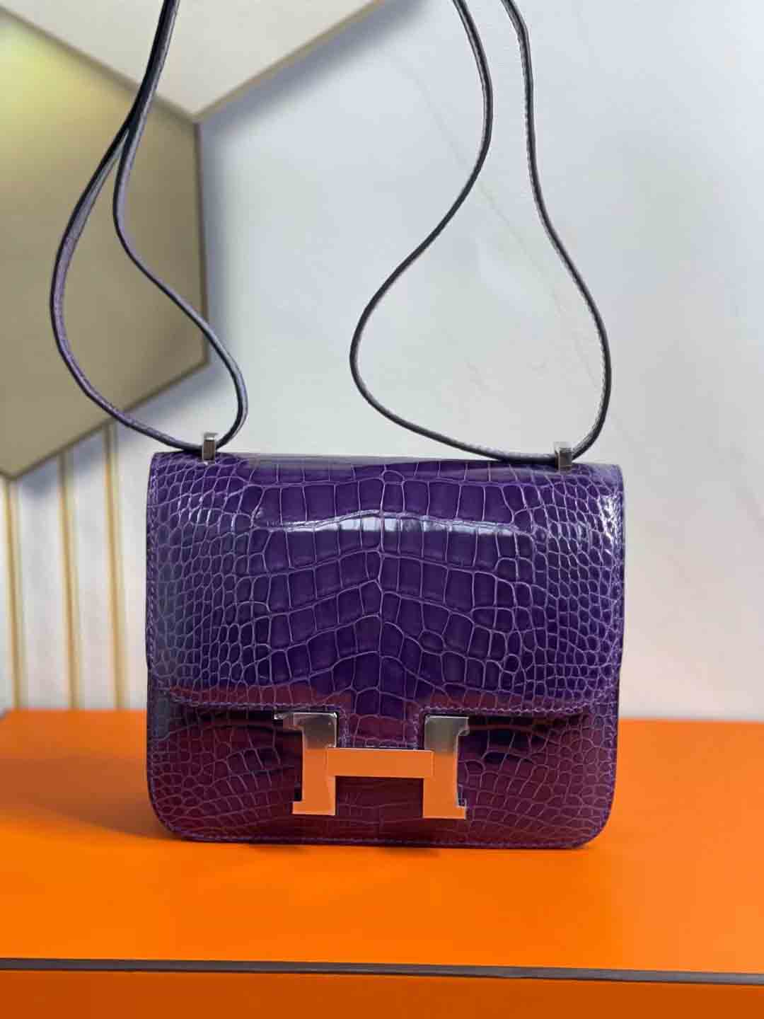 兴隆美洲鳄纹路美丽均匀,显得 constance 18cm 亮面美洲鳄鱼 葡萄紫 下单可发
