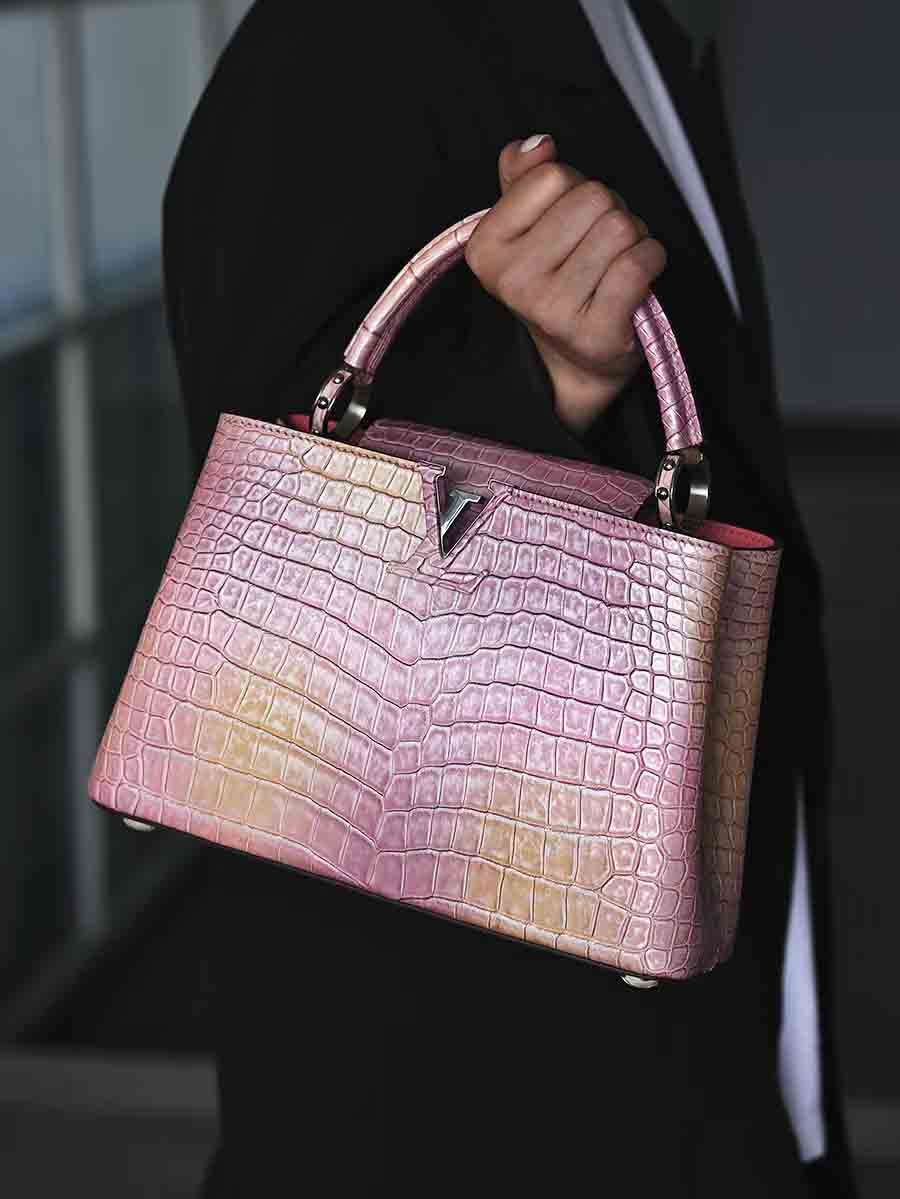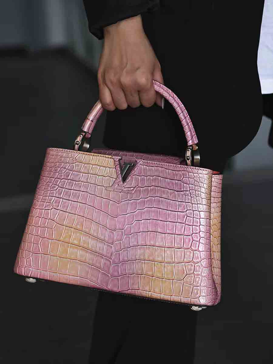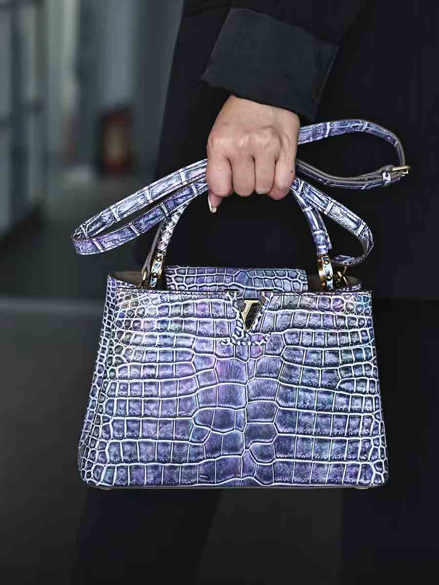 幻彩色湾鳄女手提包订做预约工厂 微信联系 95506803