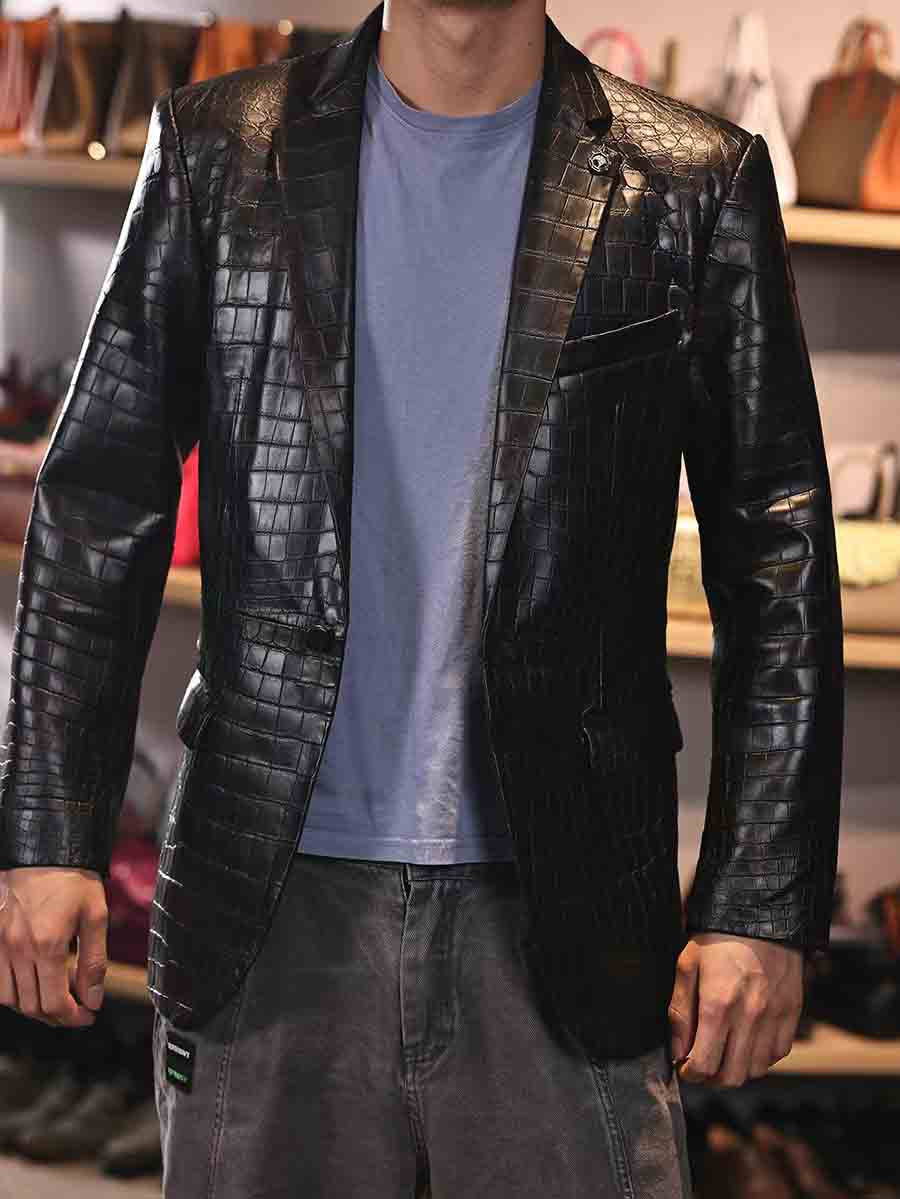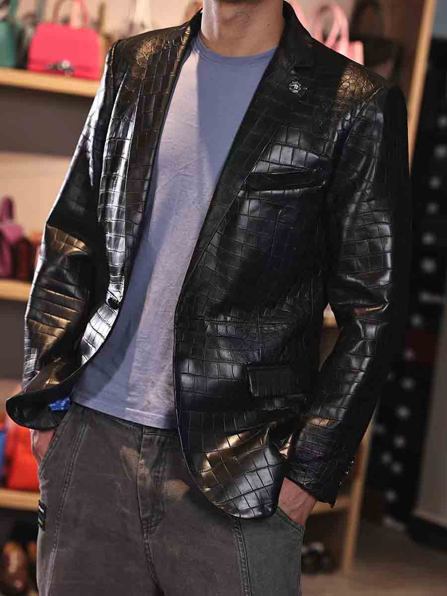 鳄鱼皮服装革西装套装订做厂家,鳄鱼皮西服预定定制联系 95506803