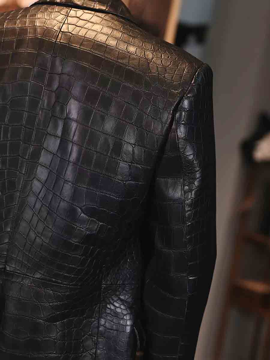 湾鳄皮风衣订做,美洲鳄机车夹克定做,尼罗鳄大衣订制工厂。