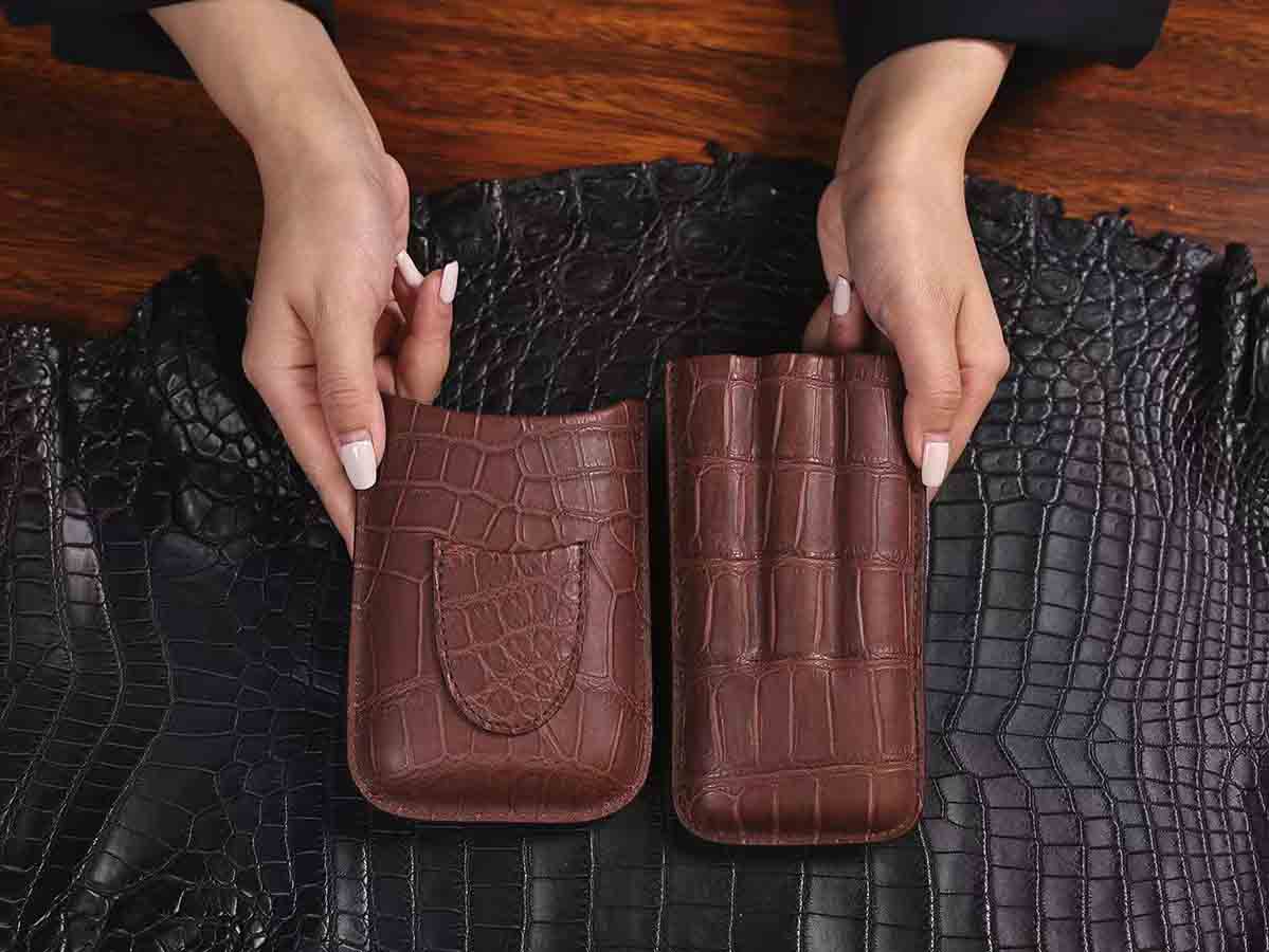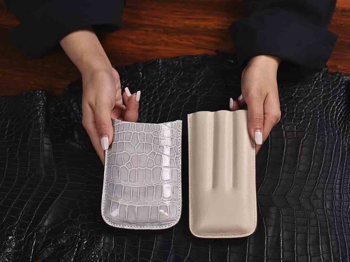 新出现货 三支装雪茄包,鳄鱼皮雪茄包设计diy定制 联系 95506803