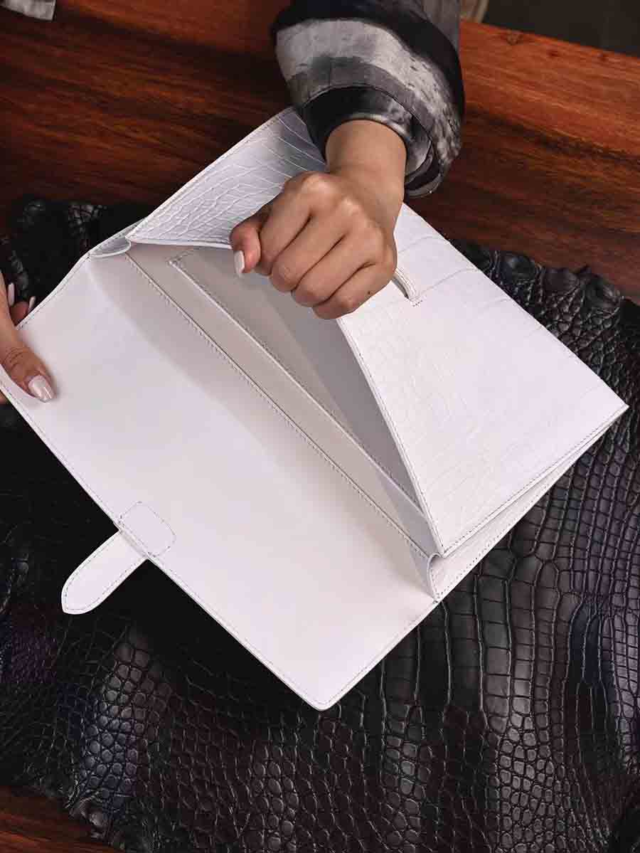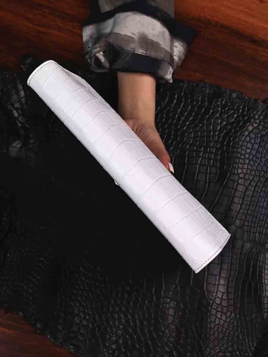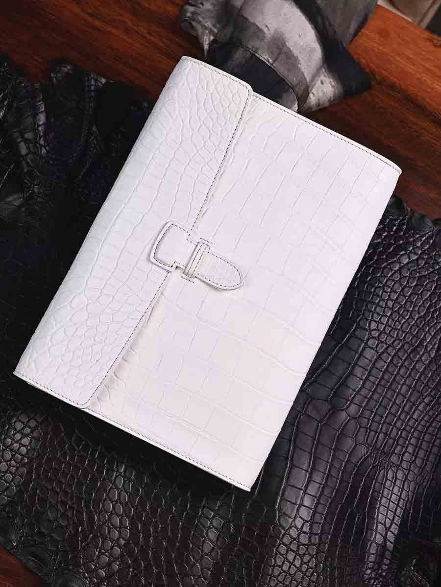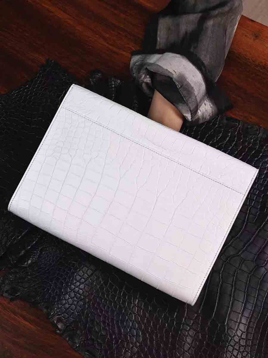纯白色鳄鱼皮手包 大号夹包zilli同款