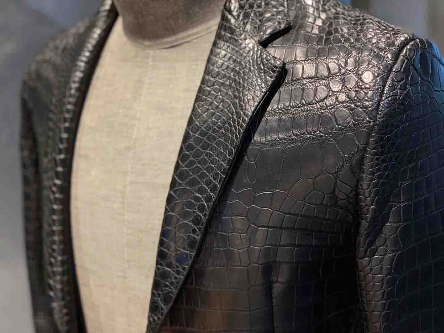 鳄鱼皮西服韩式#修身版,现货48码13条鳄鱼制作,高品休闲鳄鱼皮西装定制厂家微信联系 95506803