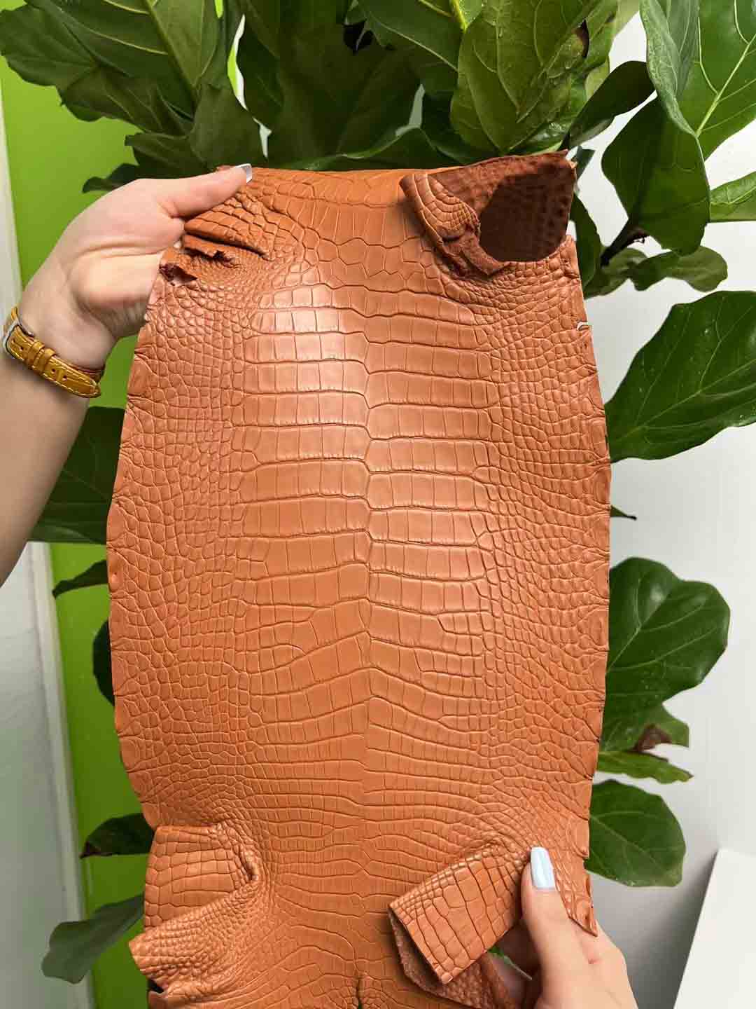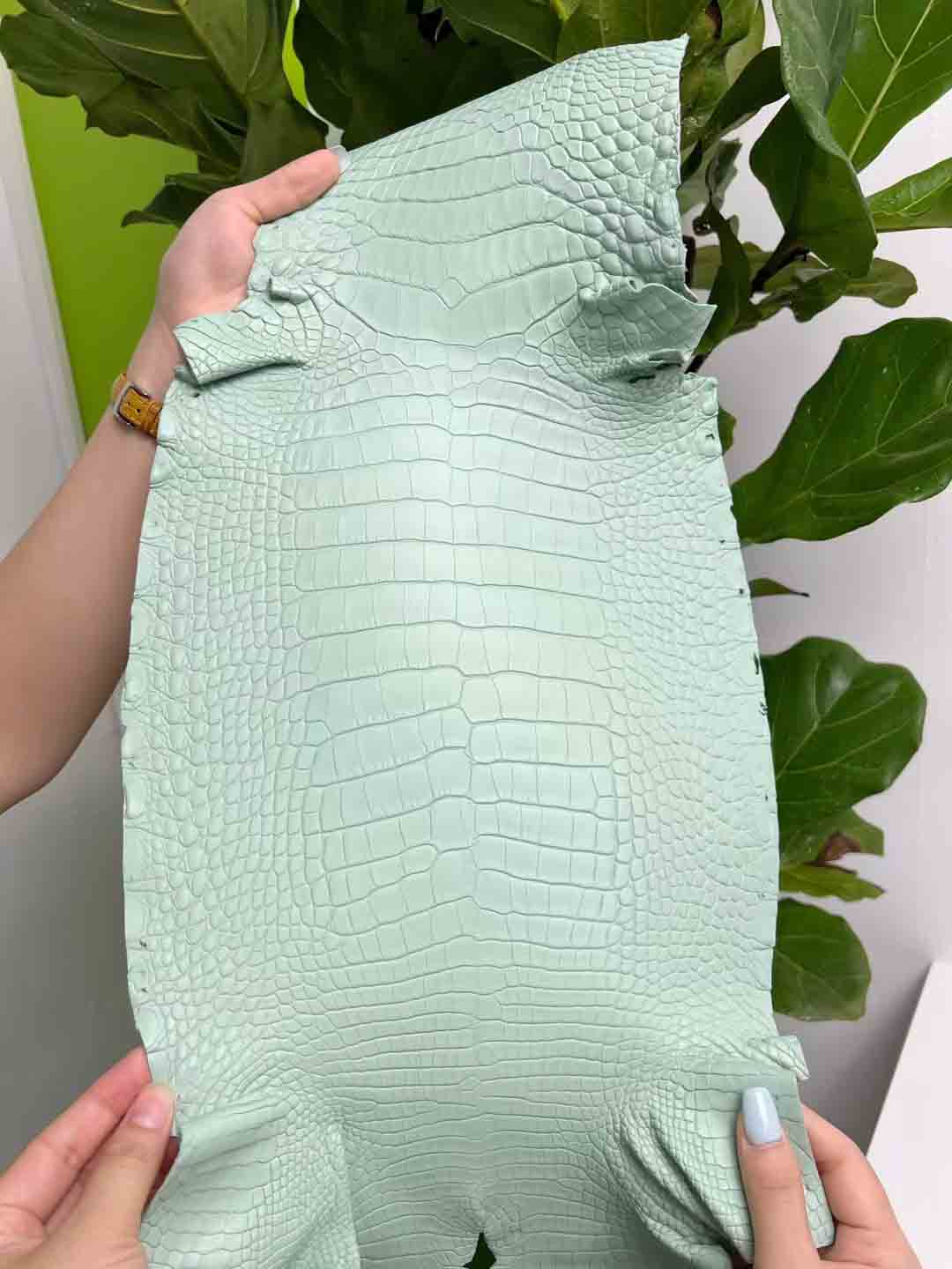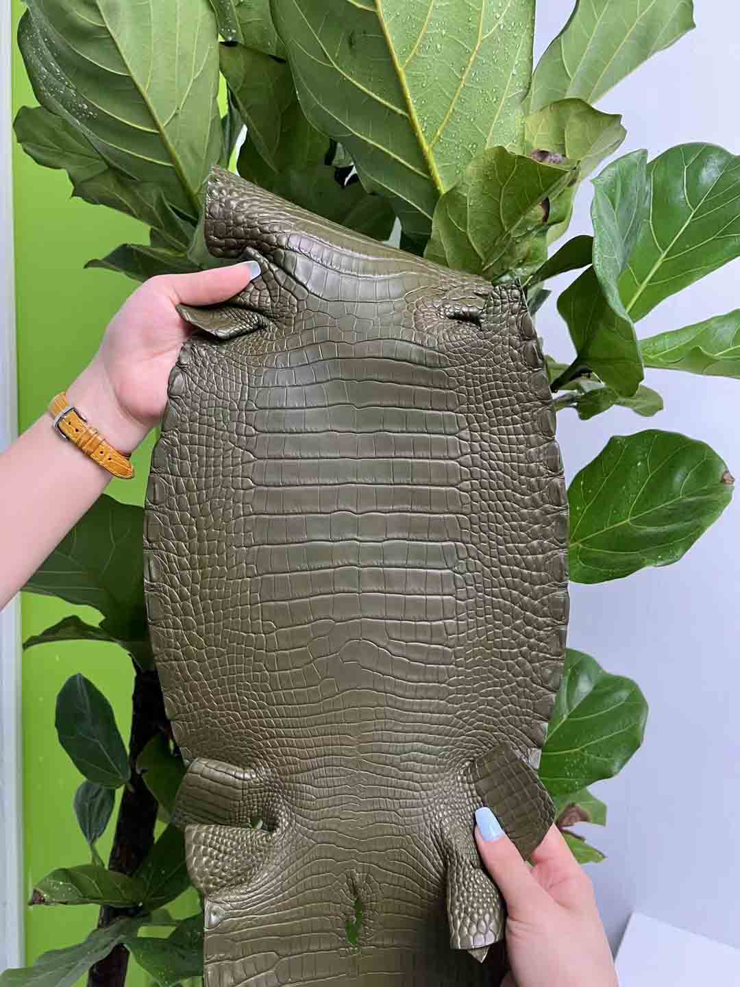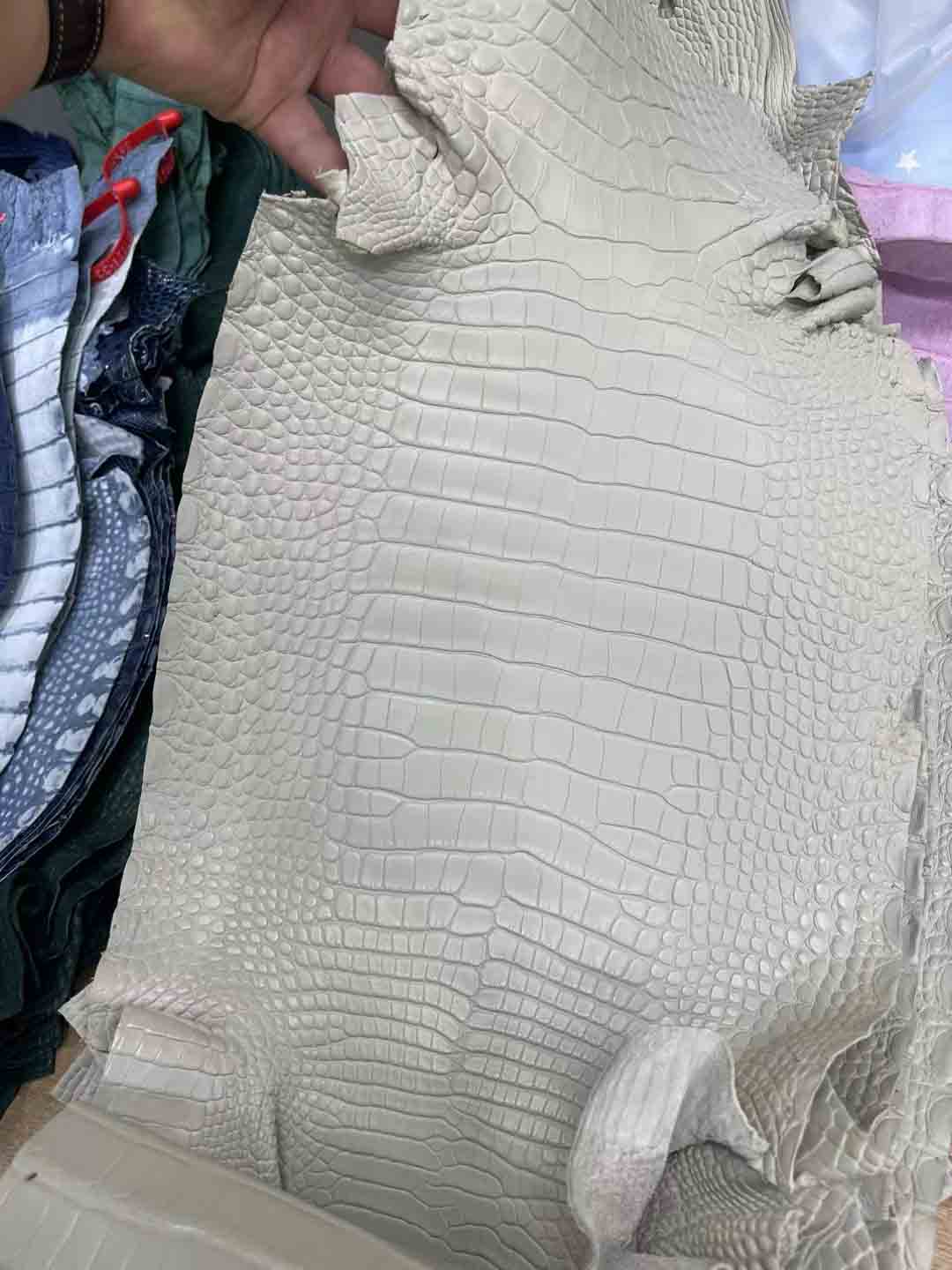 除了瑕疵少的皮胚难得,制皮工艺难度也非常大,鳄鱼皮的鞣制过程包括浸泡清洗、化学处理、再次清洗、双重漂白、酸浴处理、铬鞣制、切割厚度、二次鞣制、干燥、染色等。