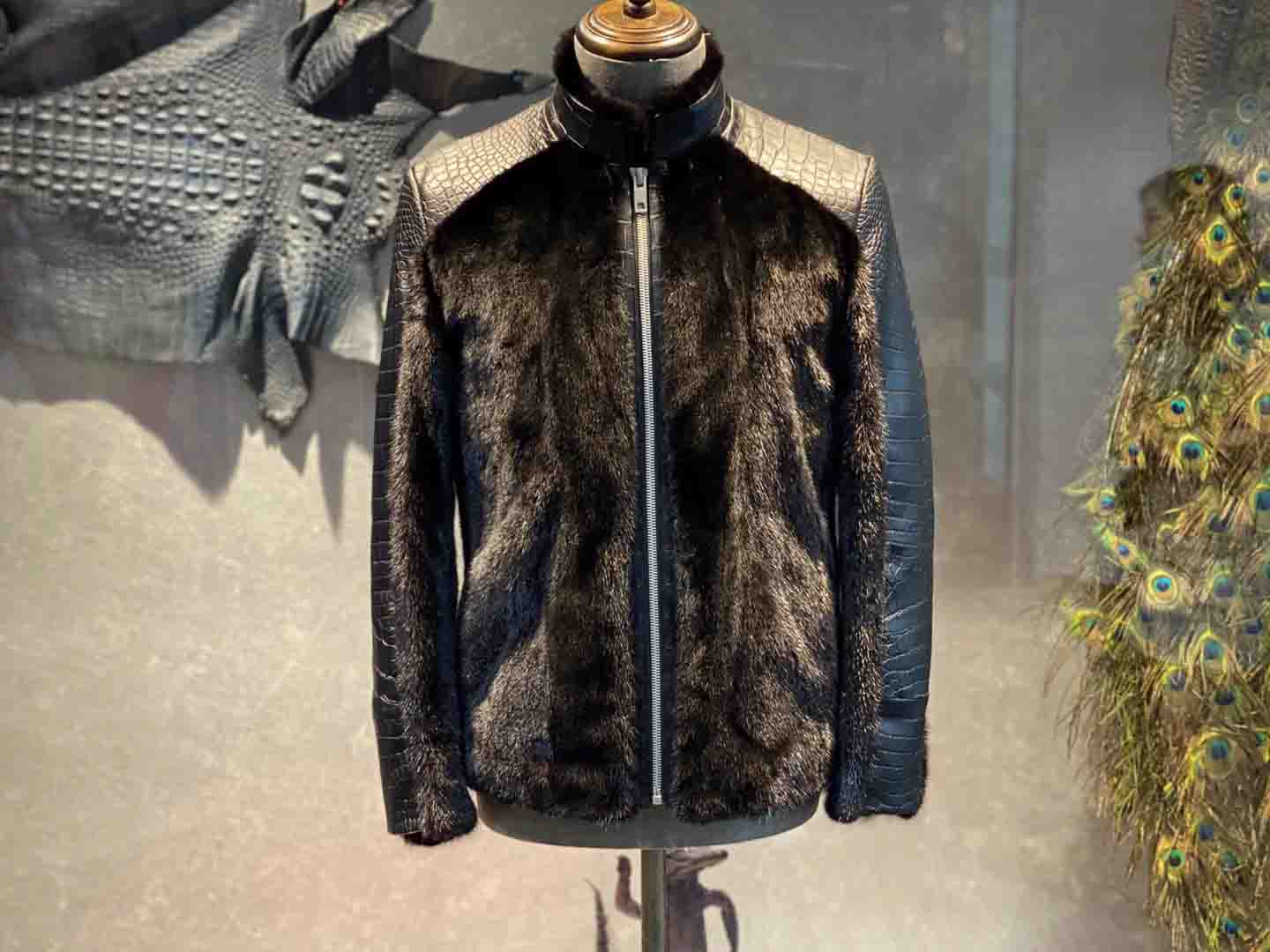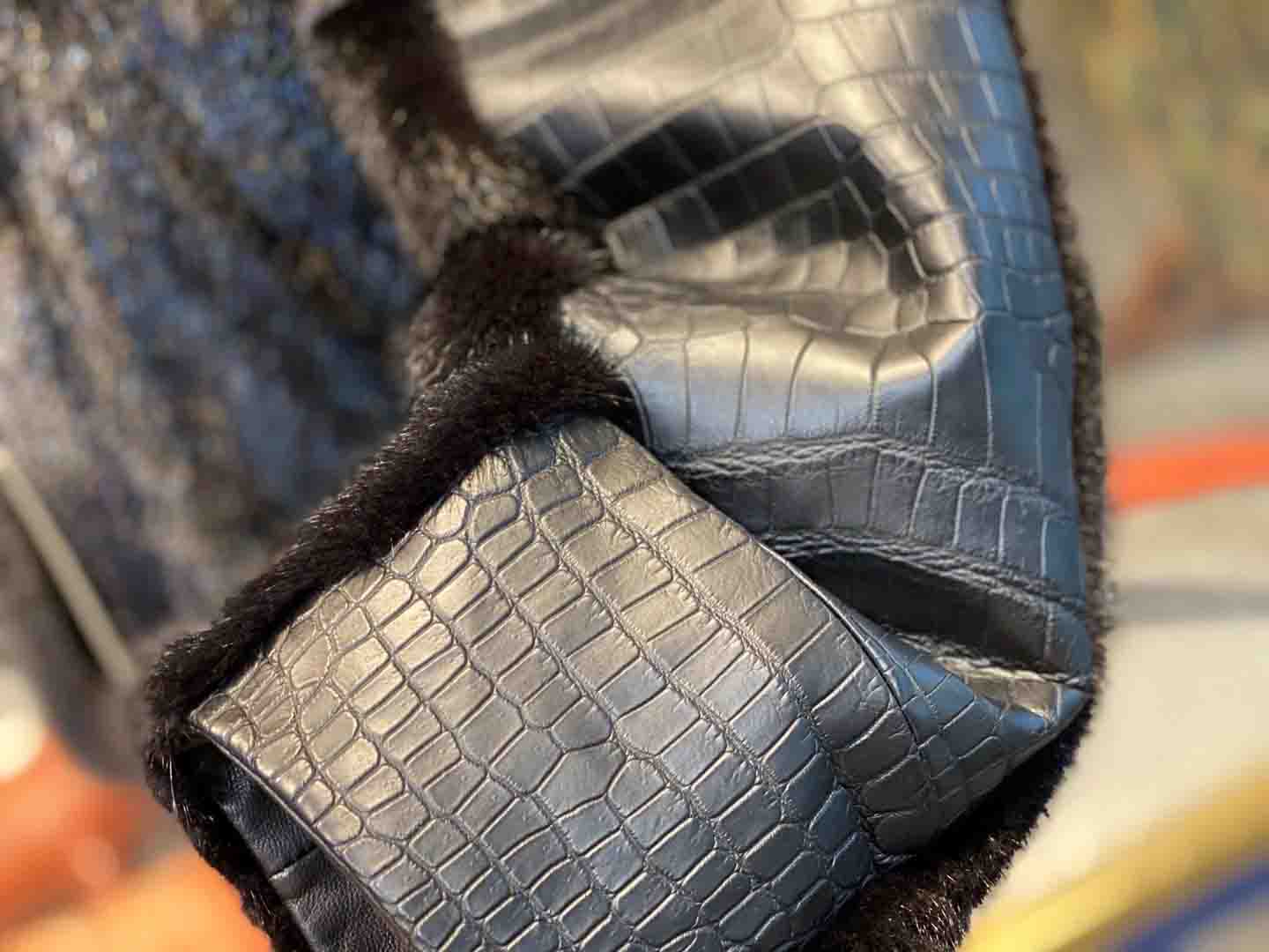 新款 貂皮配鳄鱼夹克 客定版 微信联系95506803 鳄鱼皮机车衣服订制工厂