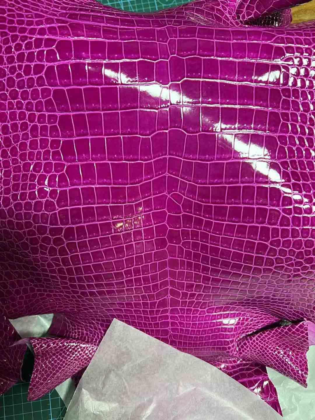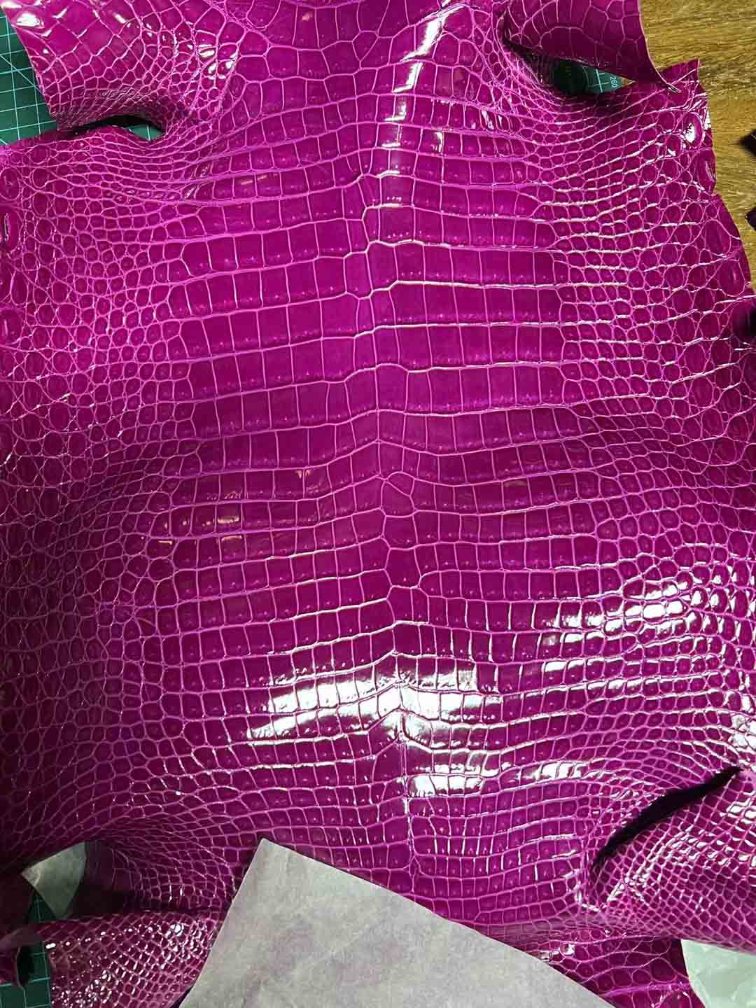 鳄鱼皮中,最顶级的当属湾鳄皮了,湾鳄皮花纹均匀整齐,仔细辨别还能看到细小的气孔。