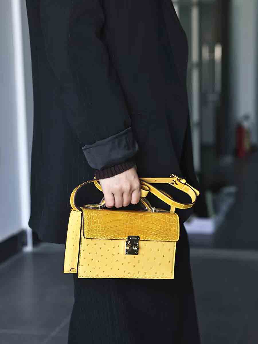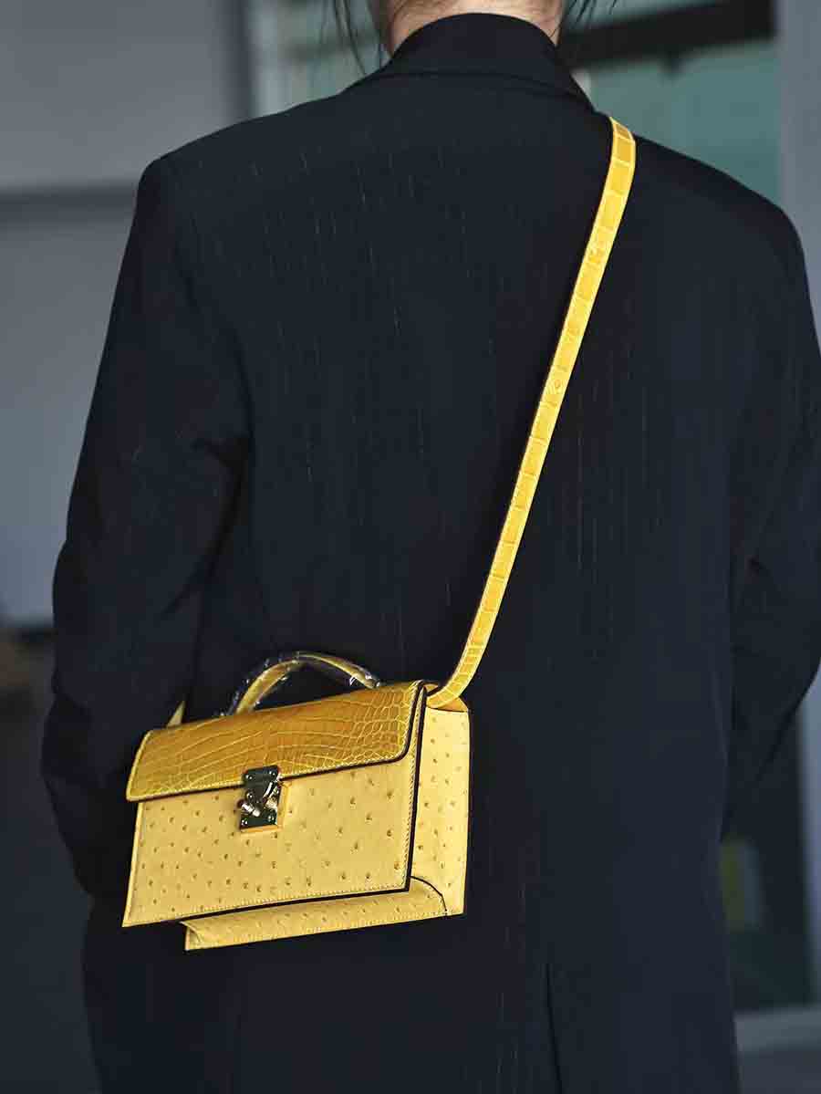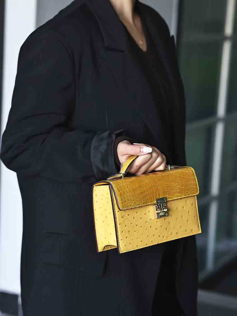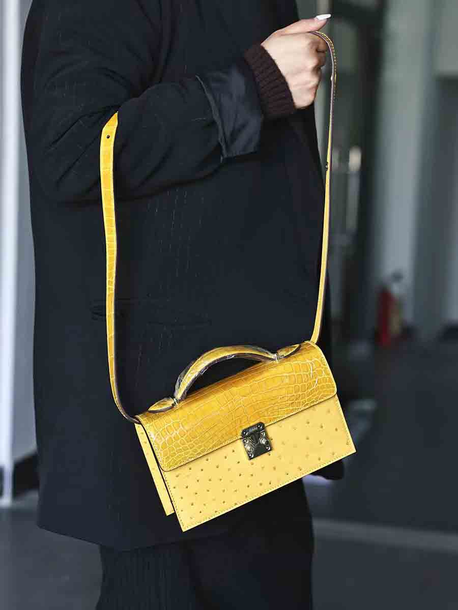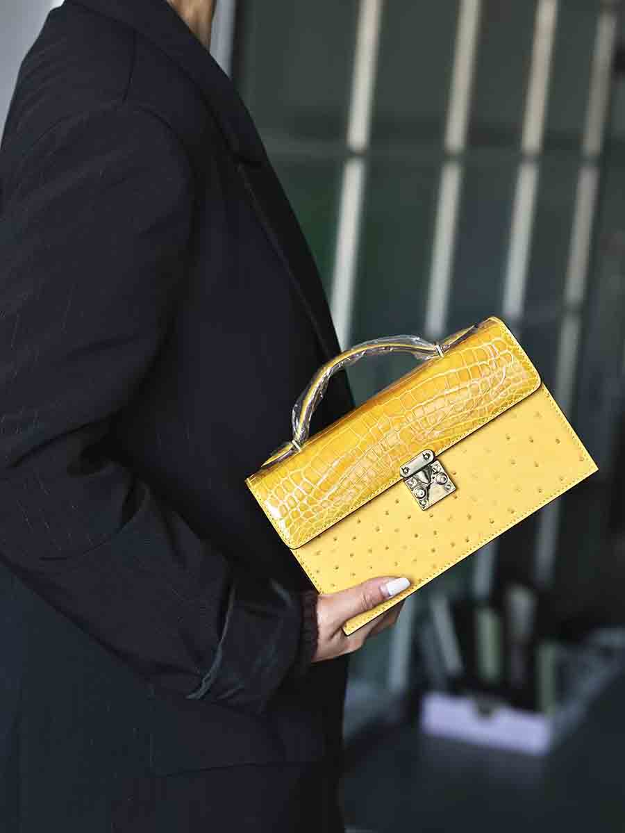 定制 新款晚宴包 可手拎可单肩斜挎包,鳄鱼皮拼鸵鸟皮女单肩包。