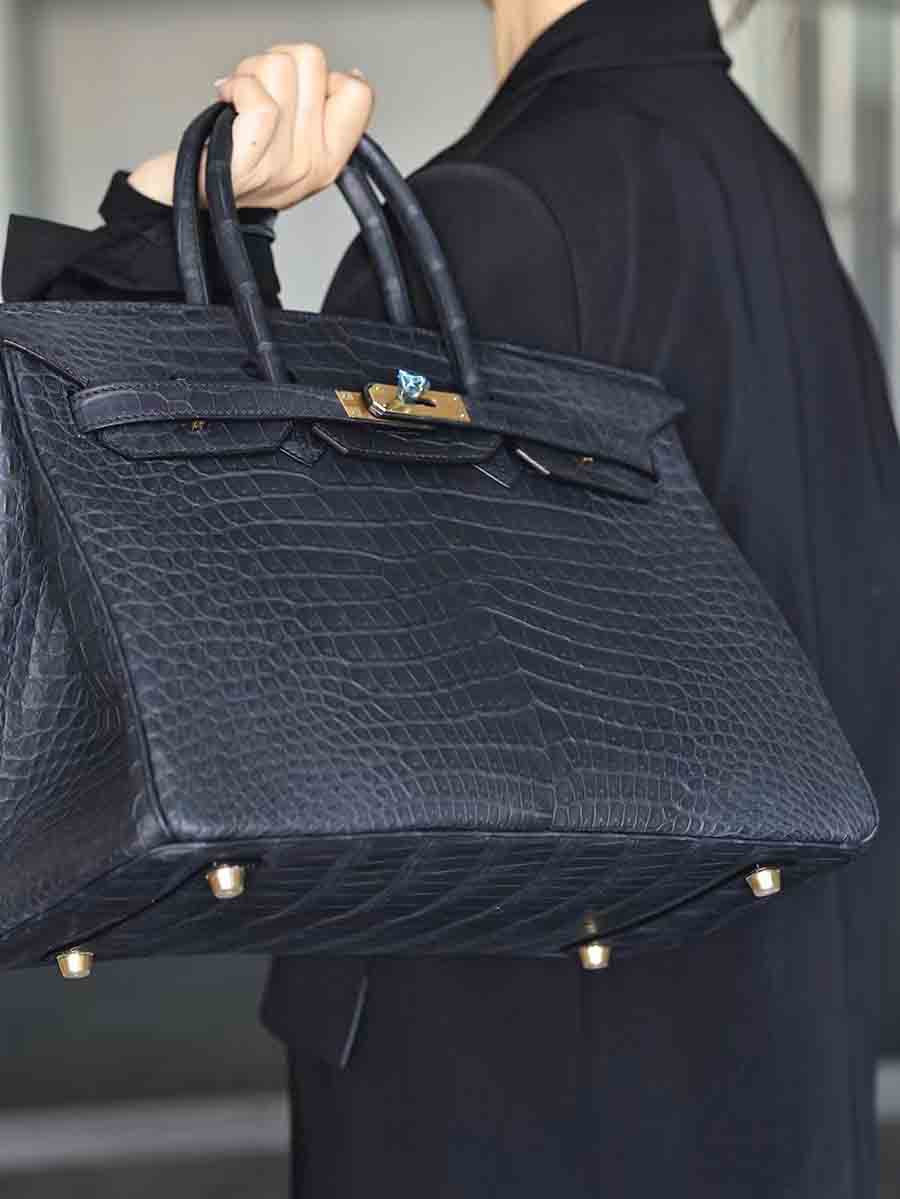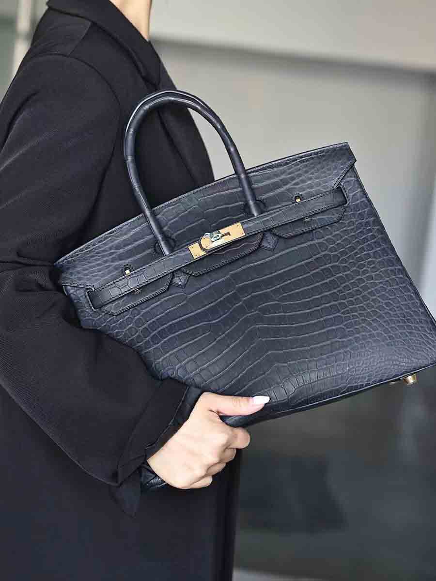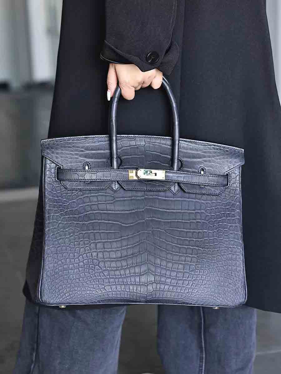 Birkin35,蓝黑色植鞣无涂湾鳄,客订出货。无涂湾鳄女手提包订制工厂。