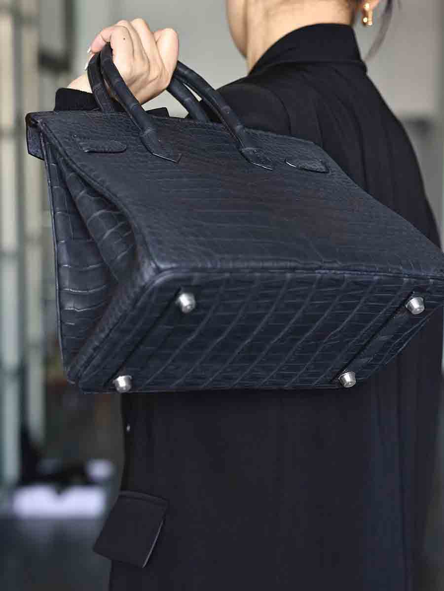 Birkin25,植鞣无涂黑色湾鳄,客订出货。