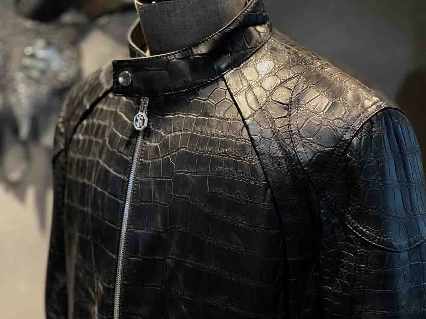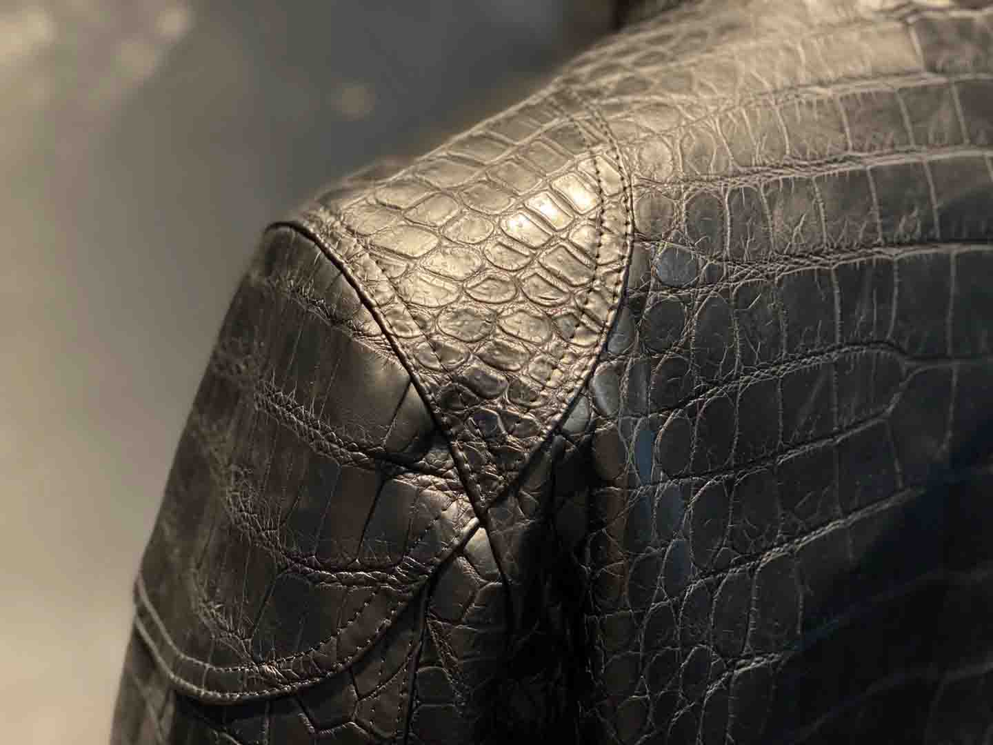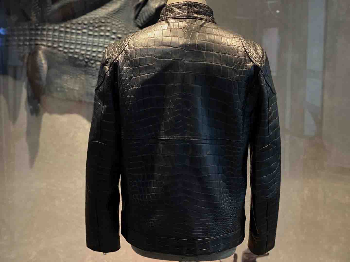 鳄鱼皮SDF款男士休闲夹克现货50码 ,尼罗暹罗鳄鱼皮机车夹克定制工厂微信联系 95506803
