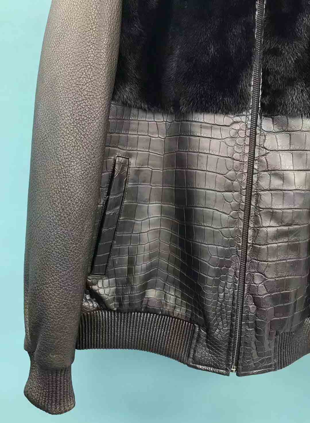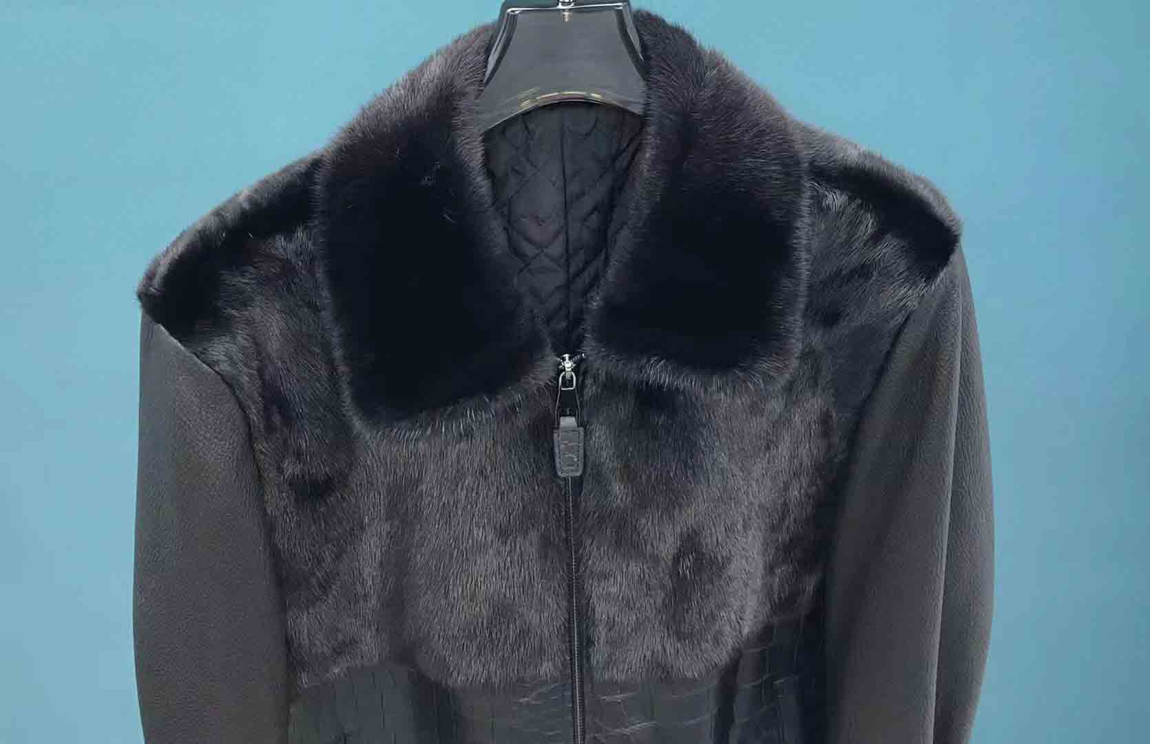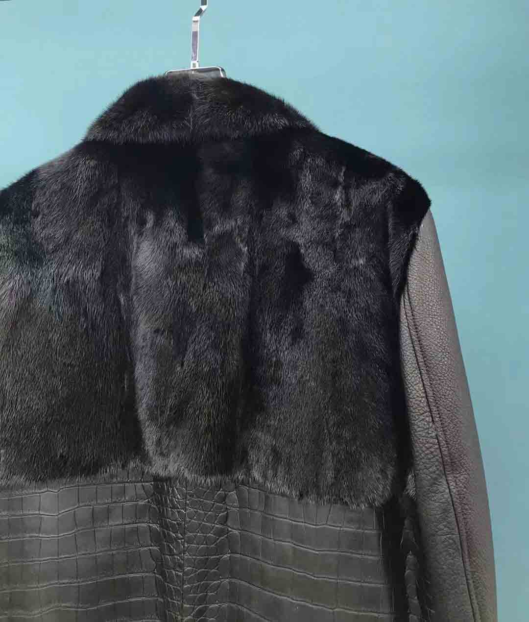 鰐鱼皮肚皮休闲男装,搭配黑色水貂。
