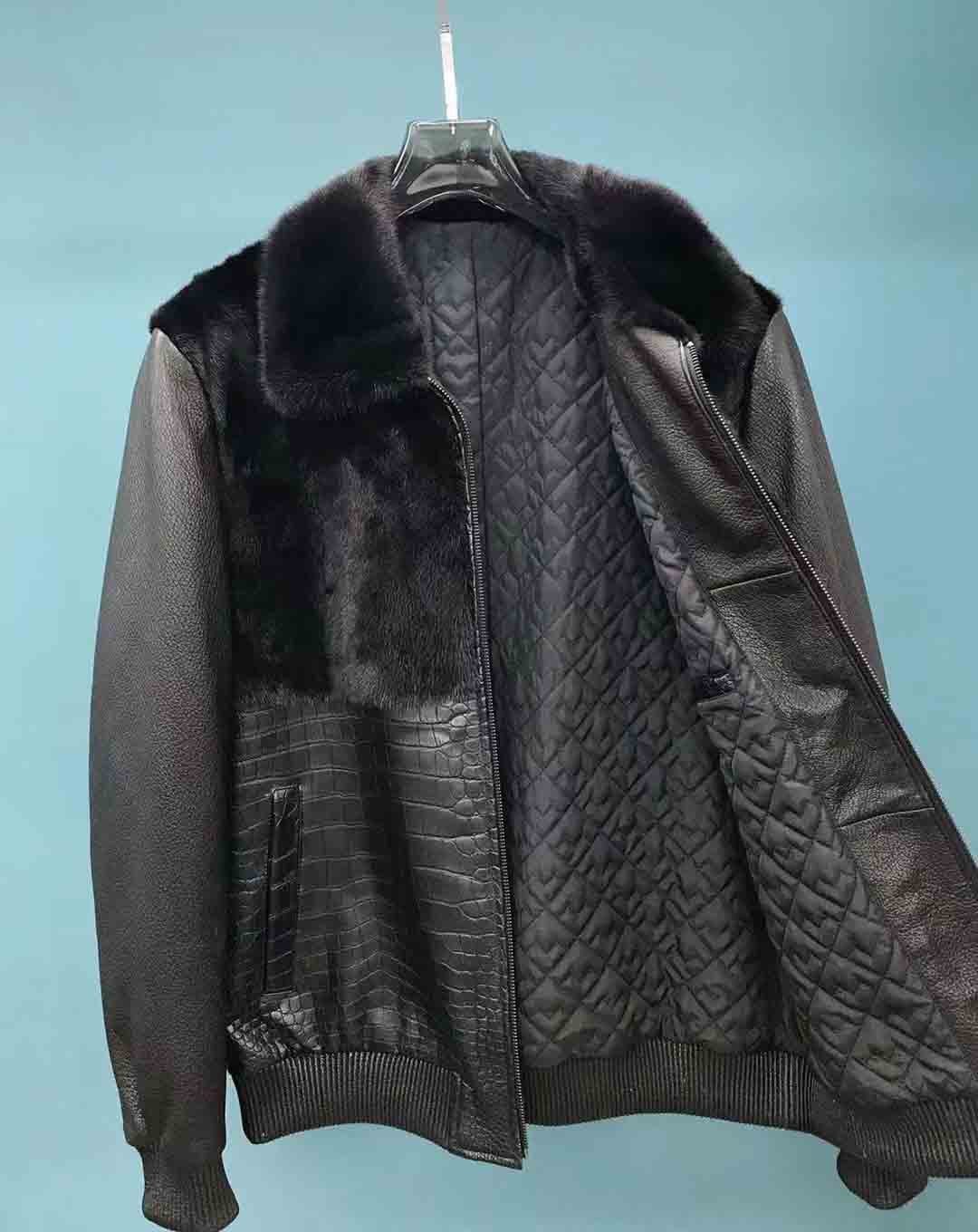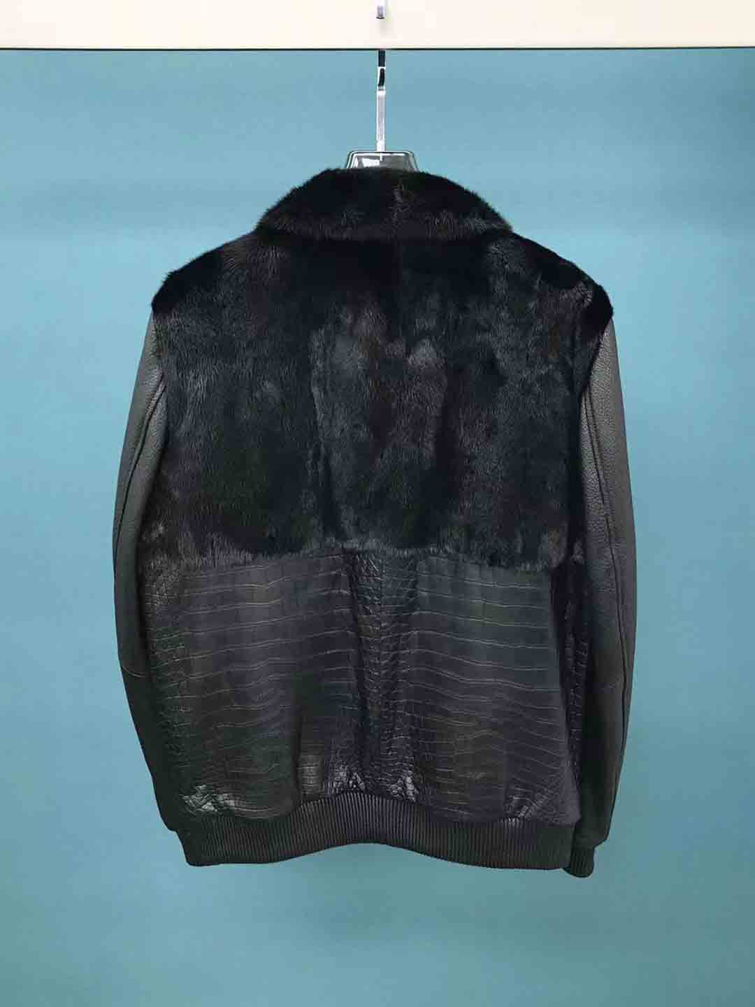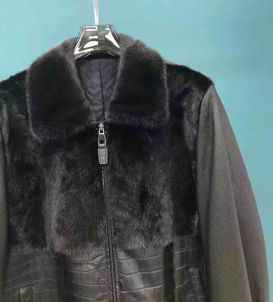 鰐鱼皮肚皮休闲男装,搭配黑色水貂。